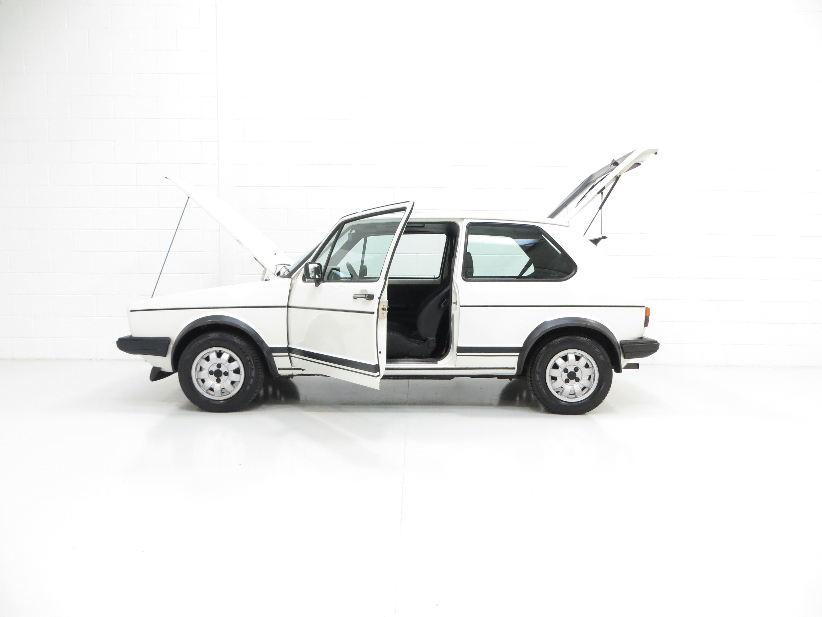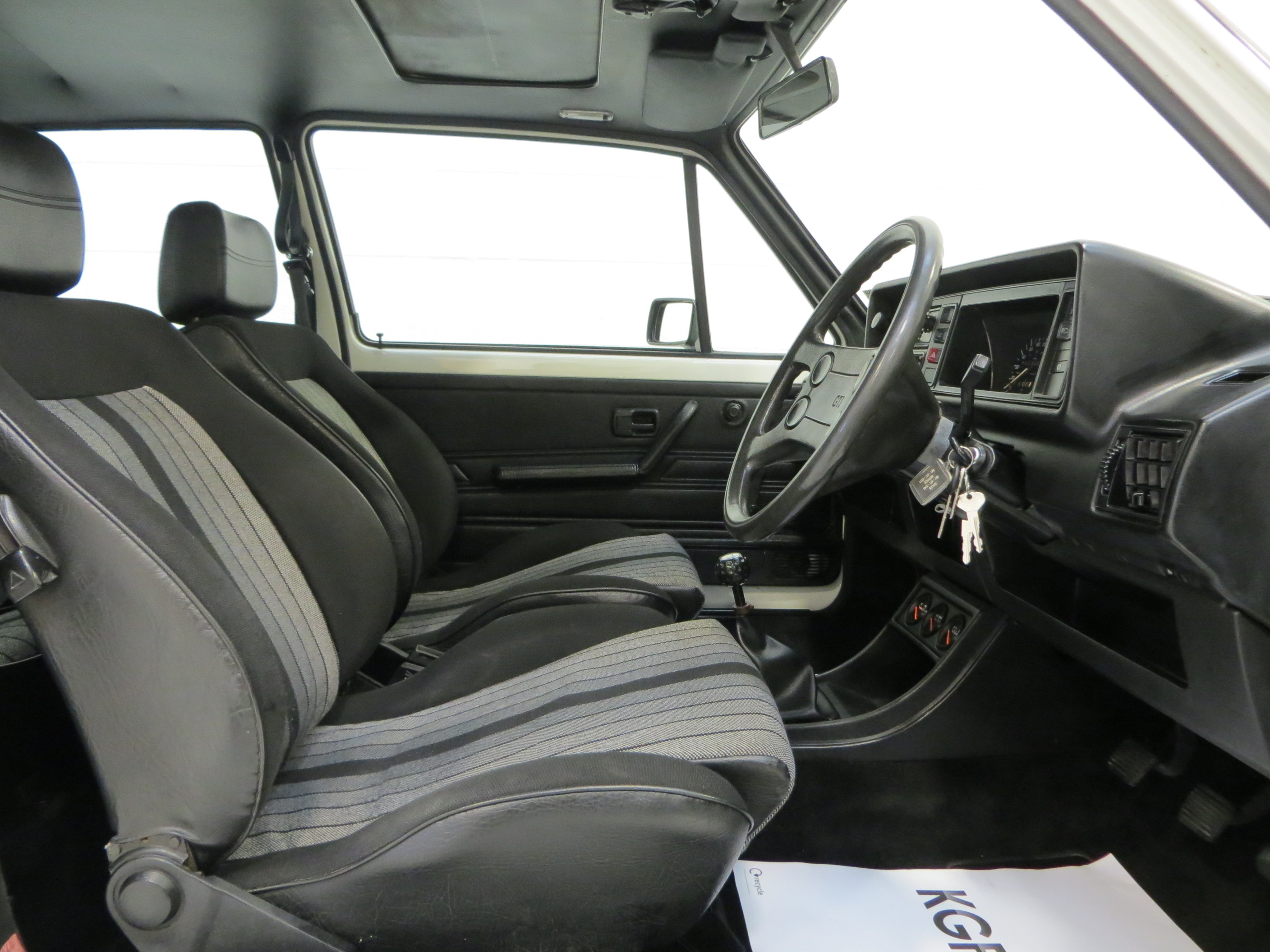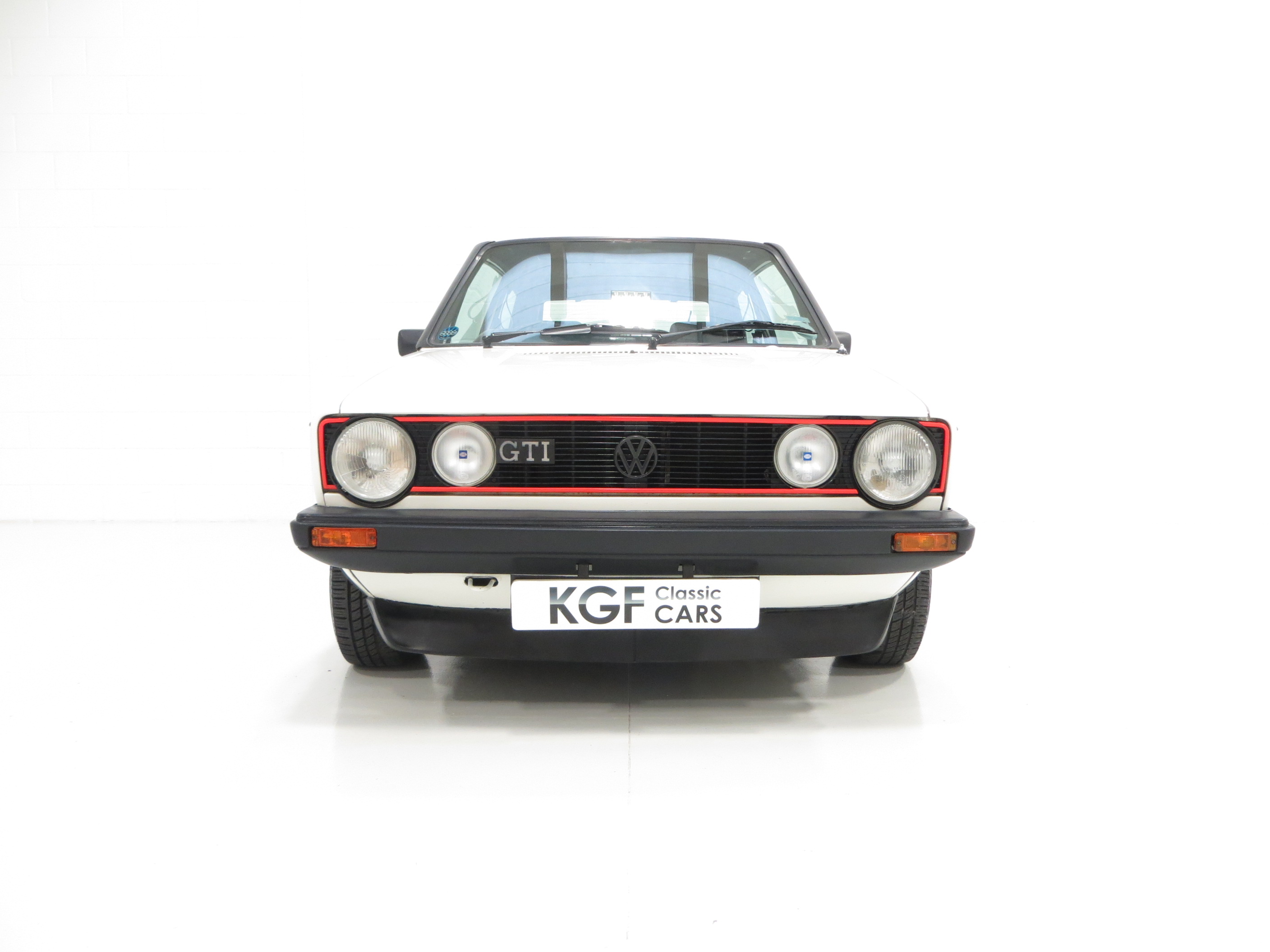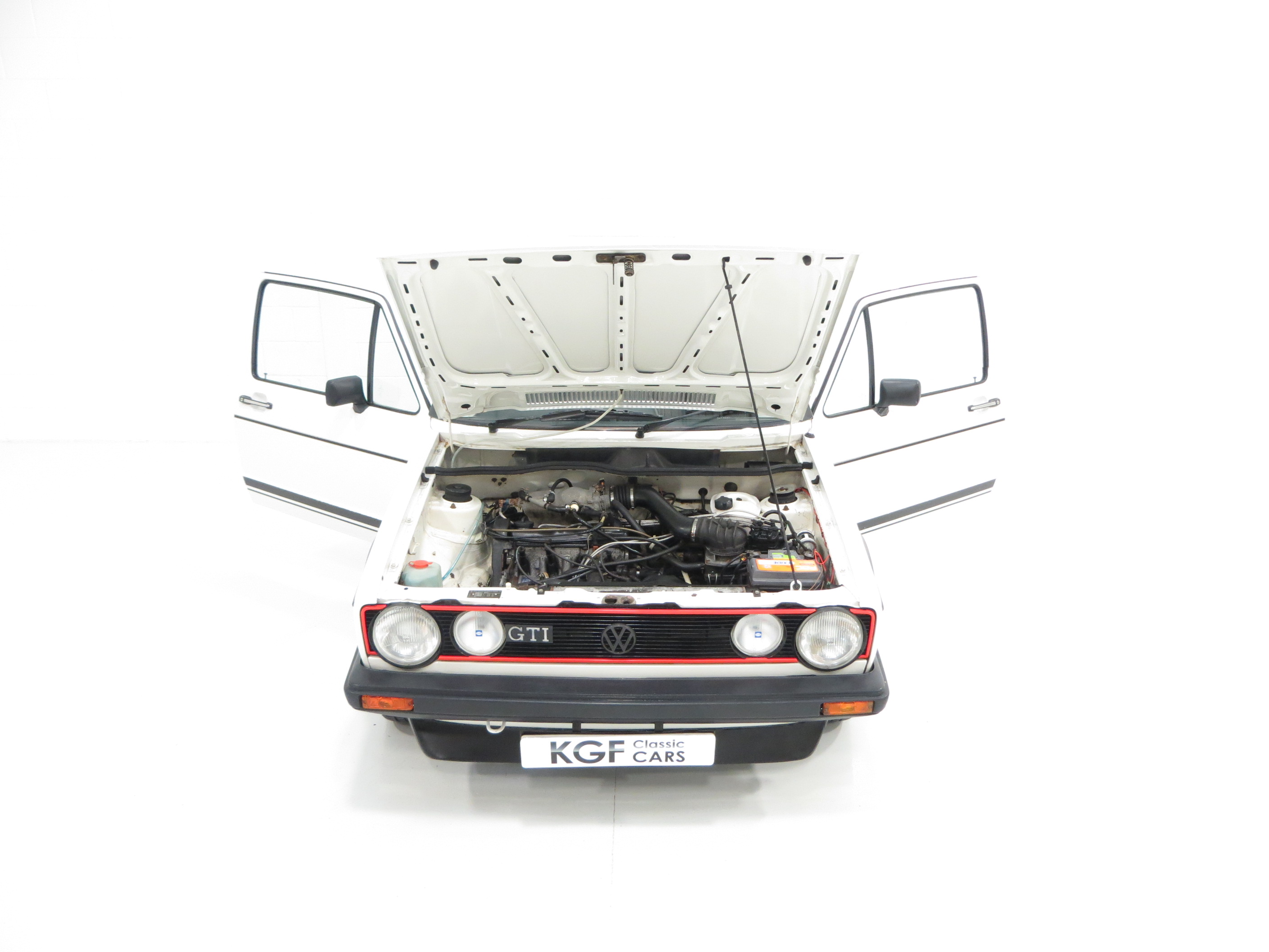 This iconic MK1 Golf GTi is finished in Alpine White (Code L90E) and maintains a bright shine and uniform finish. The factory panels have excellent fit and uniform gaps, and only a small ding to the nearside door is worthy of mention. The rubbers, side mouldings, lights and all other body trimmings are intact and in good order aside from one small scuff to the front nearside plastic arch bead. The original factory optional tinted glass is security etched and displays a Volkswagen main dealer tax disc holder and screen sticker along with dealer number plates. The black rear window surround and side stripes show signs of aging and the sunroof has some markings. The identification sticker on the boot cross member is present and the engine compartment displays the correct factory stickers. This genuine original GTi embodies everything that made this iconic car the trend setting legend that it is.