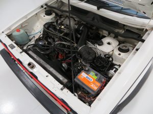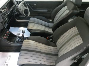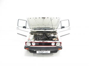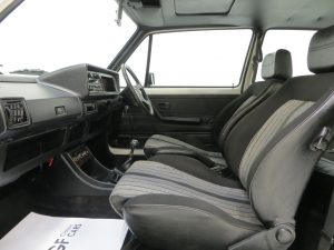 The original body-hugging reclining sports seats finished in black/white large check design (code KM) are in remarkable condition and match the black leatherette headlining, carpeting and door cards. Very light thinning to the material on the driver’s outer bolster is noticeable. All functions and controls operate well, although the MFA LCD display is distorted. The original dealer fit stereo and speakers remain fitted and maintain the classic ‘80’s touch! Additional VDO gauges are housed in the original centre console and consist of ammeter, oil temperature and oil pressure. A small undulation to the dash top is visiable. A classic 1980’s hot hatch interior, endless fun and hugely nostalgic.