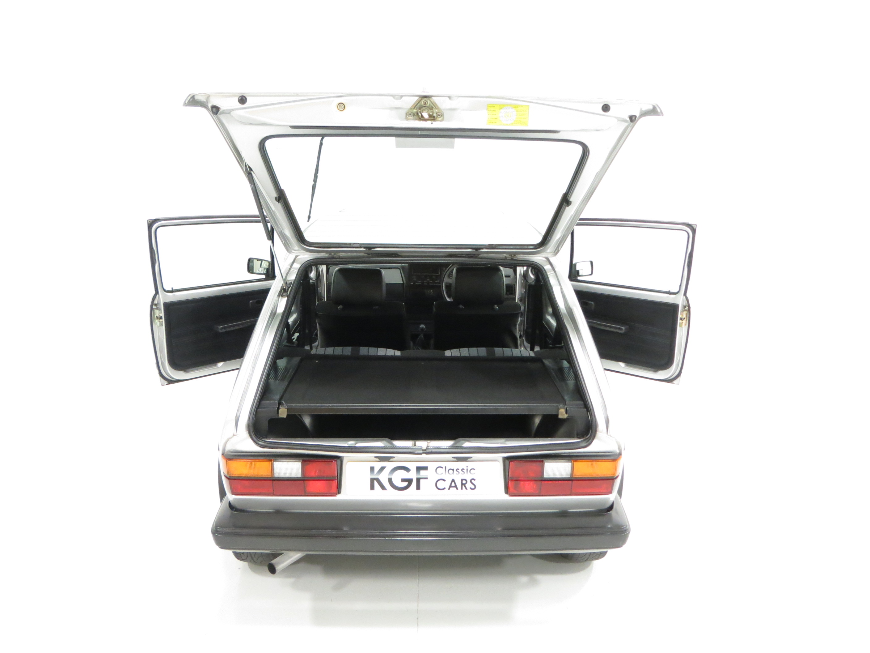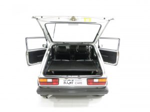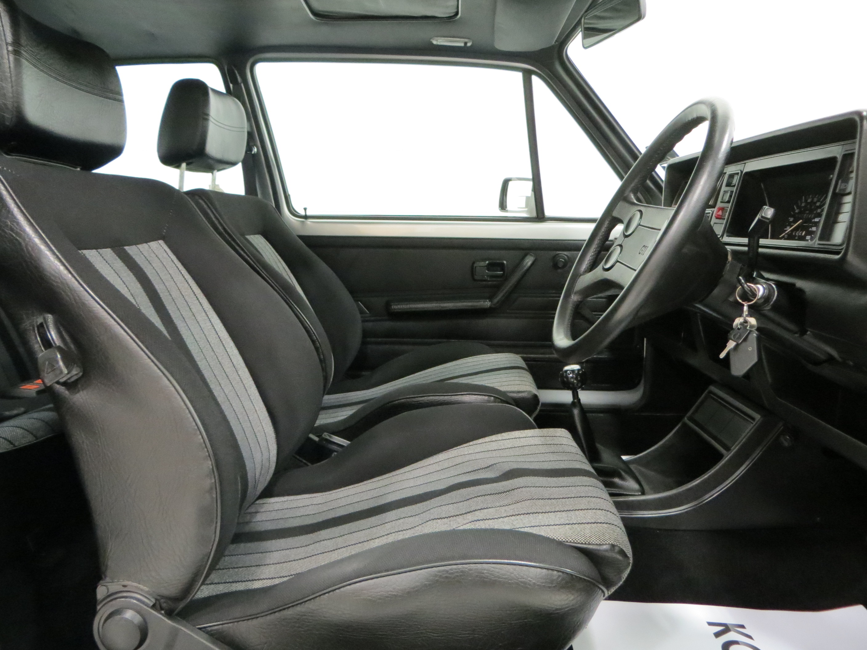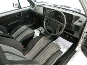 Body-hugging reclining sports seats trimmed in original black/white check design (code KM) remain in remarkable condition with no wear to the fabric or deterioration to the seat structure. The matching black headlining is clean and intact. The carpeting, door cards and all other interior trim sections are pristine, clean and unworn. The correct smaller door lock pins with indent to the top and the leather bound steering wheel are Campaign specific and further uphold this cars true correct identity. All the controls housed in the pristine fascia work as they should including the multi-function digital computer. A spotless boot area houses the full size alloy spare, original jack and wheel brace and an unmolested rear parcel shelf, although one of the rubber hangers has snapped. A classic retro hot hatch interior, wonderfully preserved.