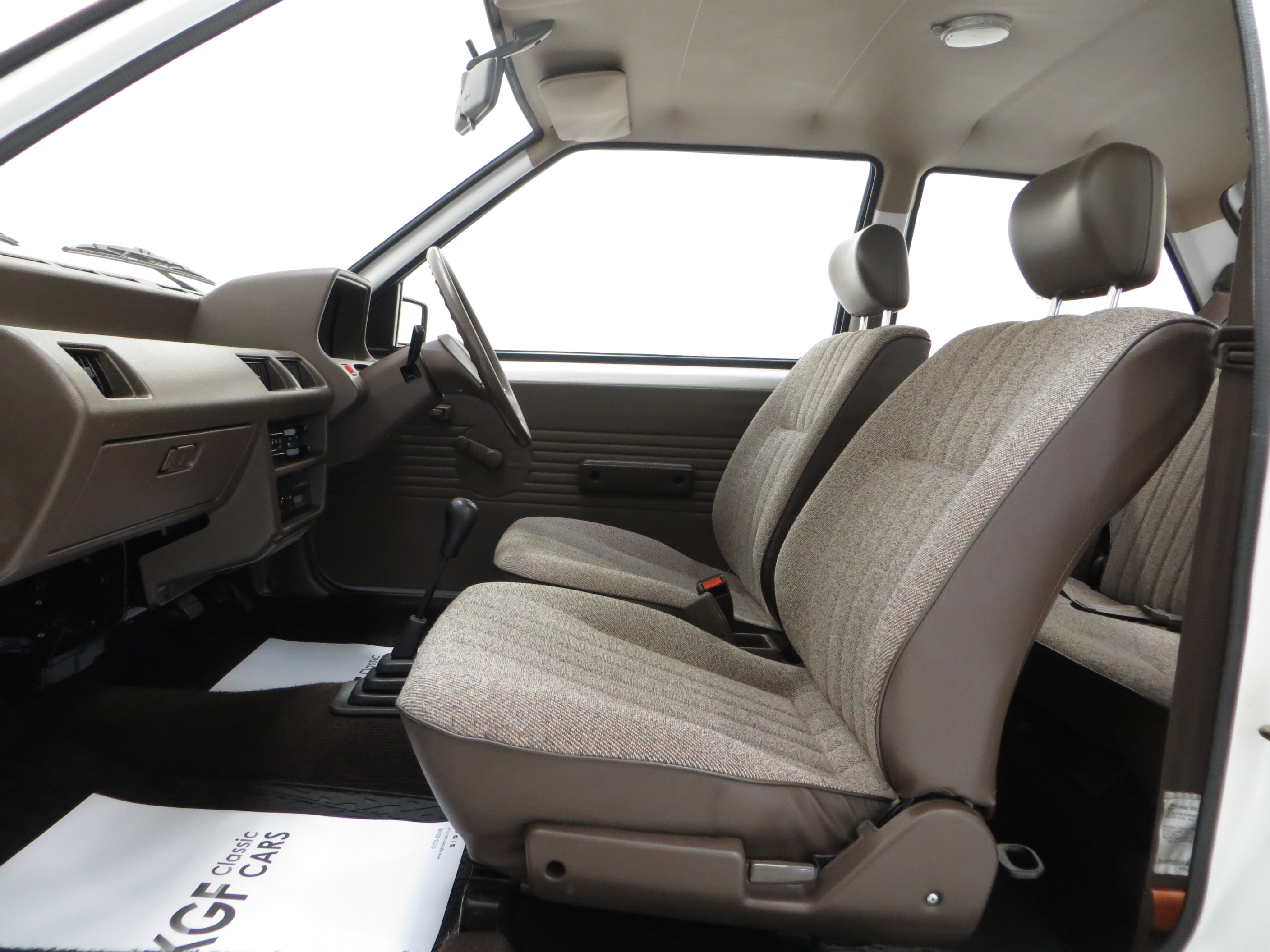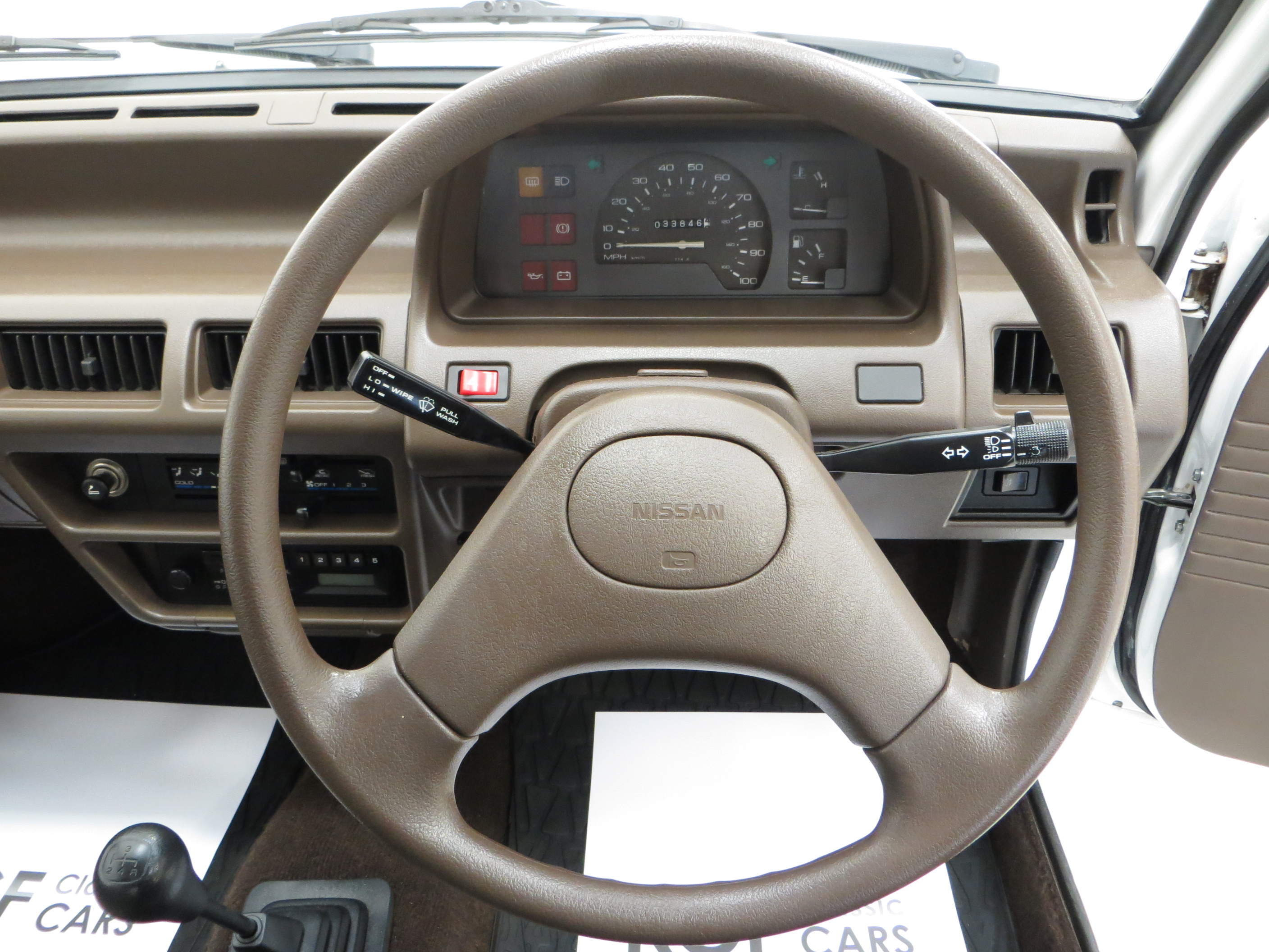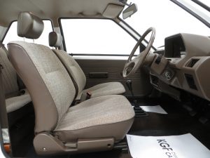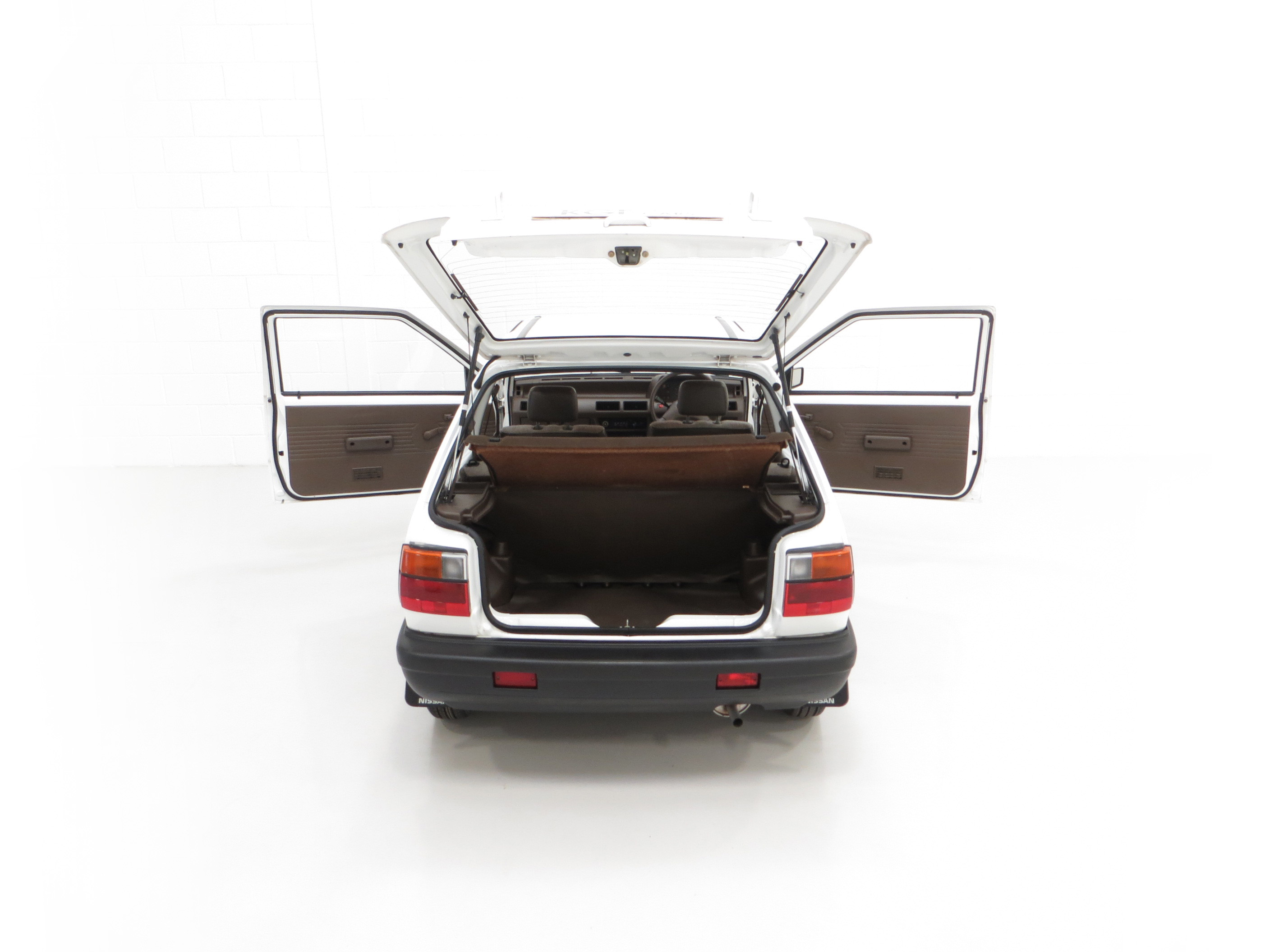 Truly astonishing and virtually perfect in condition and function. The Beige seat trim blends with the period brown theme extending to the steering wheel, door furniture, carpets, dash and even front and rear seatbelts! The light brown roof lining is as new and the carpets have been protected by Nissan rubber carpet mats. The original electronic tune radio player with generous single speaker powers on but no sound and all other controls work perfectly. The boot area looks virtually unused with a full bagged tool pouch and factory paint stamp marking on the spotless boot floor. This really is smashing.