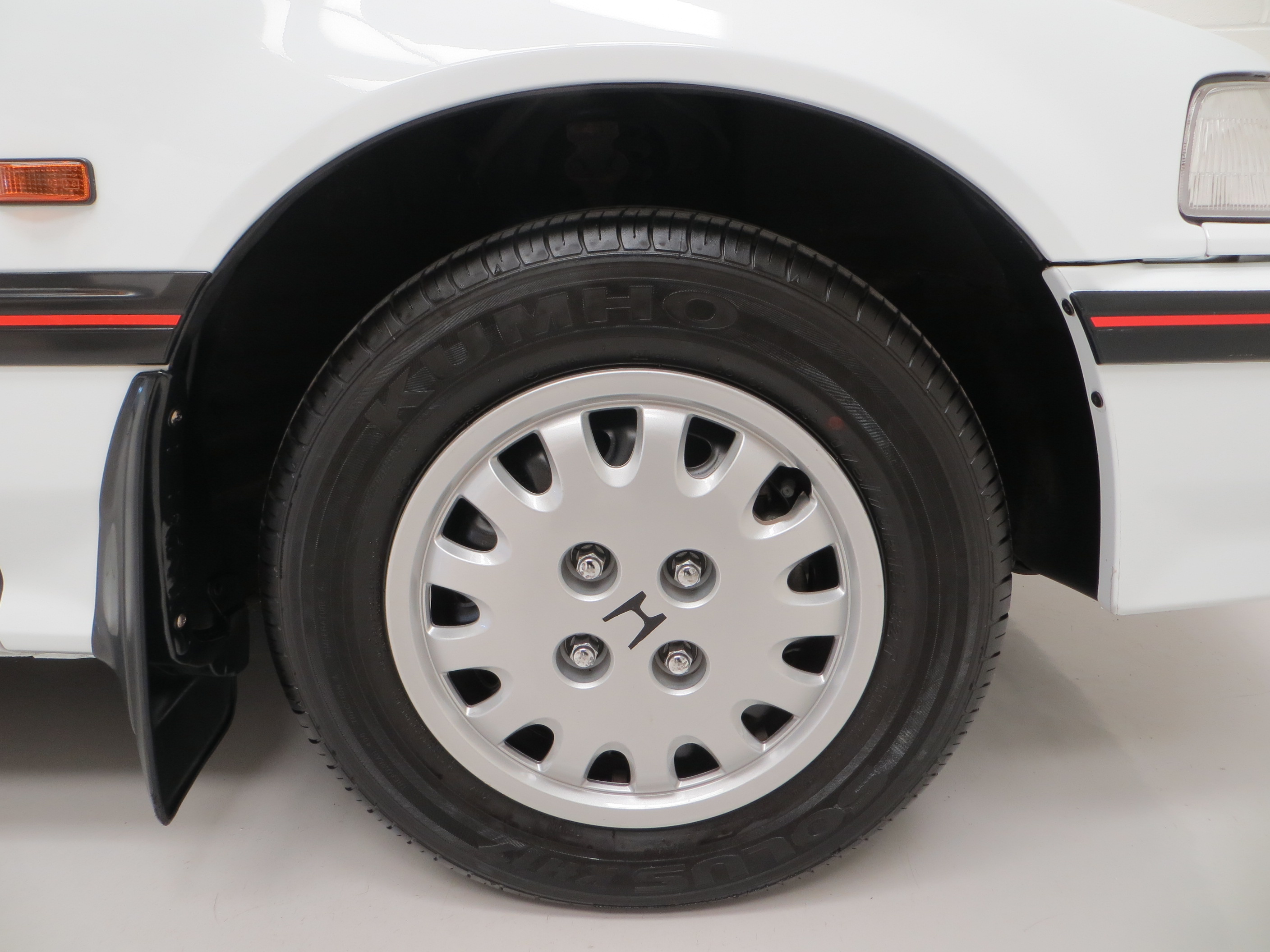 The original Honda GL full wheel covers are fully intact and in excellent condition with light scratches visible to one trim. All tyres are matching branded 175/70 R13 with masses of tread and excellent rubber condition. The space saving spare wheel is unused and the original jack and tool roll are untouched and as new. The power assisted brakes incorporate front discs to bring the car up straight and steady.