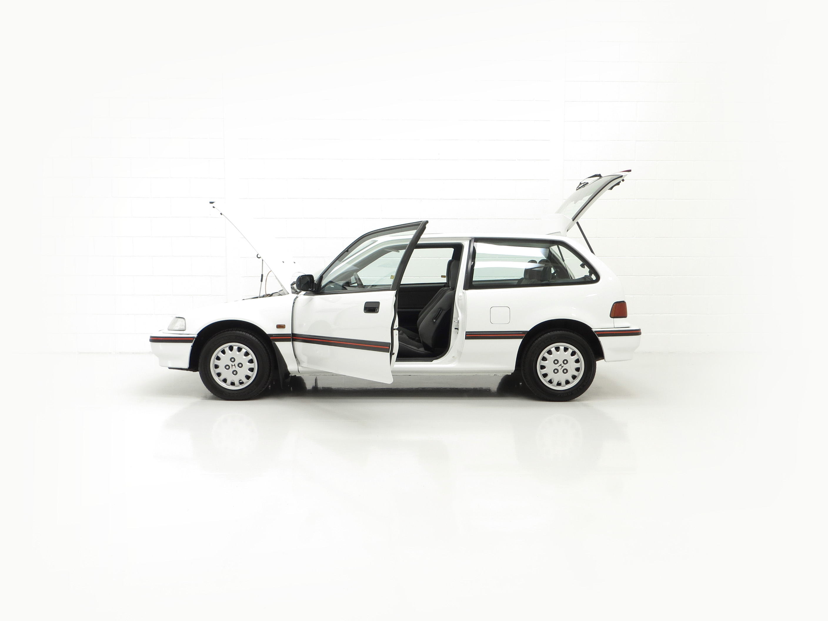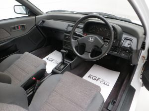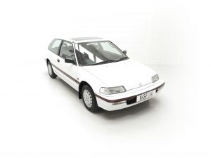 This extraordinary Honda Civic has been owned from new until April 2021 by one lady owner and has covered 7,771 miles. To say this example has been cherished is a huge understatement with the car having been serviced no less than 21 times at the supplying Honda main dealer! Finished in factory original Frost White, (Code NH-538), the paint finish is simply stunning with a near flawless uniform finish thanks to its pampered garaged lifestyle. The bodywork is pin straight and nothing other than small scratches to the door mirrors and a very light scuff to the front bumper rubbing strip can be seen. The supplying Honda dealer numberplates remain fitted, as is the factory stickered glass and labels within door shuts. It is quite difficult to distinguish this amazing Civic from a 1991 showroom display vehicle.