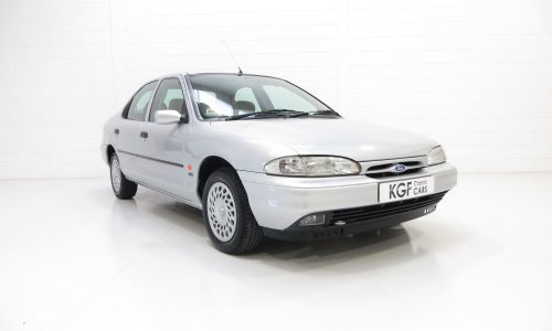 Launched in Europe in 1992 by The Ford Motor Company, the first generation Mondeo replaced the much loved and hugely popular Sierra. With early models now well over twenty years old, the Mk1 Mondeo once a very common sight on UK roads has now become a rare car. This 2.0i 16v GLX example has been incredibly well preserved owing to a mere 46,820 miles covered. Finished in factory original Stardust Silver (code 6 3) the paintwork boasts a bright pure shine and polished finish. All factory panels are completely free from corrosion and the underside is beautifully clean. Minor markings commensurate with age do not offend, but worthy of mention is a small chip above the nearside rear door handle, minimal light scratches from boot loading and a very faint scuff to the lower front bumper, visible upon very close inspection only. A very faint undulation to the offside rear door is barely noticeable. All trim sections and original badges are present and intact and the supplying Ford dealer plates and rear screen sticker remain fitted. A delightful modern classic Ford in exceptional condition.