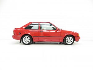 The correct light alloy 6X15 RS wheels remain undamaged with the Ford logo and part numbers raised and visible. Five matching quality 195/50 R15 Toyo Proxes tyres have masses of tread remaining. This 1980’s ‘Hot Hatch’ icon stops as well as it goes with the ABS braking system designed in conjunction with Lucus Girling working perfectly.