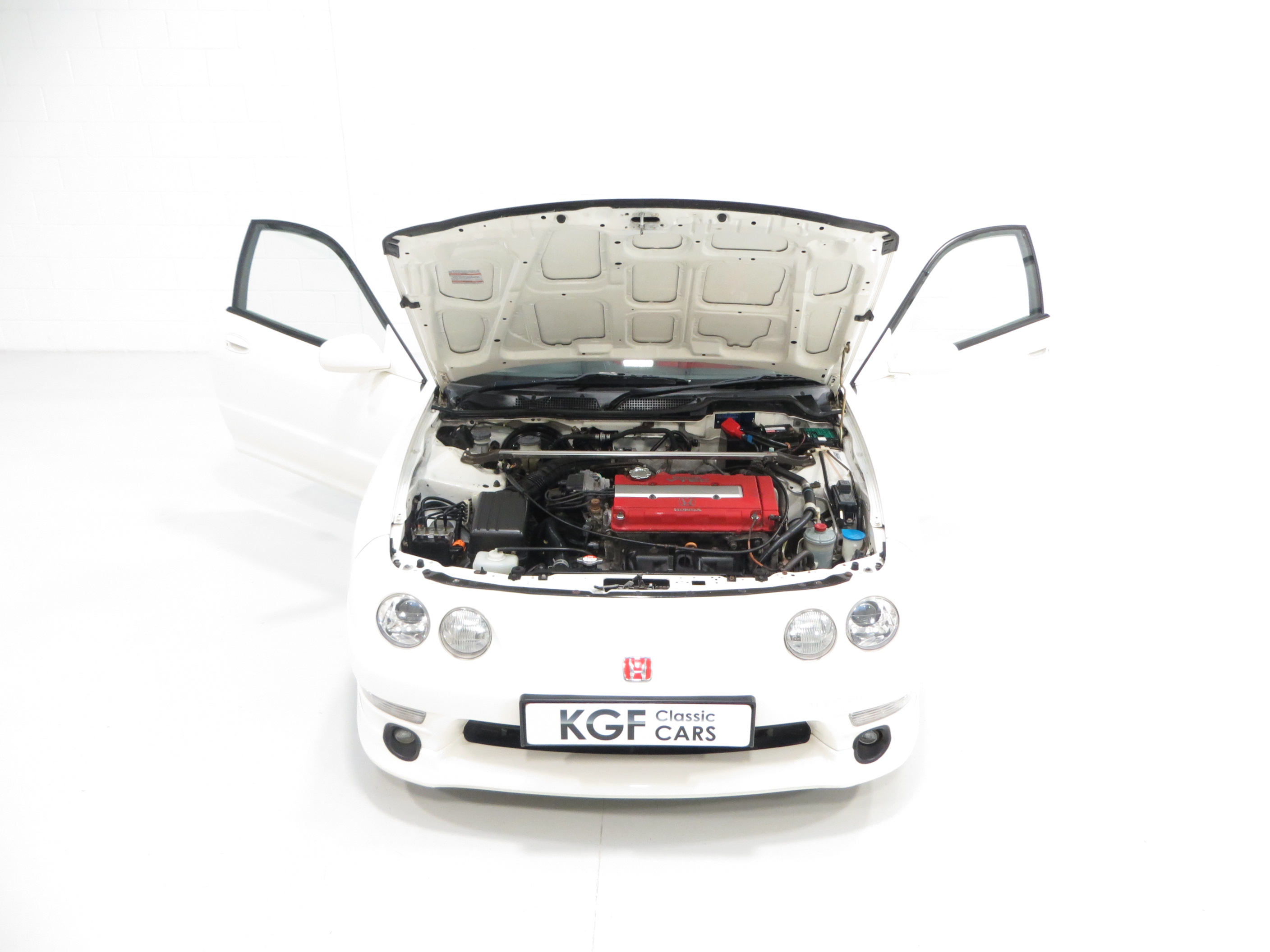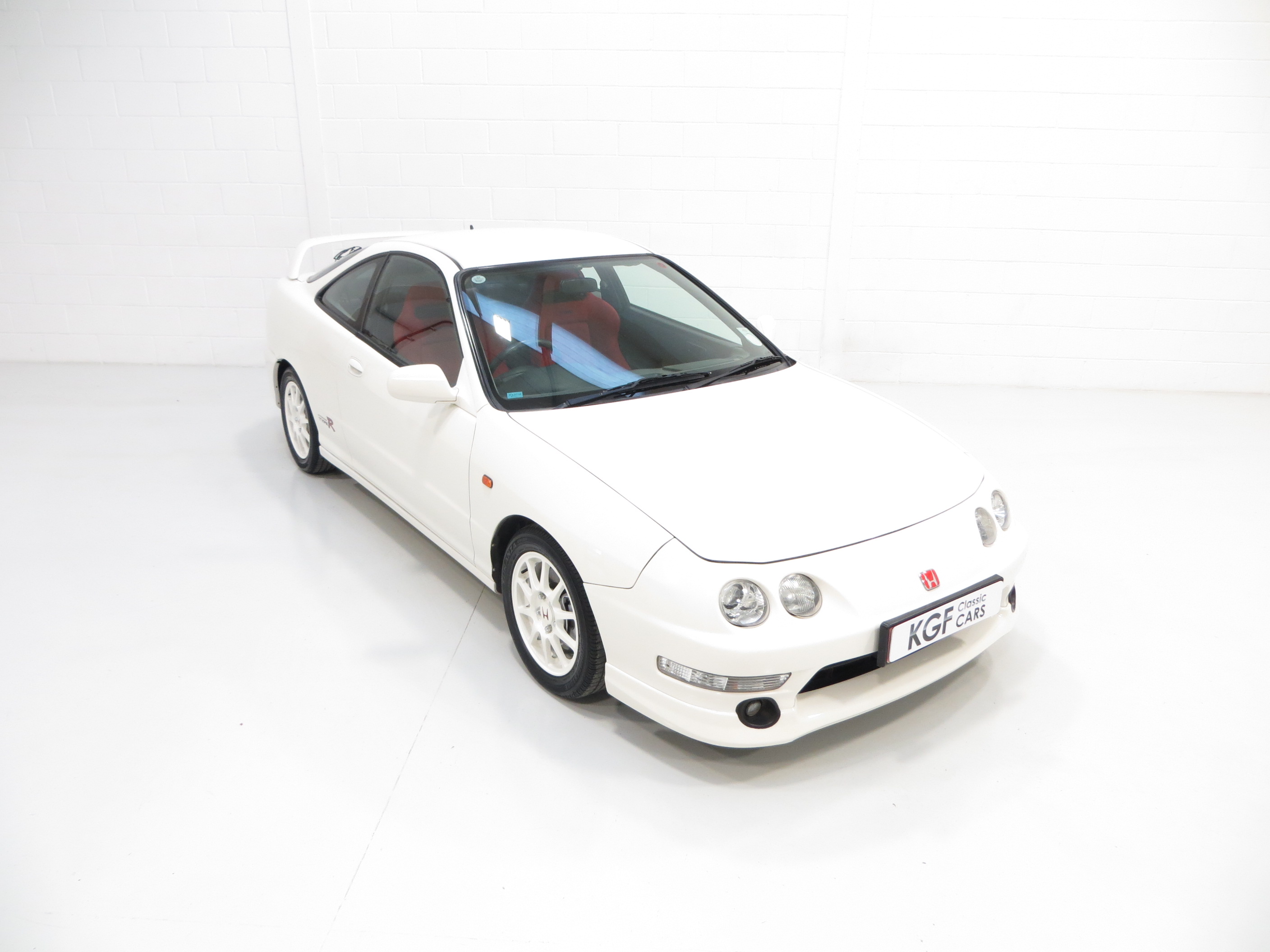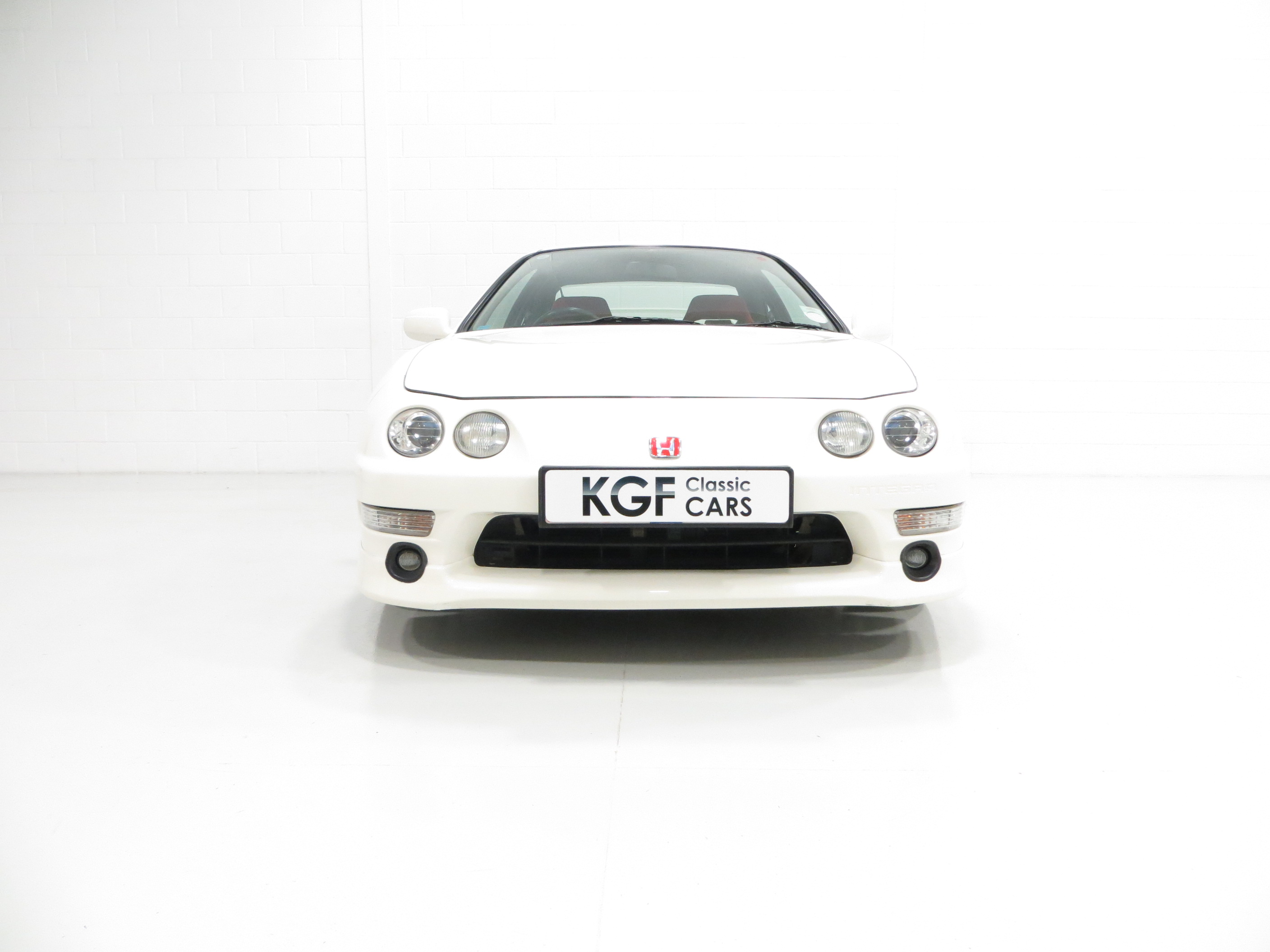 This exhilarating UK supplied DC2 Integra Type-R is finished in factory standard Championship White (code NH-O). Originally the only colour option available for the model, this famous colour revived by Honda for the Integra Type-R recalls their first Formula One victory by Richie Ginther in Mexico 1965. The brilliant pure paint finish compliments the cars sporting styling cues perfectly and the impeccable presentation clearly reflects the cars low mileage enthusiast owned credentials. This incredible example is absolutely factory standard and unmolested, thankfully having escaped the modification and quest of ever more bhp plagued by most. Guaranteed to excite aficionados for the marque close inspection will reveal minor touch-ups to the front bumper. Original supplying dealer plates and tax disc holder further emphasise just how unspoilt and unaltered this car is, again confirming its appeal to appreciative collectors. Simply stunning.