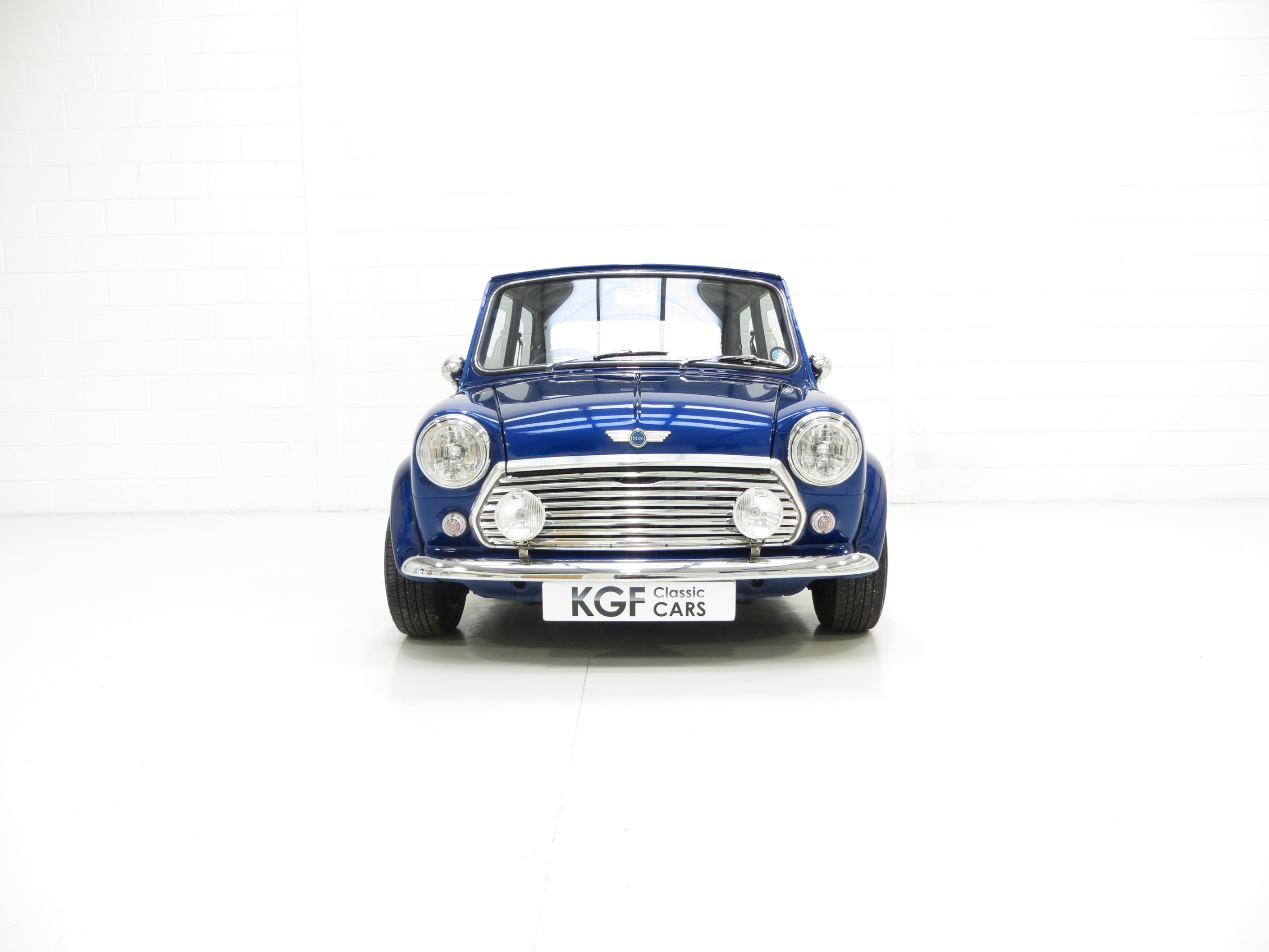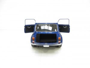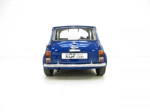 Based on a humble Austin Morris Mini 850, this unique and bespoke creation is finished in vibrant Rover Tahiti Blue and boasts a bright shiny finish. The contrasting Old English White roof shows a very faint area of discolouration, barely noticeable. All the chrome is perfect, including the eight slat grille and front and rear bumpers, as are the colour coded wheel arch spats. Far removed from its humble 850 Super beginnings but still retaining the classic Mini charm, this wonderful creation is a worthy accolade to the original marque and a true credit to its creators.
