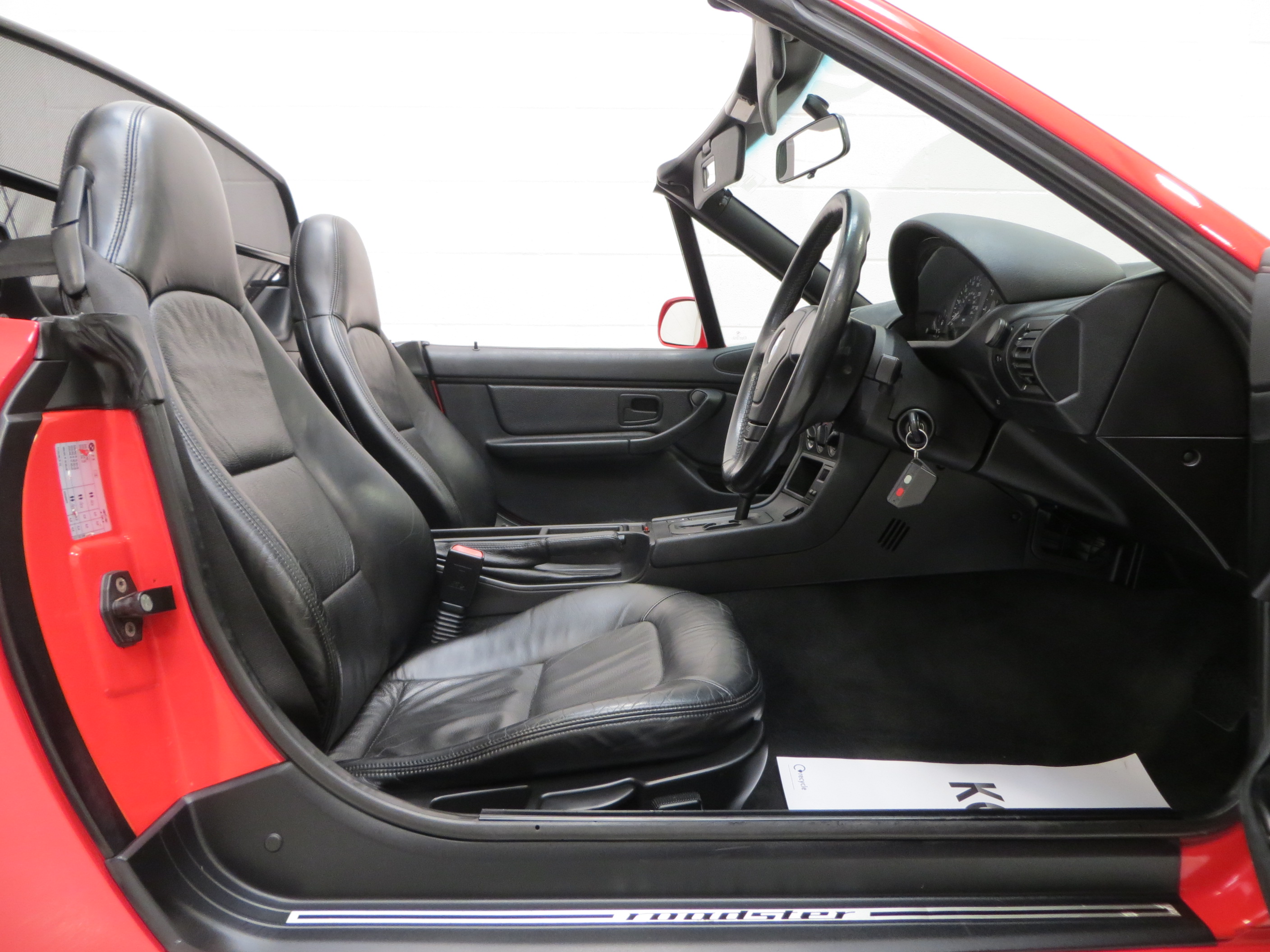 Remaining precisely as BMW intended, this spotless interior bares all the hallmarks of devoted ownership. The factory optional upgrade Oregon leather upholstery in Black (code Q2SW) remains in beautiful condition with firm bolsters and no damage to the trim. Only close scrutiny will reveal very faint hairline creases to the driver’s seats. The leather trimmed steering wheel and gear shifter are unworn and the matching black door cards and carpeting are impeccable, the latter having been protected from new by genuine BMW over mats. The dashboard is perfect and houses fully functioning equipment to include the original BMW Business stereo system which features a six disc changer in the boot. Even the often discarded selector sticker on the centre console remains in place! An original lockable BMW turbulence deflector is neatly fitted and can easily be removed or kept in place, even with the hood raised. A beautifully preserved interior just as the manufacturer intended.