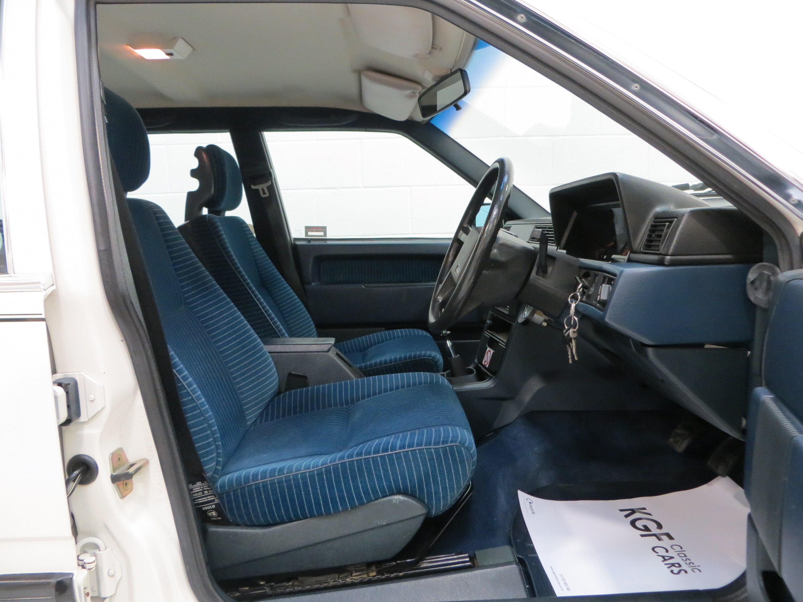 Volvo’s design for the 700 Series with its sharp angular lines and steeply raked rear screen is unmistakable as it is unique, and this amazing 740 GL is finished in factory original Polar White (code 189-2). Incredibly for a vehicle wearing its original coating, and owing to Volvo’s seven layer paint process, the finish is impeccable with a bright pure shine and uniform presentation. There is a tiny ding to the bonnet and a miniscule section of the black coach line to the rear nearside that is broken, barely noticeable. Needless to say this garaged from new example is pure pleasure and the pristine condition is a credit to the former keeper who has cherished the car since 1990! All trims sections and brightwork are perfect including the correct badges. The bumpers are in fantastic order with only the faintest scratch to the front nearside corner, almost undetectable. The nearside headlamp has a chip repair. Quite simply an extraordinary example preserved in astonishing condition, a real enthusiasts car.