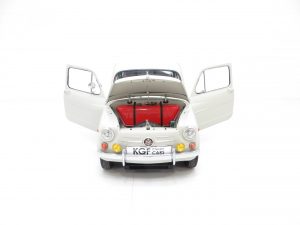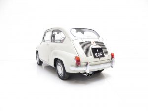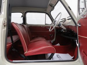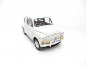 Produced from 1955 to 1969 at the Mirafiori Plant in Turin , the 600 was Fiat’s first rear engine car. This iconic Fiat 600D is finished in period Pale Ivory (code 214) and presents incredibly well. An impressive overall shine is witnessed although the paint finish is not to show winning standards with slight markings on close scrutiny. Structurally sound with all the chrome and stainless steel trim bright and undamaged. One front overrider is showing some dulling and light pitting is evident on the quarter light window surrounds. The rear engine compartment is clean and will impress onlookers ready for the classic car show season. A beautiful compact package.