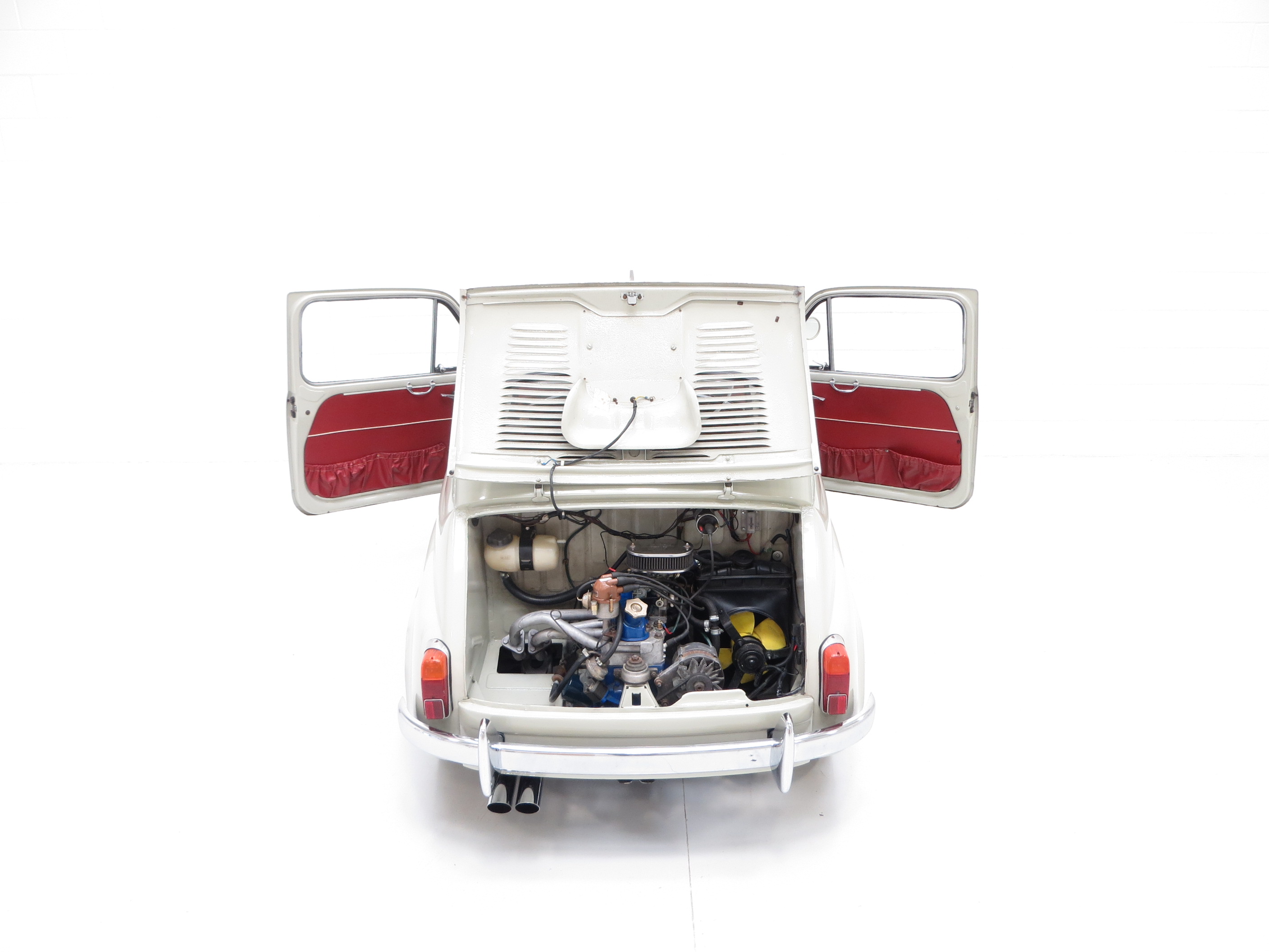 To assist with modern day usage and allow for Abarth conversion, a newer 903cc powerplant from a Fiat 128 has been professionally installed. Improved cooling measures have been taken with the fitment of an additional front radiator and a delightful exhaust note is created through a sports exhaust. The original 25bhp 767cc engine comes with the vehicle to allow factory standard specification once more should the new owner wish. The four speed gearbox with synchromesh on 2nd, 3rd and 4th is light and easy to use. Perhaps not a race winner but endless fun nevertheless.