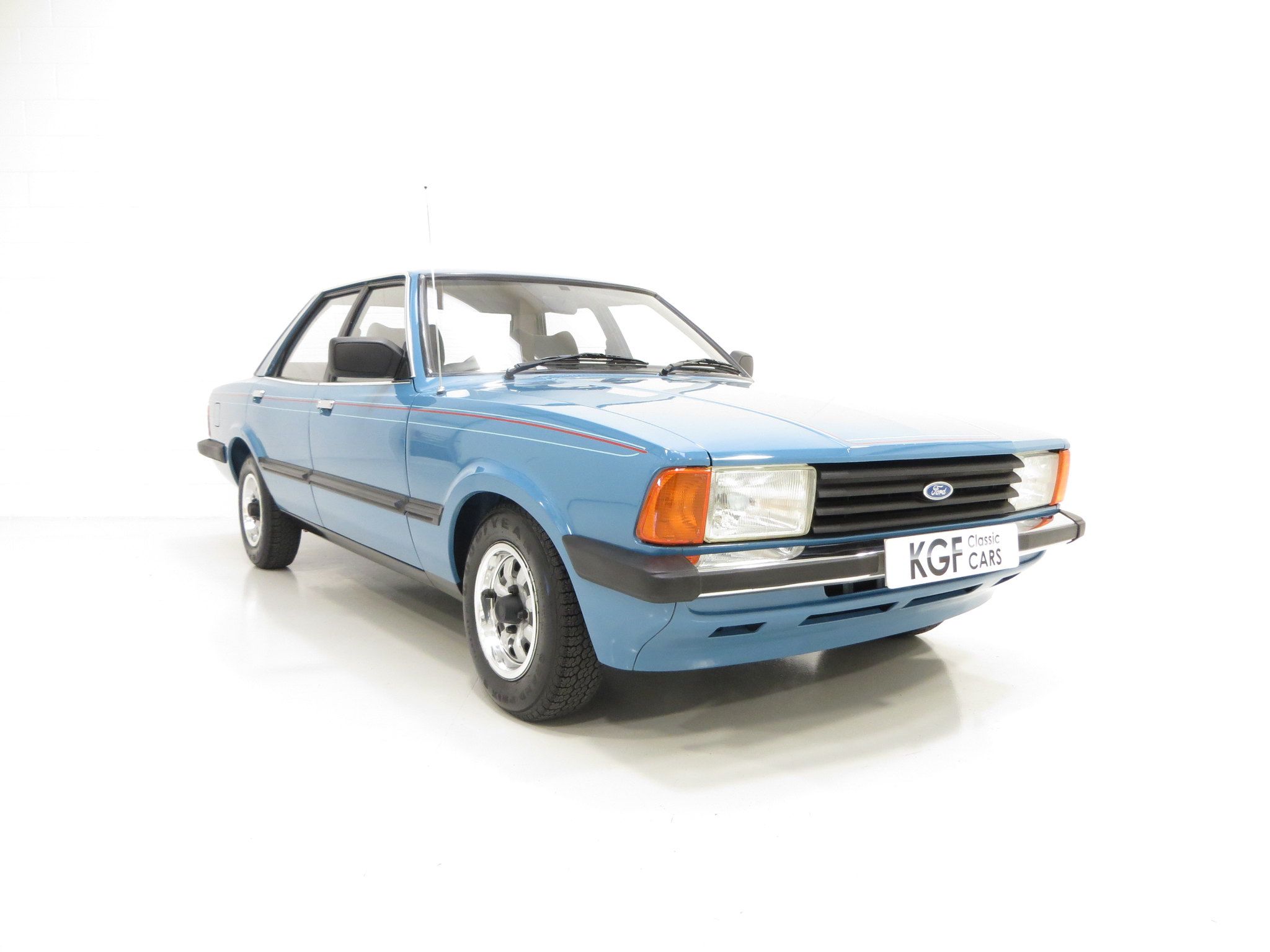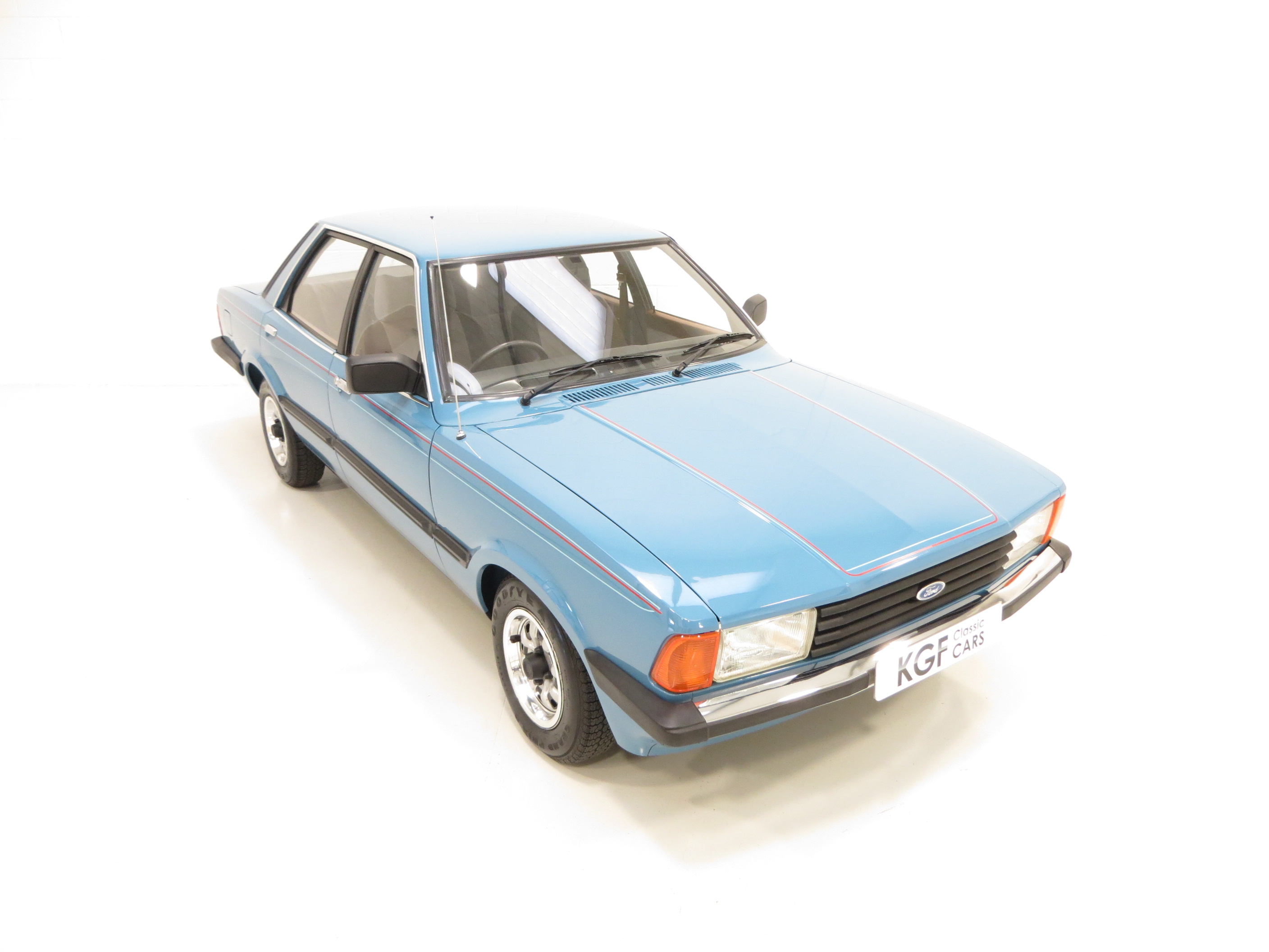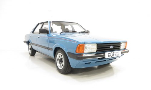 Supplied new by Ford Main Dealer, Page of Epsom Ltd and first registered on the 6th August 1982, making this one of the very last Cortina’s to roll off the production line which ceased making the model at Dagenham in July 1982. Sold to a Mr Walter Wade who shortly after purchasing the vehicle passed away whereby his wife unused the car but was unable to part with it. Since 2010 the vehicle has remained with true advocates of the marque cherishing this museum like example rarely available on the open market. Supplied with an A4 folder of laminated documentation including rare artefacts such as the Pre-Delivery Inspection Checklist, previous registration documents and some old MOT’s. All the vehicle handbooks including the service book are contained in the blue Page Motors document holder. Both sets of keys are present. One for the connoisseur of collectors.