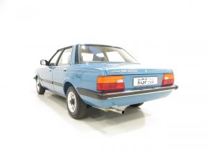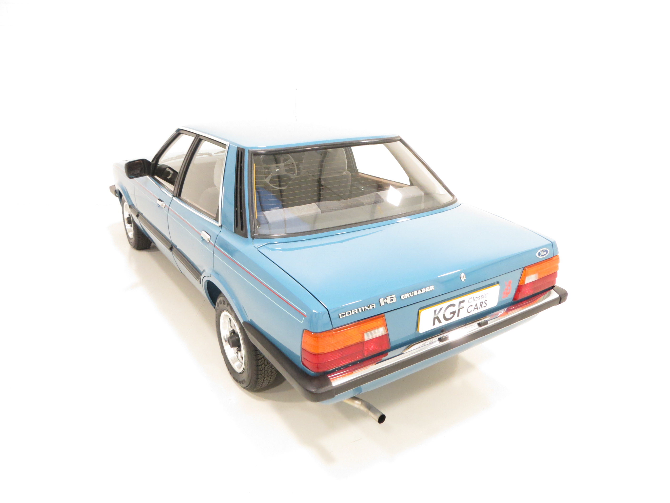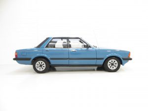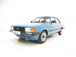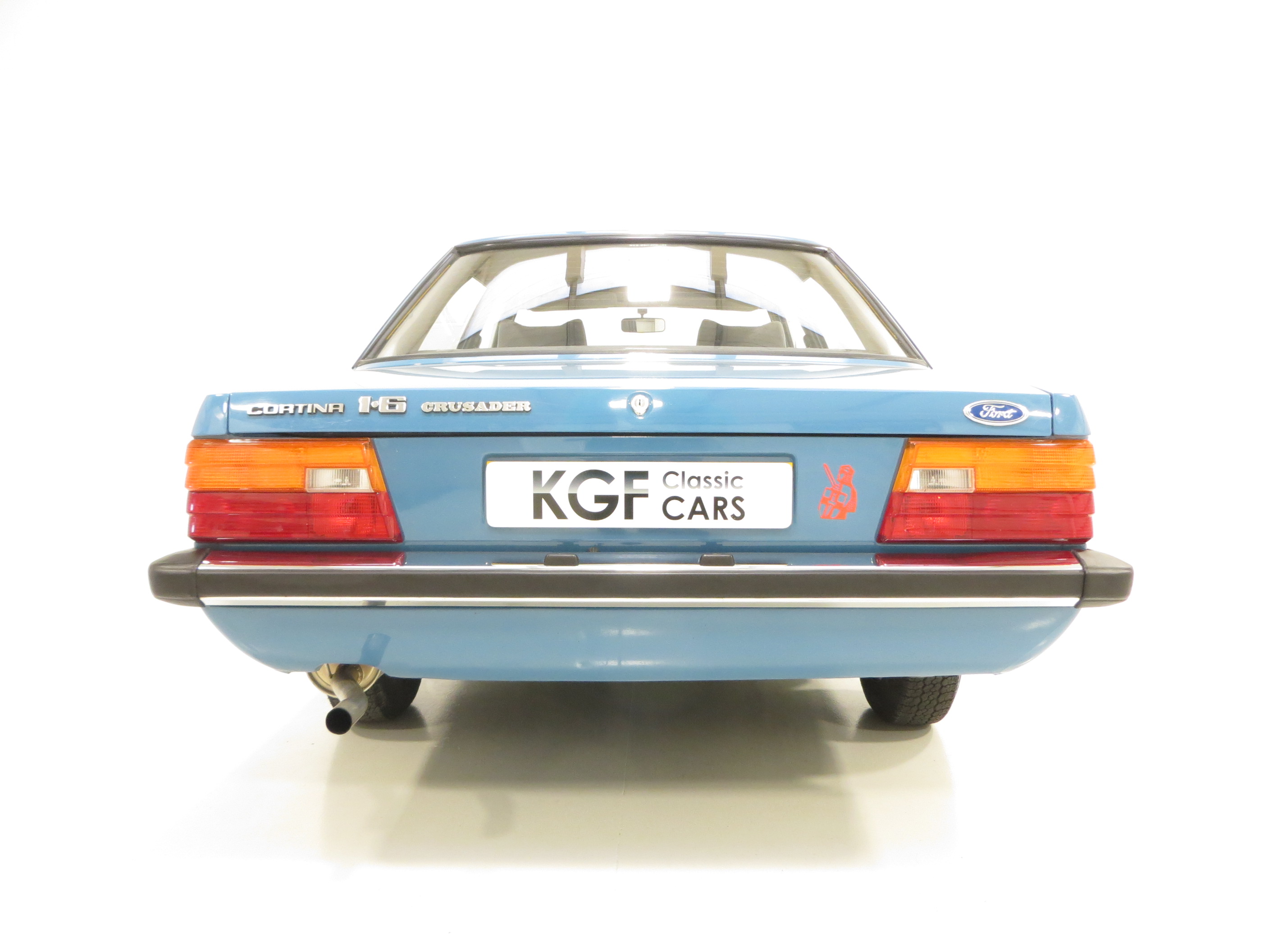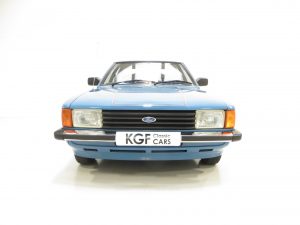 This almost perfect special edition Crusader is one of the final incarnations of Ford’s iconic Cortina MkV, sometimes known as the Cortina 80 being the facelift version of the MKIV. Finished in factory original Caribbean Blue, (Code J2) the paint is production line fresh with the two coach lines running the whole length of the car and across the centre panel of the bonnet adding a touch of distinction. Dealer supplied number plates and rear window sticker will please the discerning perfectionist. The nearside rear door edge is slightly marked along with the valence and the rear window rubber aged. Genuine Ford lenses are crystal bright and all glass clear. The engine bay is a showman’s dream being spotlessly clean and untampered and the underside blue colouring still visible. Remarkably exquisite.
