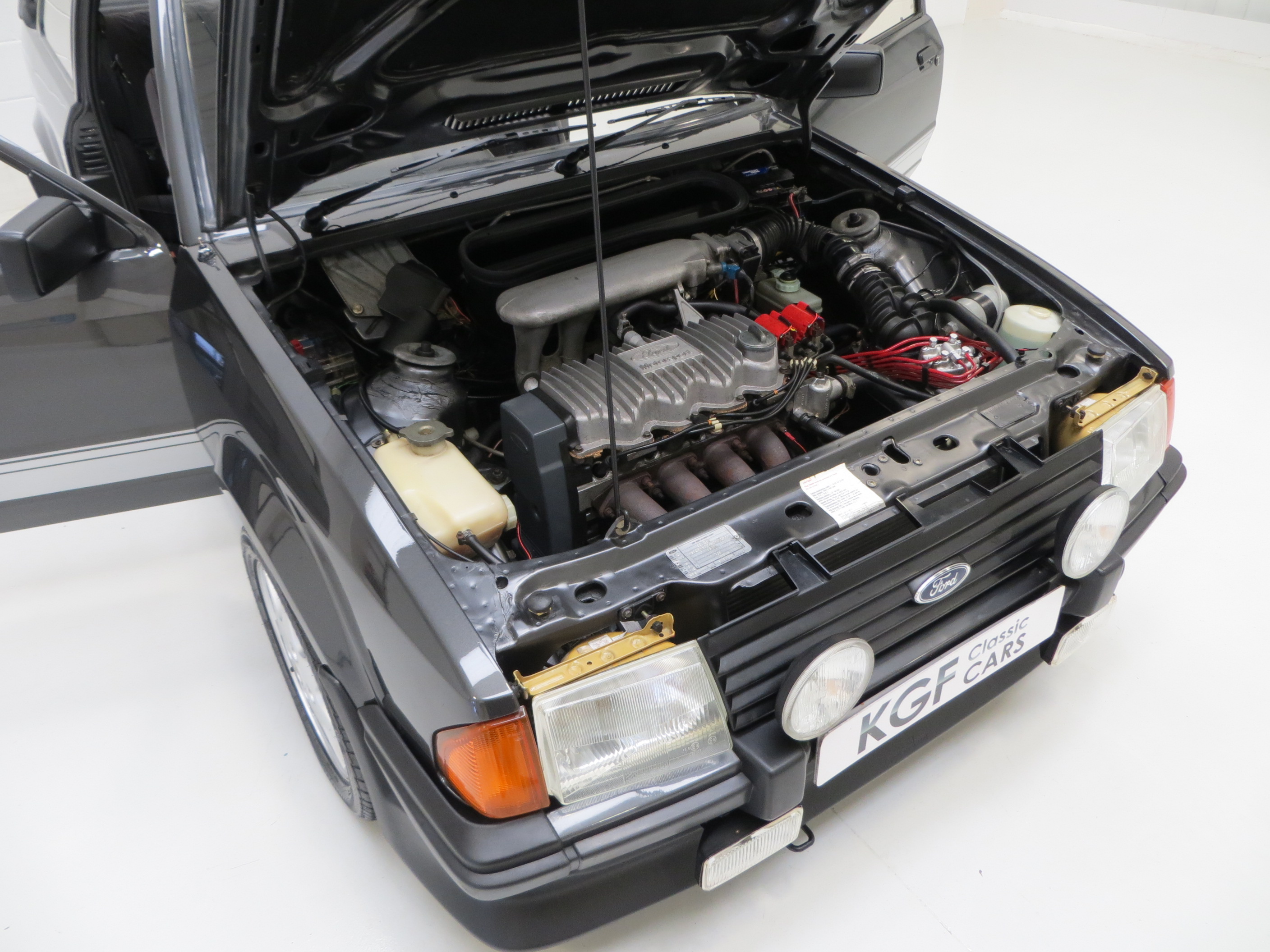 Fitted with Fords 1600 Compound Value angle Hemispherical chamber (CVH) unit producing a manufacturer quoted 115 BHP. Mated to the Bosch K Jetronic Fuel Injection System and incorporating deceleration fuel shut off, the instrument orange and red lamps illuminate upon deceleration once the engine is at operating temperature and the engine speed is above 1600rpm. The car has a top speed of 118mph and achieves 0-60 in 8.7 seconds with an addictive and instantly recognisable rasp from the standard size exhaust. The gear changes are light and exact, a pleasure to operate.