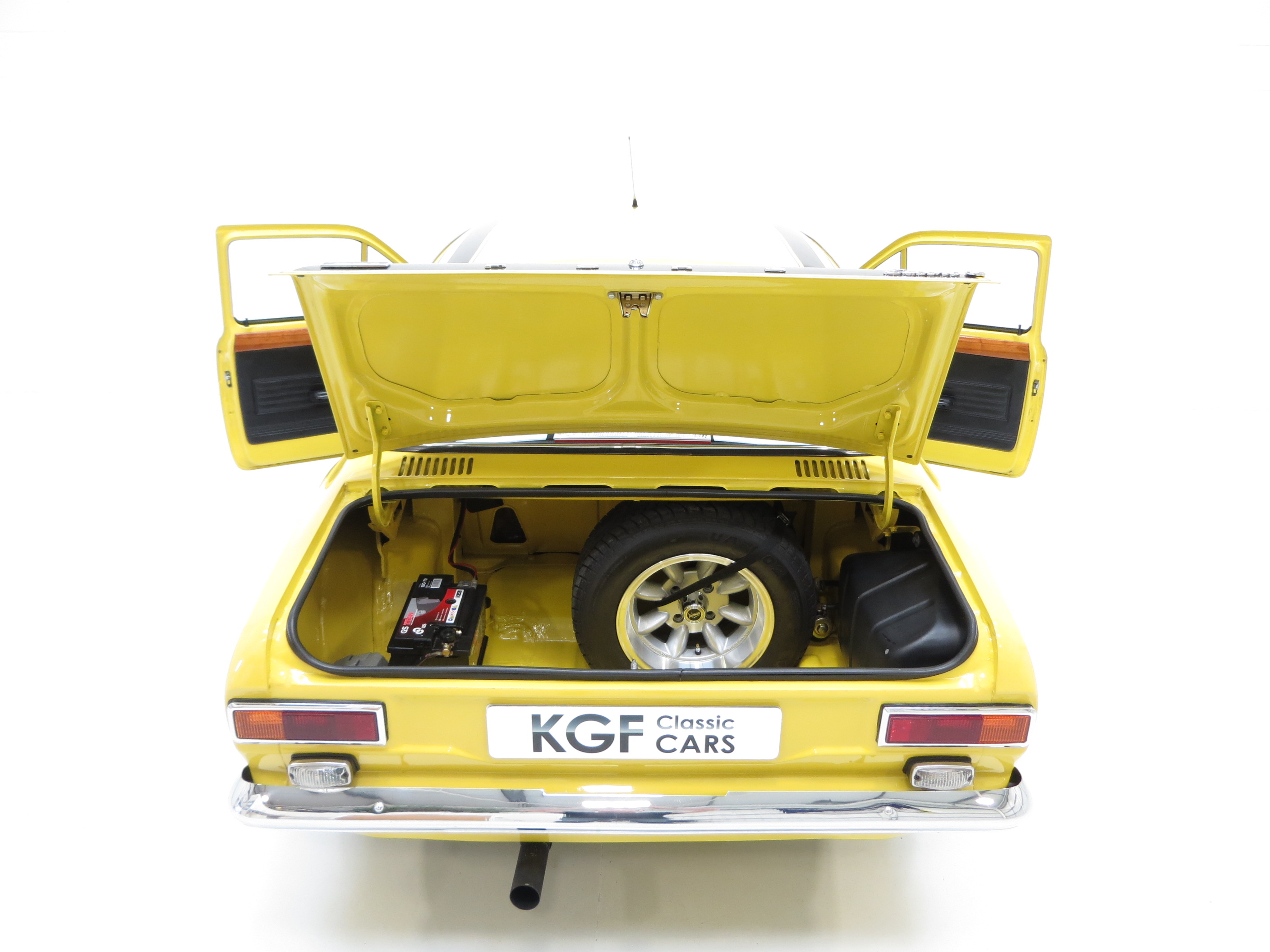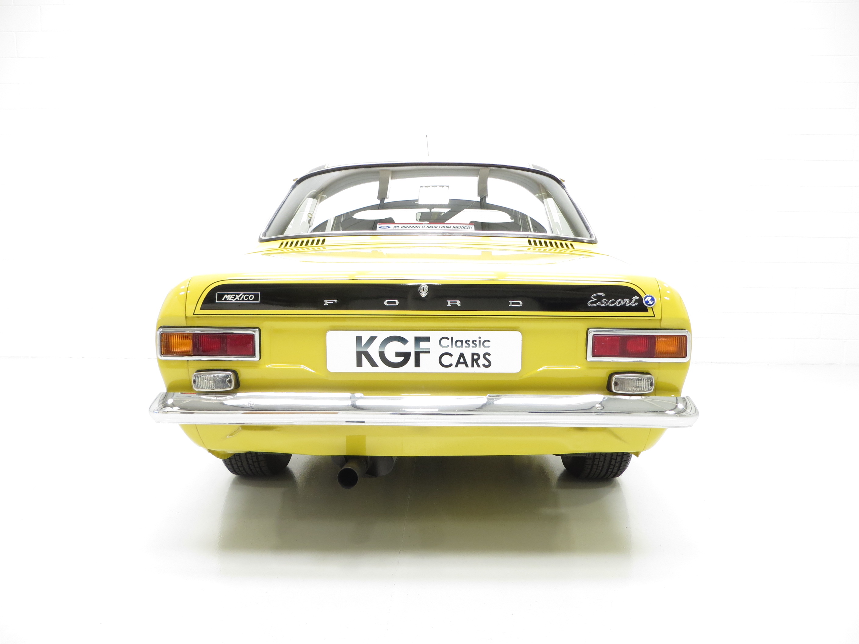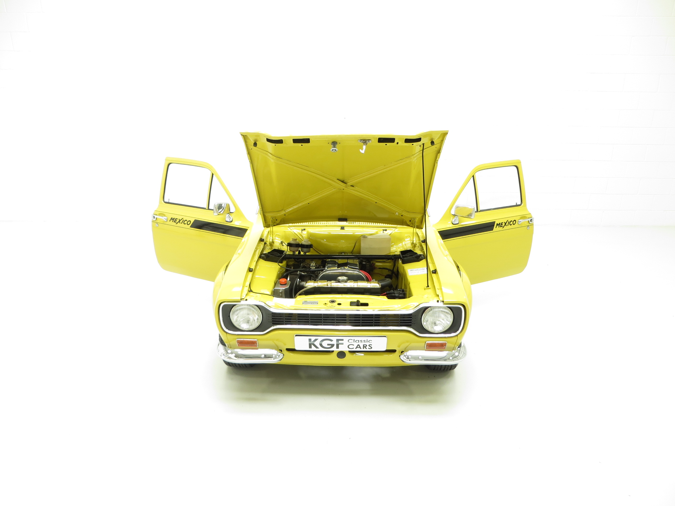 Finished in vibrant Daytona Yellow, this incredible Mexico recreation is visually every part a genuine example to all but the most conversant RS Mexico aficionados. The impeccable paint finish is truly outstanding and would stand up to even the most extreme scrutiny with a wonderful glossy sheen. Incredible detailing extends to the underside of the car which is finished in body colour and the spotless engine bay displays the same high level of finish gaining upmost awe from onlookers. Evidence of recently removed mudflaps can be seen and the driver and passenger front glass is marked. The chrome, glass, and badges are in immaculate order, as are the contrasting original specification Mexico side and roof decals. The ultimate marriage of period correct styling and exceptional craftsmanship.