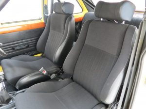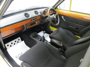 The interior of this vehicle has not escaped the painstaking program of refurbishment having been retrimmed by respected Aldridge Trimming based in Wolverhampton. Matching spotless black carpeting, door cards and headlining compliment the interior immensely. The pristine RS three spoke sports steering wheel is present and the six dial instrument binnacle offers amazing feedback with a digital speedo replacing the analogue item still fitted. The wood veneer is presented in excellent order. The boot area is able to carry full size spare with the correctly positioned battery housed as per the earlier Mexico’s manufactured.