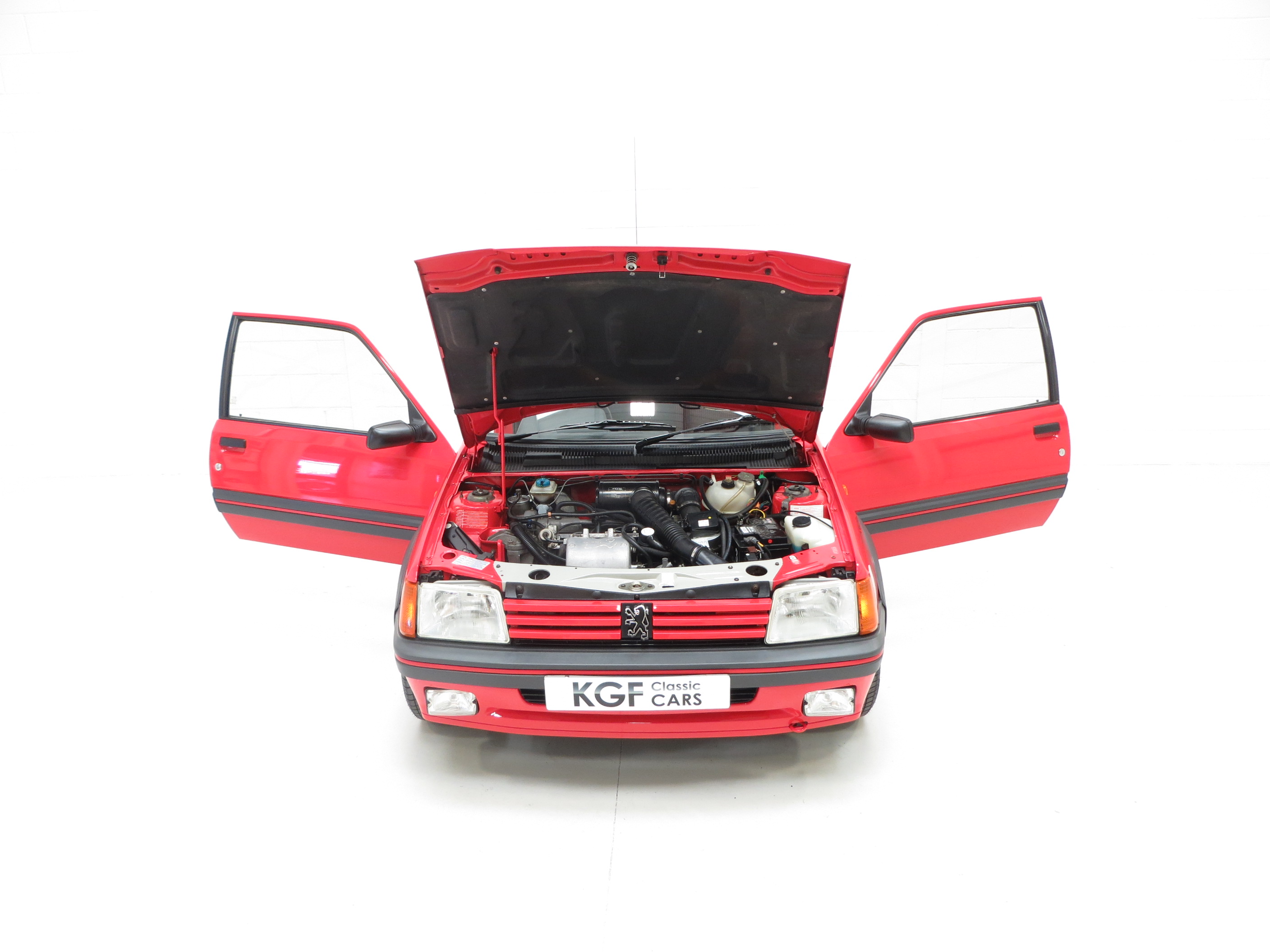 Registered on the 18th August 1989 by Main Dealer Dickens Peugeot of Chester, this remarkable example has covered just 46,820 miles with two keepers from new, the previous owner, Mr Roger Smith, having purchased the car in May 1990 when the car was just nine months old. Strictly garage stored throughout his long term ownership, Mr Smith has cherished and maintained the vehicle to a high standard with the history file containing extensive invoices for work carried out, complimented with a large file of MOT certificates from the first to present. The black Peugeot A5 wallet containing owner guide, owner handbook, maintenance booklet, warranty/service record and dealer location guide remains with the car. A documented full service including cambelt and water pump undertaken in March 2017 ensures this GTi is ready for the next custodian to preserve and enjoy.