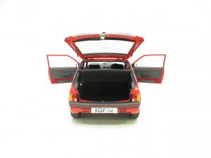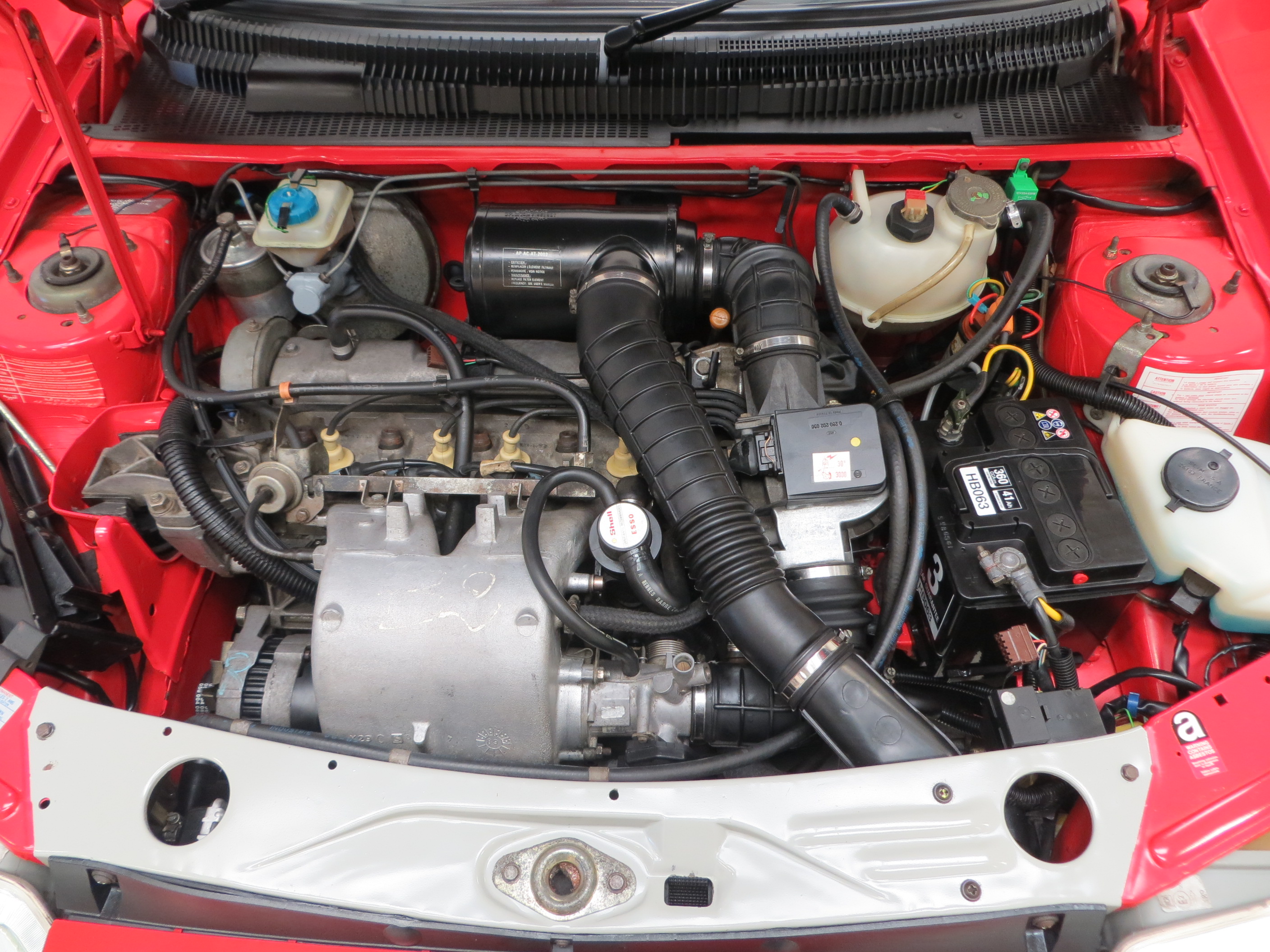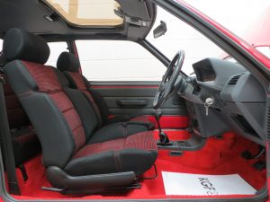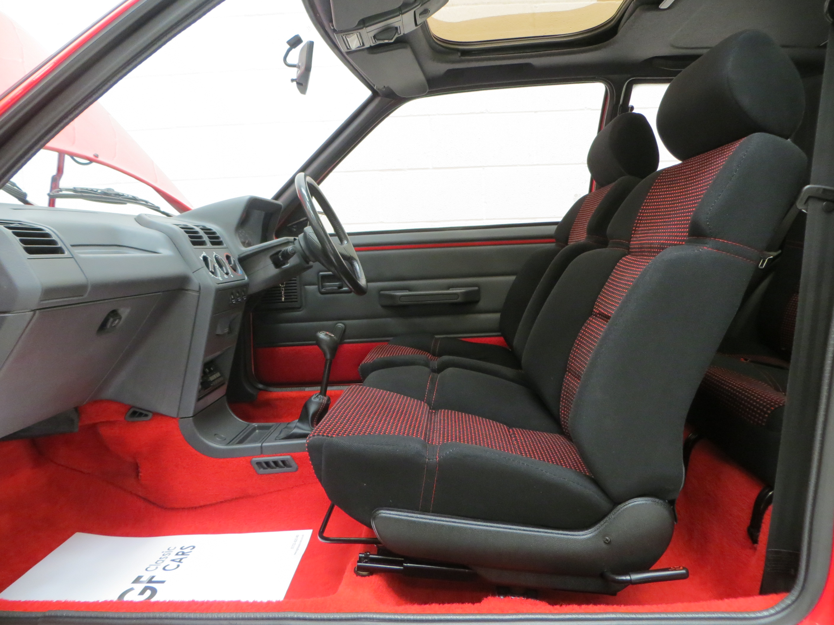Interior revisions introduced for the ‘Phase 1.5’ cars aimed to match the exciting exterior looks, and the most notable changes were to the dashboard and trim design. The Quartet Rouge velour seat trim with black side squabs offers hip hugging support and remains in fabulous condition thanks to careful low mileage low owner use. All the clear sports dials show healthy readings and operate faultlessly, as do the push button switches. The bright red carpeting, anthracite headlining and fully trimmed door cards are in excellent condition. The factory Philips 569 radio cassette player with the standard four speaker system remains fitted and operational, although the letter ‘P’ is missing on the tiny Philips emblem. A glorious period ‘hot hatch’ interior.