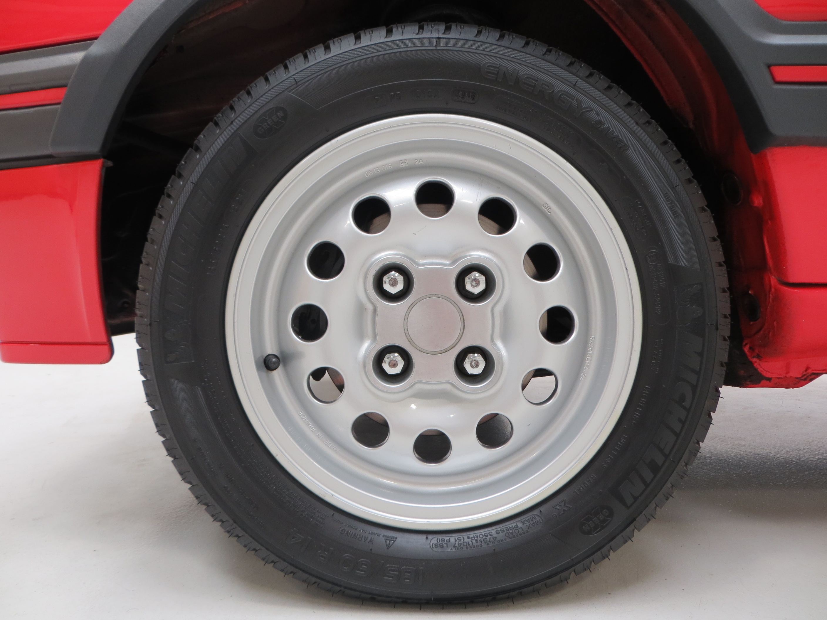 The instantly recognisable 12 hole 5.5J x 14 alloy wheels are unmarked and fitted with brand new correct Michelin Energy 185/60 HR14 tyres. Incredibly, the spare wheel remains shod in the factory Michelin MXV tyre complete with sticker, and was removed from the underside hanger when new and never seen the road! Dual circuit hydraulic vacuum servo assisted brakes incorporates compensator valves fitted between front and rear brake lines to reduce brake pressure to the rear wheels on heavy braking. Front vented discs with floating callipers and rear drums match the performance dynamics perfectly.