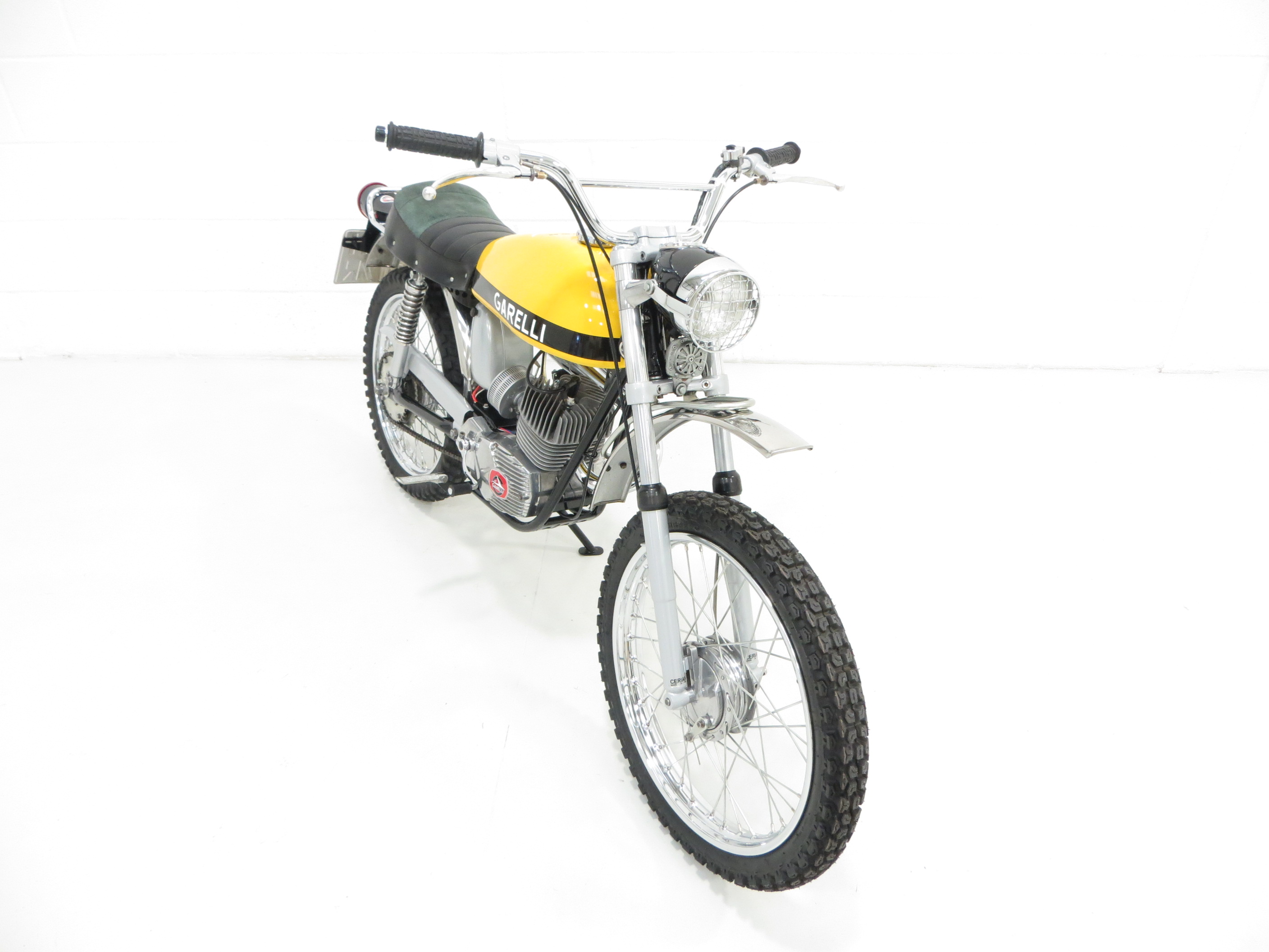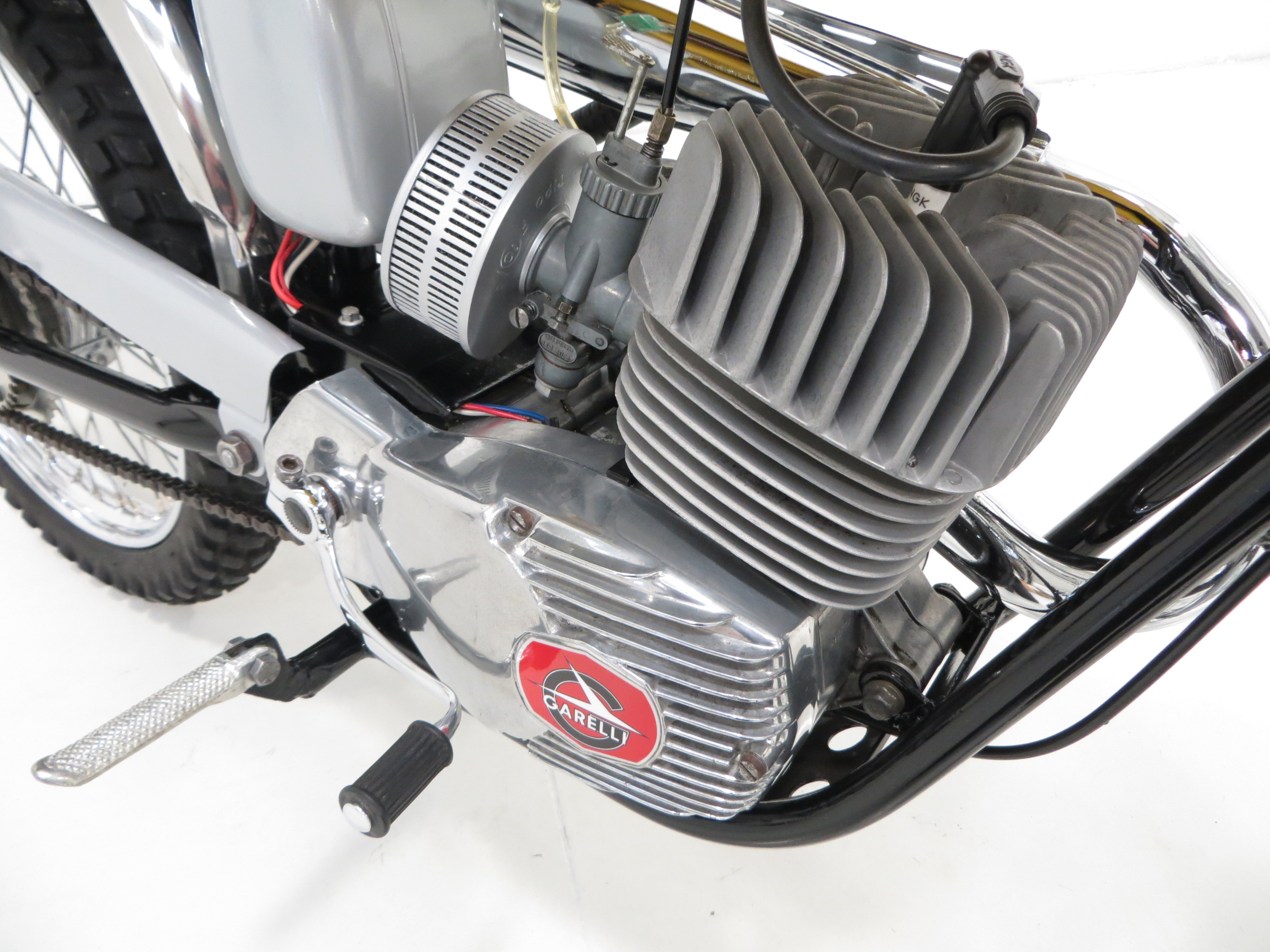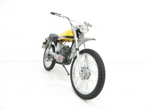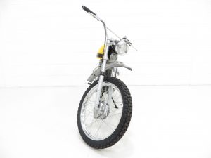 In 1912, Italian engineer Adalberto Garelli designed his own two-stroke engine and achieved national and international success. Garelli sports mopeds were imported into Britain by Agrati Sales (UK) Ltd and the first models were the Rekord and Tiger Cross being one of the fastest at the time reaching speeds of 60mph. Pioneer snowmobile maker, Bombardier of Quebec, Canada launched a series of mini-bikes and trailbikes as a first step into off road motorcycles to complement their huge Ski Doo market as a summer recreational product. The project only lasted one year due to legal wranglings making this Garelli example immensely rare.