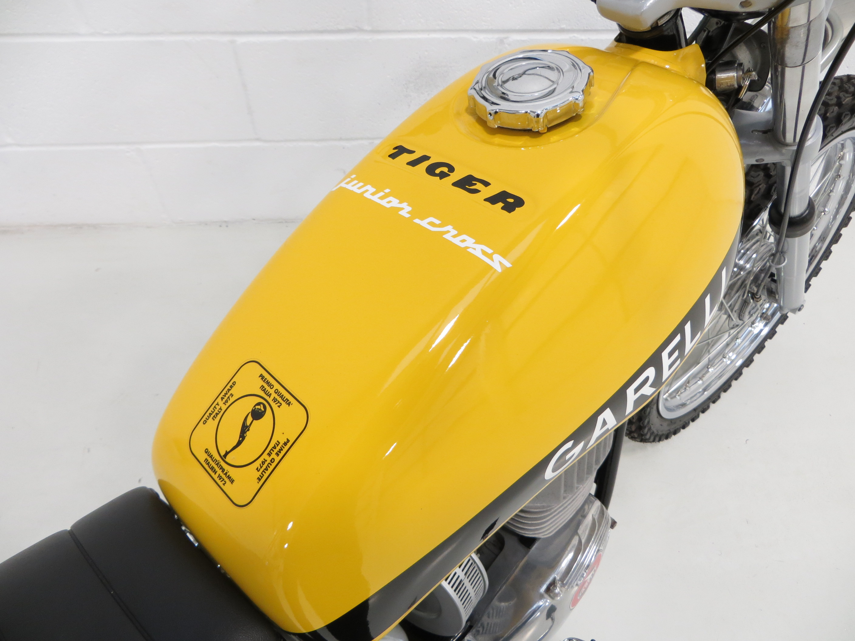 A certificate in the history file from The Vintage Motor Cycle Club, (VMCC), Ltd indicates the year of manufacture of this example being 1971. It was one of the first Garelli Tiger Junior Cross mopeds shipped out to Canada for Bombardier to work on and was purchased by a UK citizen living and working in Canada at the time. When returning to the UK in 1974 he decided to bring this special sports moped back with him. Owned subsequently by renowned enthusiasts with receipts in the history file revealing sums spent on this showpiece. Only now made available by the downsizing of current owners world class moped collection.