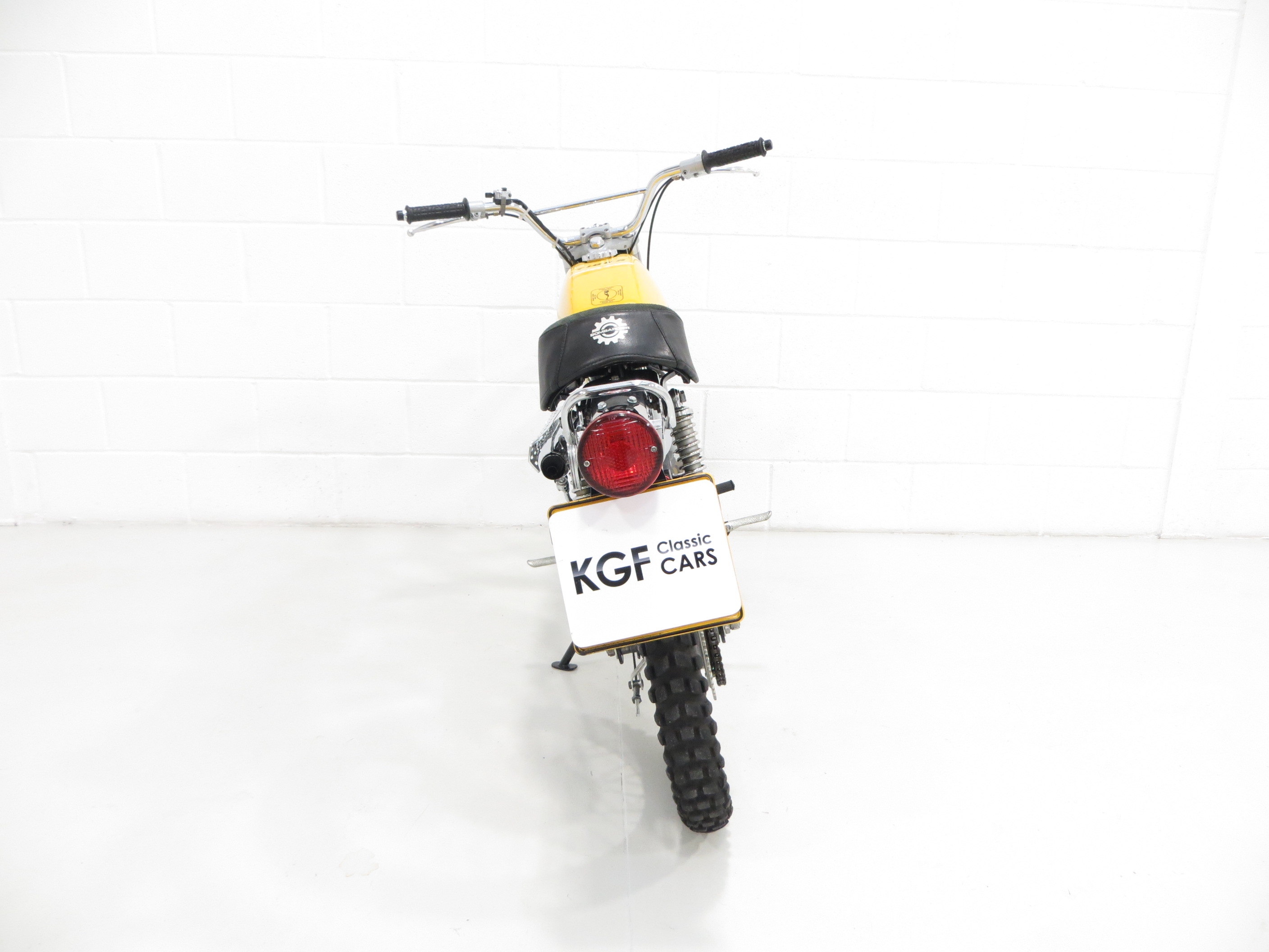 Finished to an impeccable standard the light and sturdy double cradle tubular steel frame has been powder coated and the distinctive yellow and black Garelli fuel tank is unmarked. Pristine decals and bright chrome work make this iconic sports moped a real show winner and receipts from specialists S&T Electro Plate for vapour blasting and zinc plating helping to reveal the detail and expense lavished on this rare machine. The half suede seat to prevent slip with the distinctive Bombardier logo is stunning and the correct CEV headlamp with guard remains fitted. A real ‘sixteener special’.