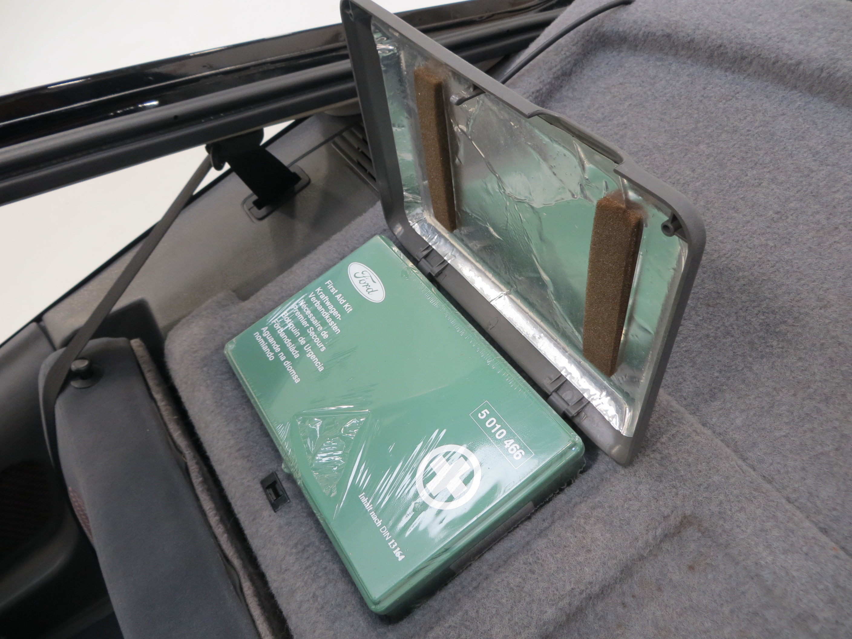 The interior of this RS Cosworth is simply stunning. Finished in Ford Roma Grey (code S2), the Recaro seats and door trim are superb. Only light creasing to the driver’s seat base is evident. The carpets are spotless and have remained free from wear having been protected by tailored floor mats. All interior equipment and trim is original, functional and free from any modification or additions. The dashboard is immaculate having suffered no cracks, discolouration or distortion. The standard electronic sound system with power amplifier remains as Ford intended and the LCD display to warn of bulb failure and open doors operates perfectly with all lamps elements working. Even the original unopened Ford first aid kit still wrapped in cellophane remains in the parcel shelf compartment! An absolute showpiece.