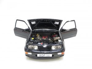 The Sierra RS Cosworth project was defined in the spring of 1983 by the then recently appointed head of Ford Motorsport in Europe. It was established that at the time, Ford was no longer competitive in this area. After receiving full support from Ford Public Relations, the project was underway with the Sierra chosen as the basis for the project. Ford Motorsport in Europe approached the automotive company Cosworth who answered positively, but put up two conditions: The street version of the car had to produce no less than 204 HP, and Ford had to accept no less than 15,000 engines. The project would only need about 5,000 engines, but Ford nevertheless accepted the conditions. The extra 10,000 engines would later become one of the reasons Ford also chose to develop a four door, second generation Sierra RS Cosworth. Few cars have ever been greeted with such enthusiasm as the original Sierra RS Cosworth.