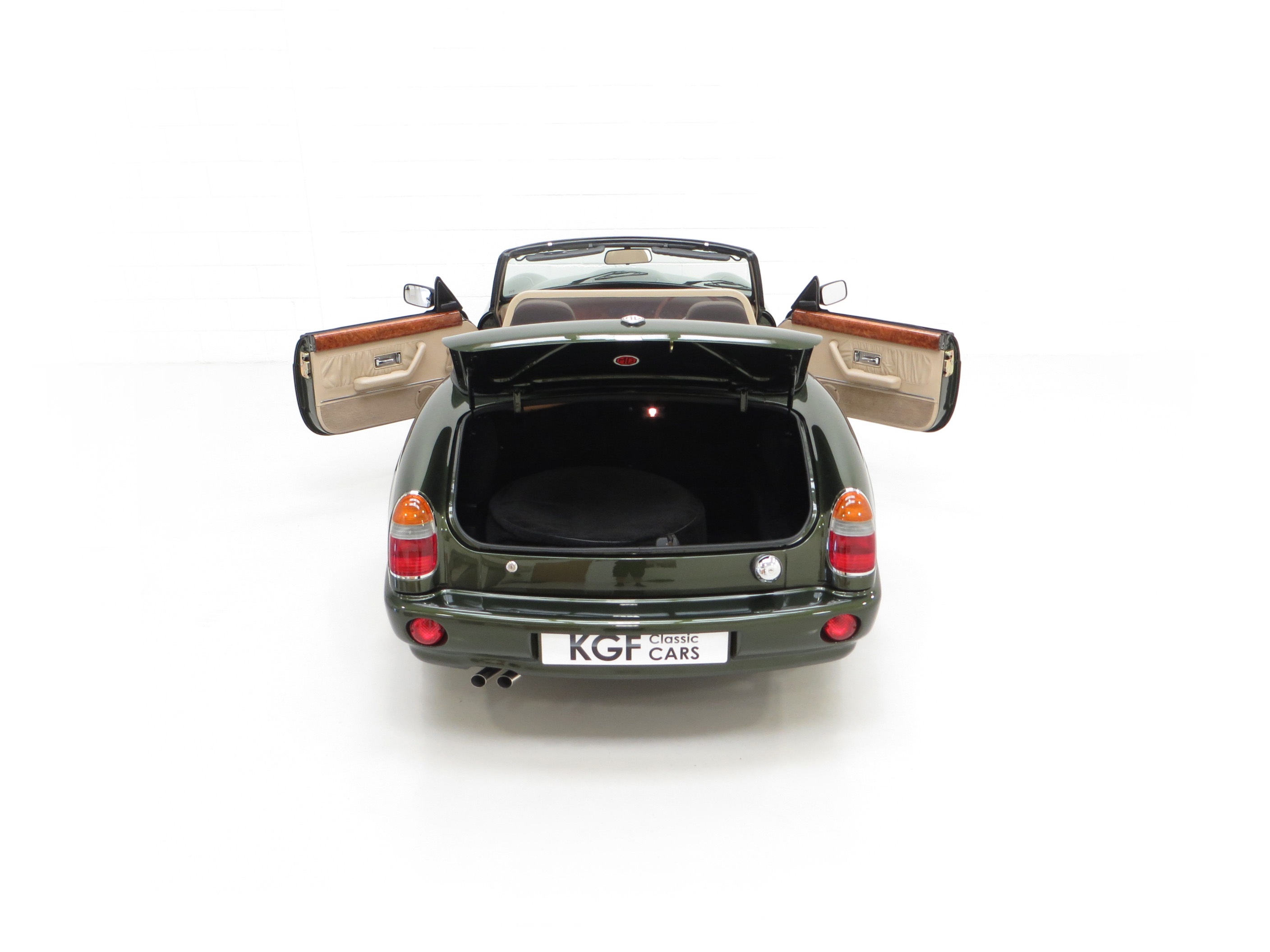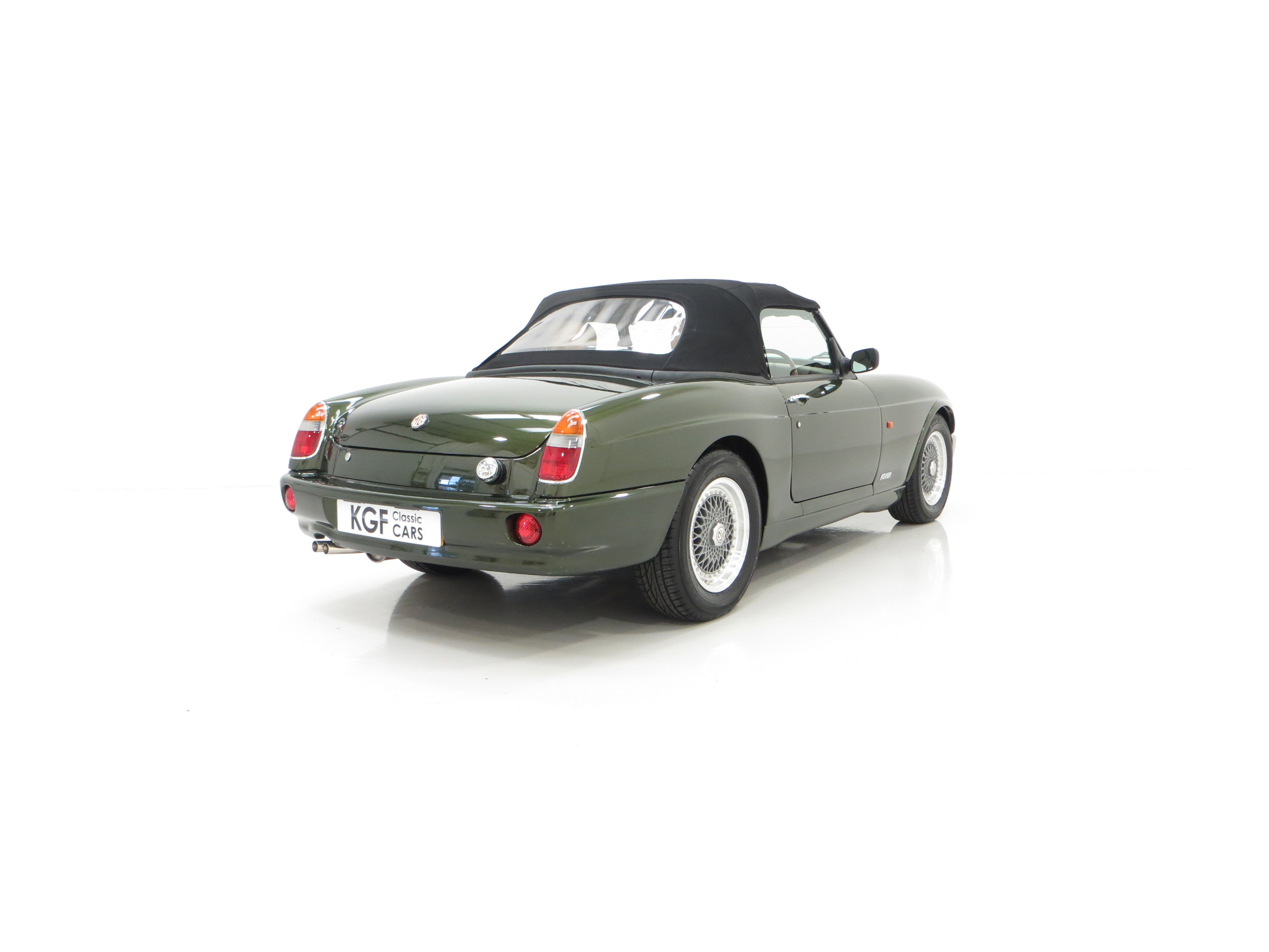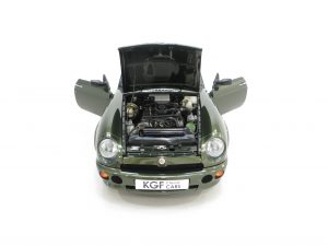 Flared front and rear wings, moulded body-coloured sills, laminated windscreen, halogen headlamps, analogue clock, voltmeter, intermittent wipe, twin horns, cigar lighter, lights-on buzzer, courtesy light delay, boot lamp, illuminated glovebox, remote boot release, rear tonneau, centre armrest, 3-speed heater fan, tailored MG carpet mats. Factory options; Pearlescent paint. Accessories; Elm Burr veneer and polished steel Moto-Lita steering wheel, Elm Burr veneer gear knob, bespoke leather rimmed wind deflector, tailored soft car cover.