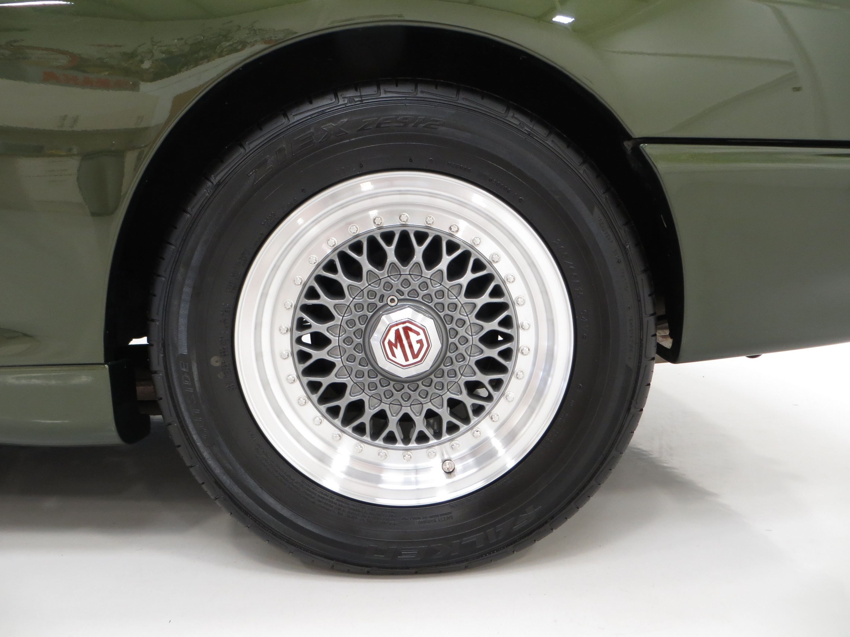 Distinctive cast alloy 15x6J road wheels with mid grey cross spoke sections are unmarked and still retain the MG centre security caps. The Zender split rim bolts have no corrosion and matching Falken 205/65 R15 tyres have ample tread. Servo assisted ventilated front disc brakes with 4-piston callipers and rear drums do an impressive job of bringing the vehicle to a safe halt.
