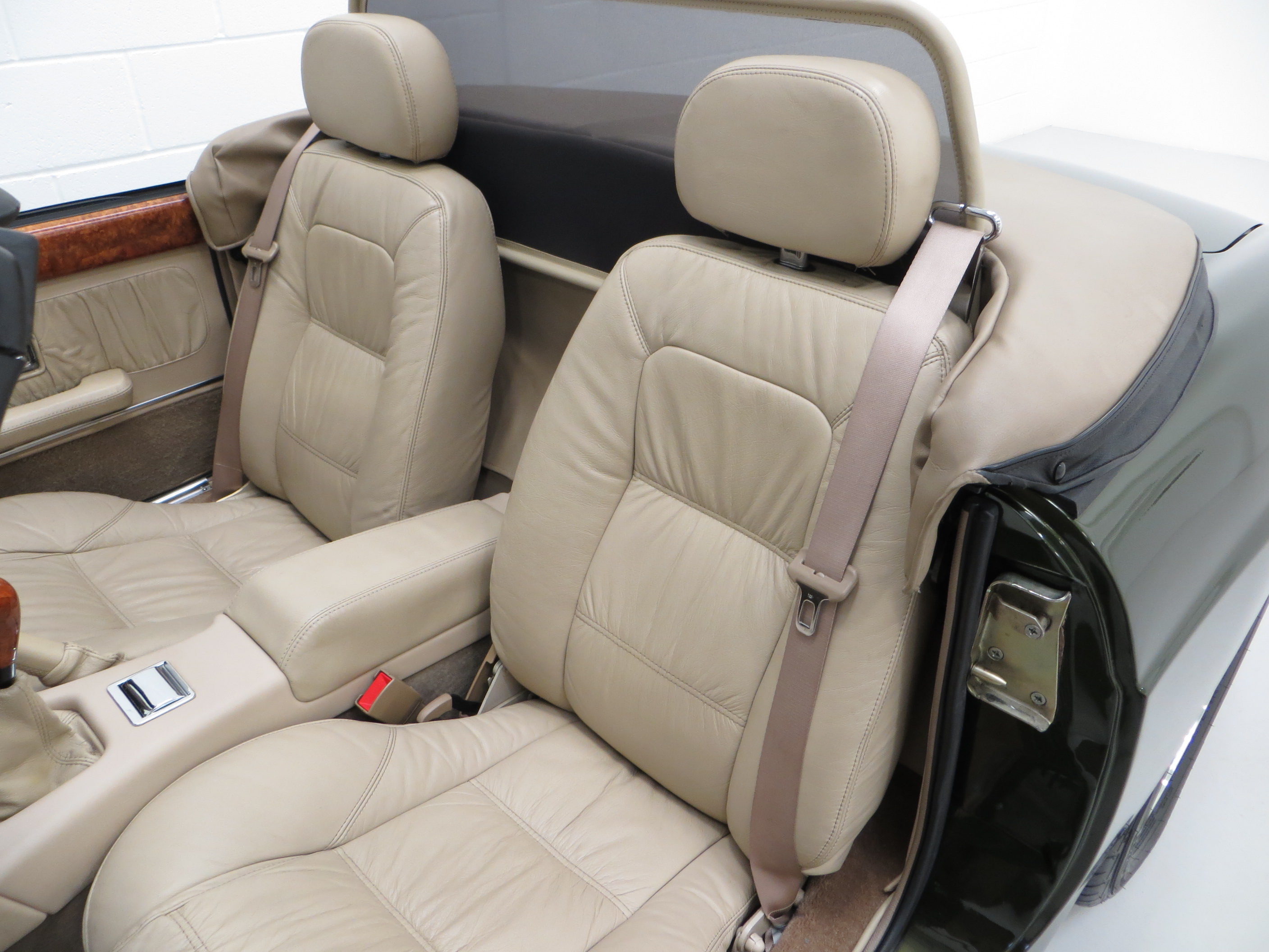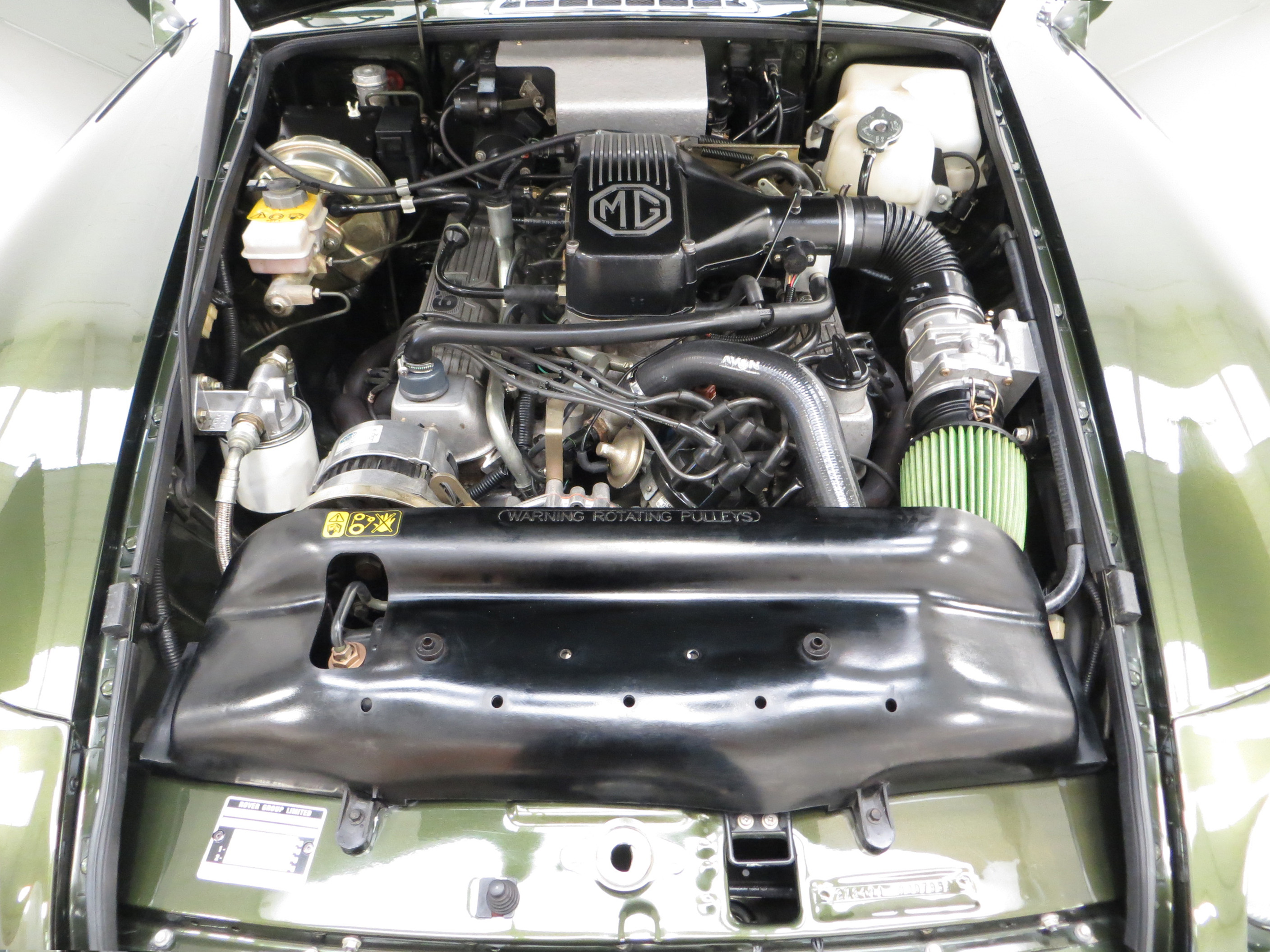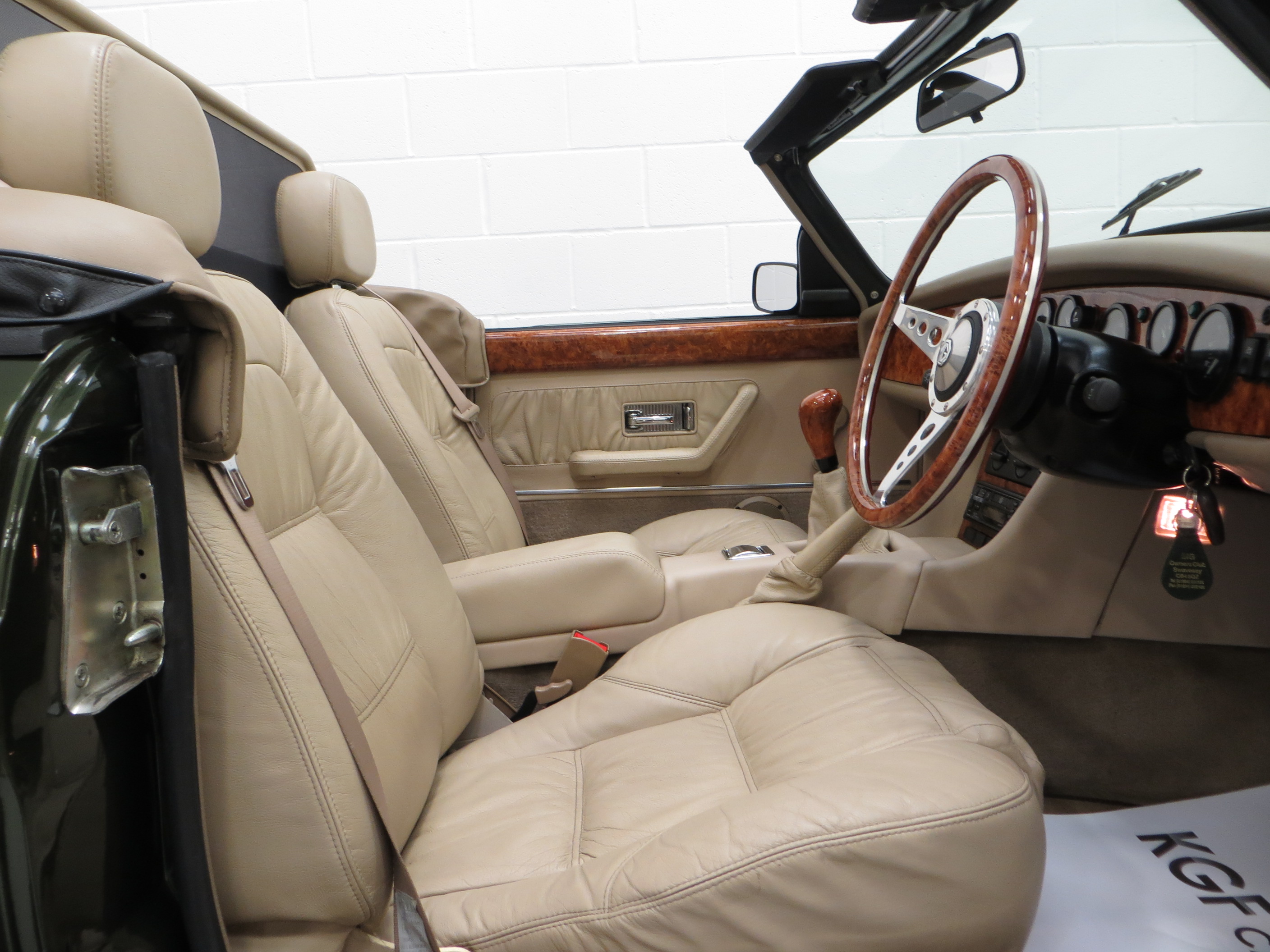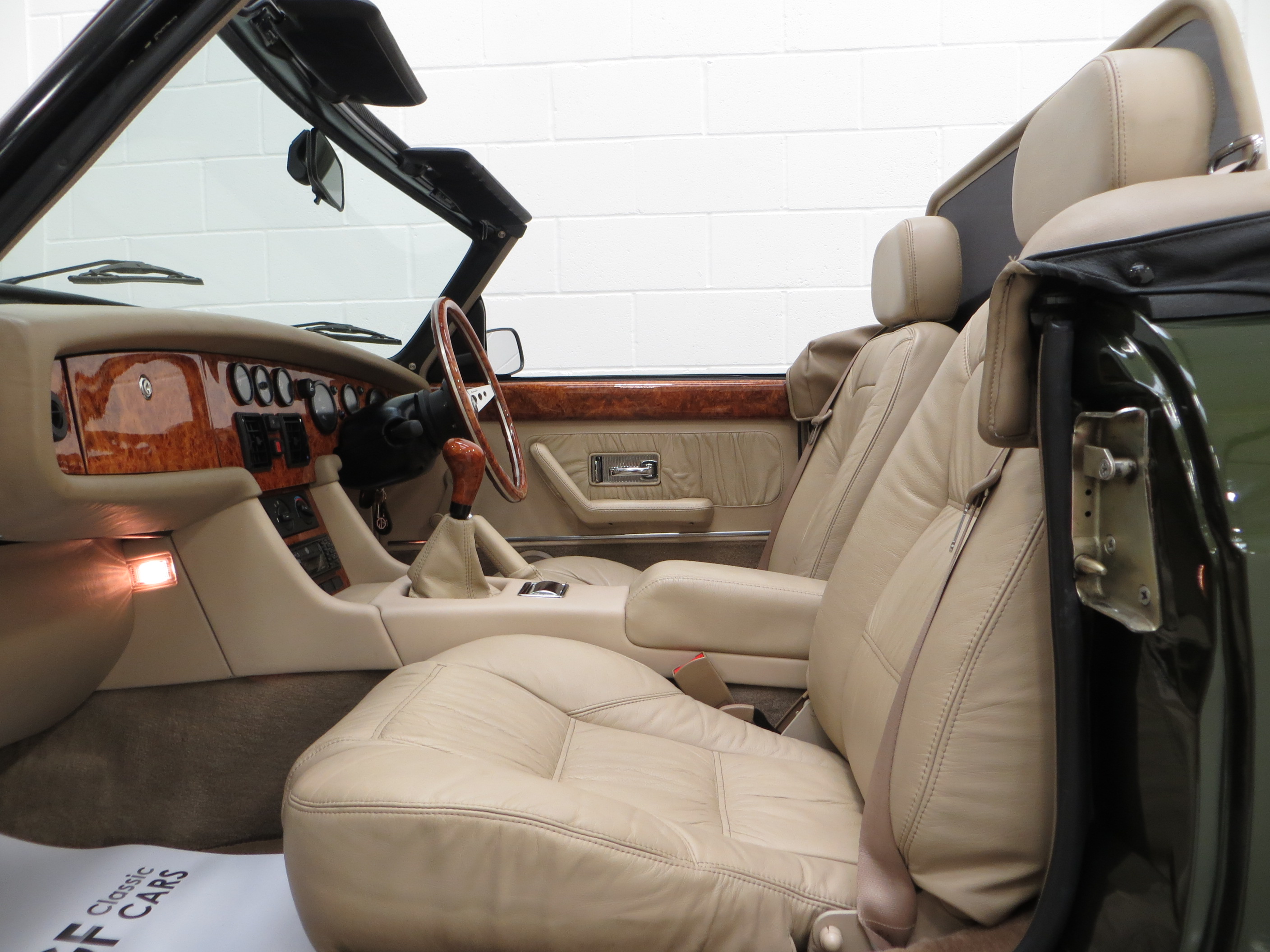 Lavishly trimmed in fine Connolly Stone Beige leather, (Code SMJ), with a ruched pattern and rich in Elm Burr veneer adorning the facia panel, centre console and door cappings the interior is pure luxury. The optional and expensive Elm Burr Moto-Lita steering wheel and gear knob are fine additions to this regal interior. MG traditional sporting appeal can be seen with a full set of VDO black-on-white working instruments and chrome interior door handles, roll top lid ashtray and handbrake release button. The original MG velour mats have protected the dark Stone Beige cut pile carpets. The correct Panasonic radio cassette player with the MG logo remains fitted. A beautifully traditional interior in outstanding preserved condition.