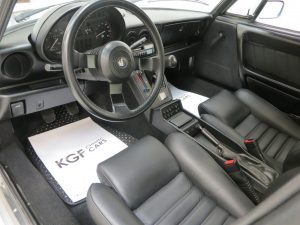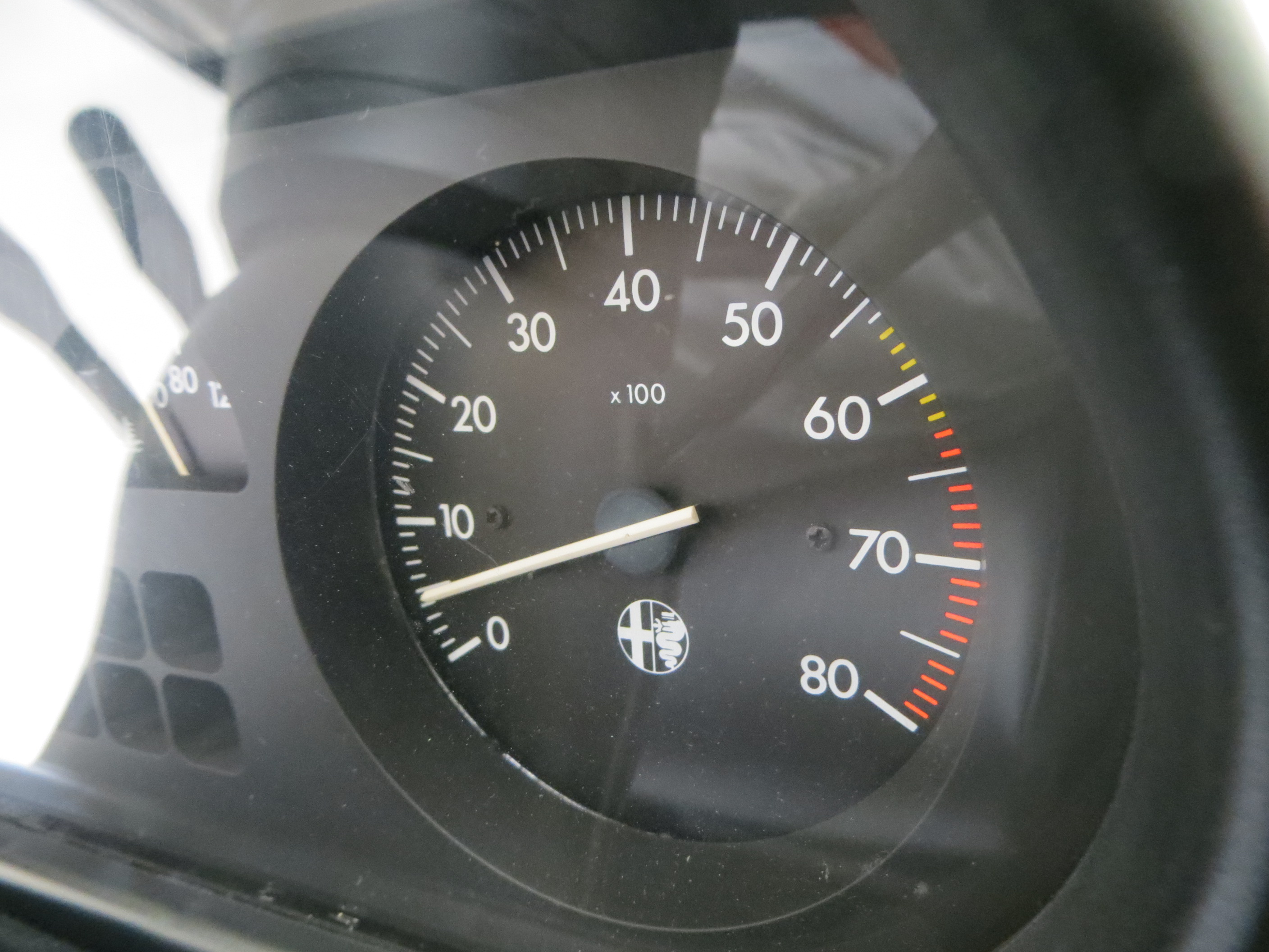 Renown for dubious interior durability, it is an amazing testament for the quest of perfection that this example has a factory fresh look. Fabulously appointed in optional Black leather seating with matching door cards no wear can be seen. The carpeting is pristine having been protected by expensive made to order Cocomats which also extends to the spotless boot flooring. Factory stickers can be seen including the boot lid colour code sticker and a now redundant Alfa Romeo tax disc holder with a period disc is situ. The foot pedal rubbers still have the intricate circular patterns clearly defined and the roof/handbrake leather poppers remain functional. A battery isolator switch has been installed in the boot to preserve the battery when not in use and an immobiliser professionally installed for added security. A fire extinguisher has also been neatly fitted.