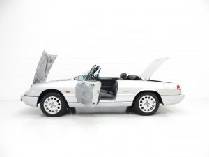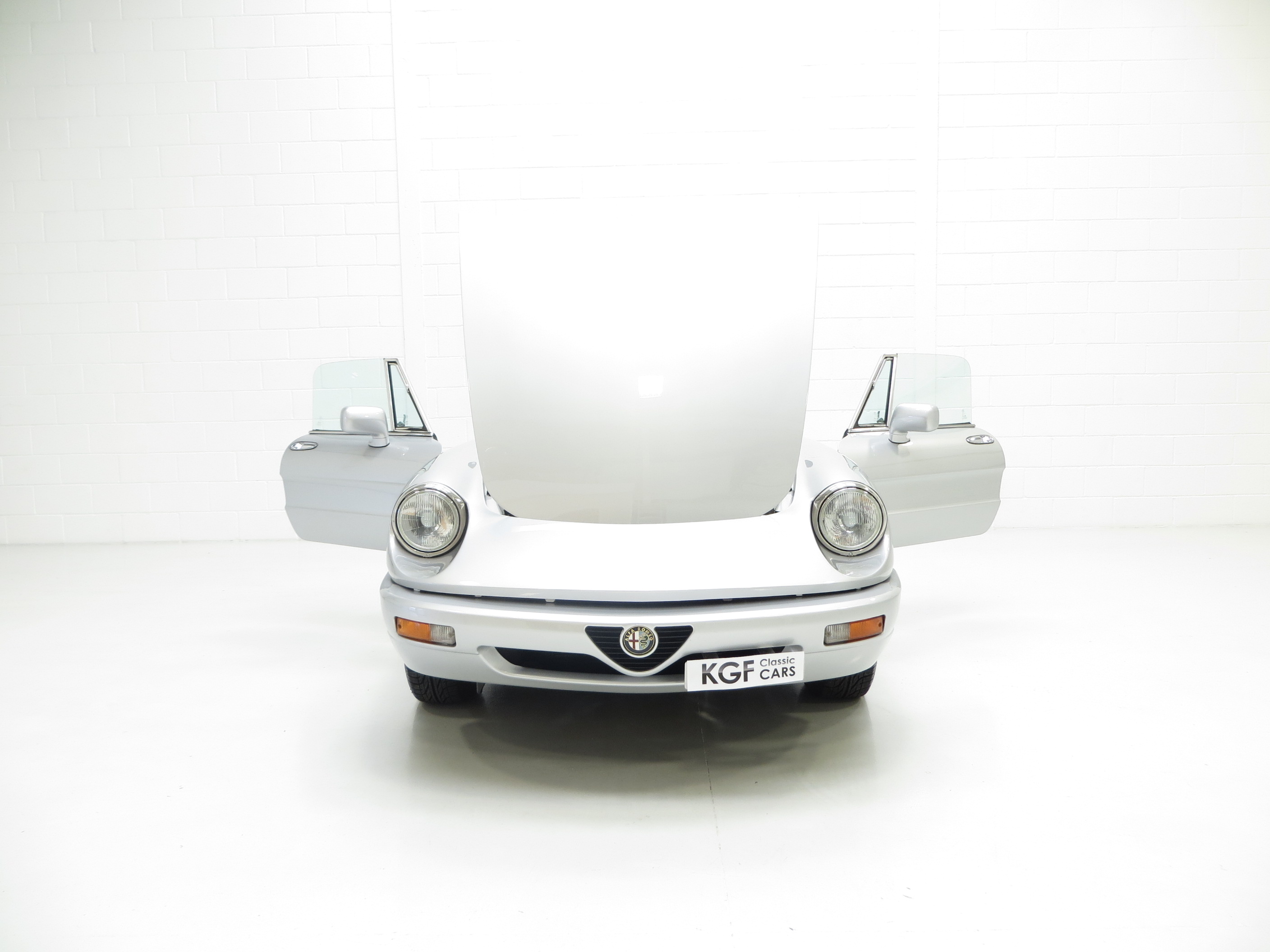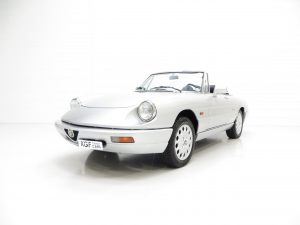 Complete with all documentation this superb example was manufactured on the 10th April 1992 and sold by German Alfa Romeo Dealers, Auto-Kremer, to the one private individual, (Dr Alexandra Leffers), on the 7th May 1992. Maintained by this supplying Dealer up to 1996 when it arrived in the UK on the 20th November 1996 with 39,386 miles. Enthusiast owned since being UK registered this example was subject to an extensive restoration programme in 2010 commissioned by Ludovic Parayre to create in many ways a better than new example. Extensive photographic evidence of the work will reveal an amazingly sound and perfectly usable example in the first instance, yet invoices to the sum of £26,777 are included revealing the intensity of the programme. Impeccably maintained since with fair weather use only. Previously sold by KGF Classic Cars in August 2015 to collector Mr S Mendelsohn who has decided to part with the car only having found another Series 4 Spider with just one owner from new and 8,000 miles!