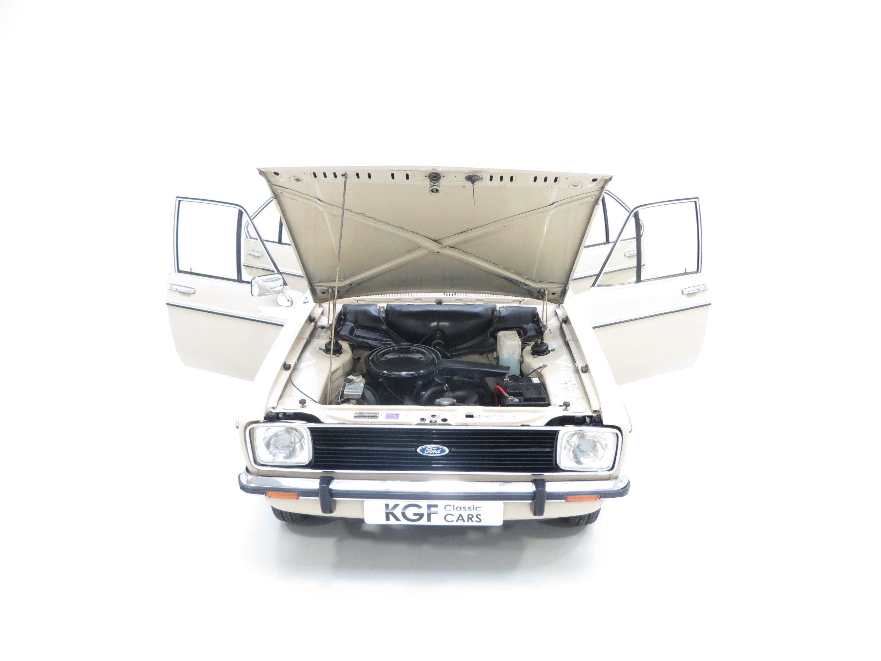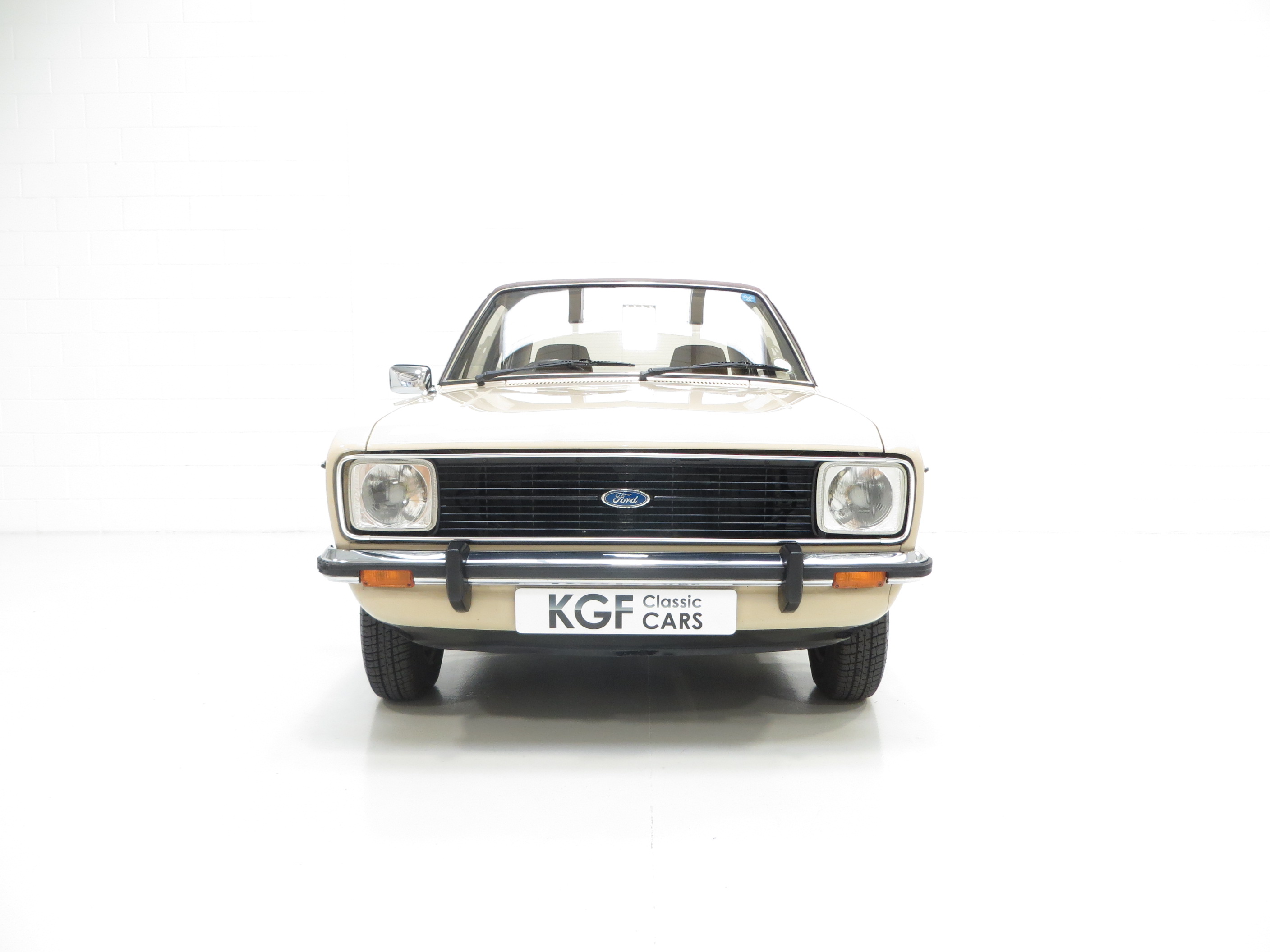 This range topping for luxury 1300 Ghia example is truly exceptional in its originality and preserved condition. Finished in Ford Cordoba Beige (code PK0) the paintwork is remarkable with a bright polished shine and impressive finish. Only faint evidence of remedial paintwork carried out to the front offside wing is worthy of mention against the otherwise factory finish. All original panels are straight and display uniform gaps. There is absolutely no corrosion to the body and the underside is structurally perfect with evidence of factory underseal, commensurate with a low mileage garaged example. Only very minor markings to the paintwork can be seen upon close scrutiny, and a small ding to the boot lid barely noticeable. The bright trim sections and badging is fully intact and remains in excellent order aside from a small area of damage to the rubber of the front offside bumper corner. The supplying Ford dealer number plates, rear screen sticker and tax disc holder remain fitted. A truly cossetted example of this classic Ford preserved just as the manufacturer intended.