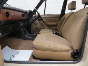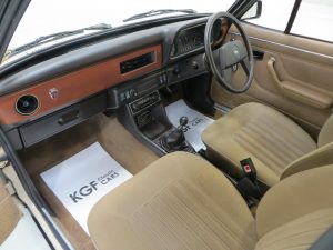 A near perfect interior to absolutely delight the originality seeking enthusiast. The original Verona crushed velour upholstery in Tan (code B9) is very clean and has been preserved impeccably with no wear to the coverings. Only a tiny burn to the driver’s seat and rear bench prevent the term perfect being used to describe the overall cabin space. The matching cut pile carpeting and vinyl door cards with loop pile carpeted lower sections are pristine and the headlining is fully intact. The dashboard displays no cracks whatsoever and houses fully functional switchgear, controls and gauges as well as the factory fitted push button radio. The soft feel steering wheel feels as new with the veins still prominent. The boot area houses all the tools and even the factory stickers on the boot lid! A superb rare surviving classic Escort interior remaining true to the Ford product, complete with nostalgic period scent!