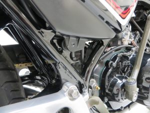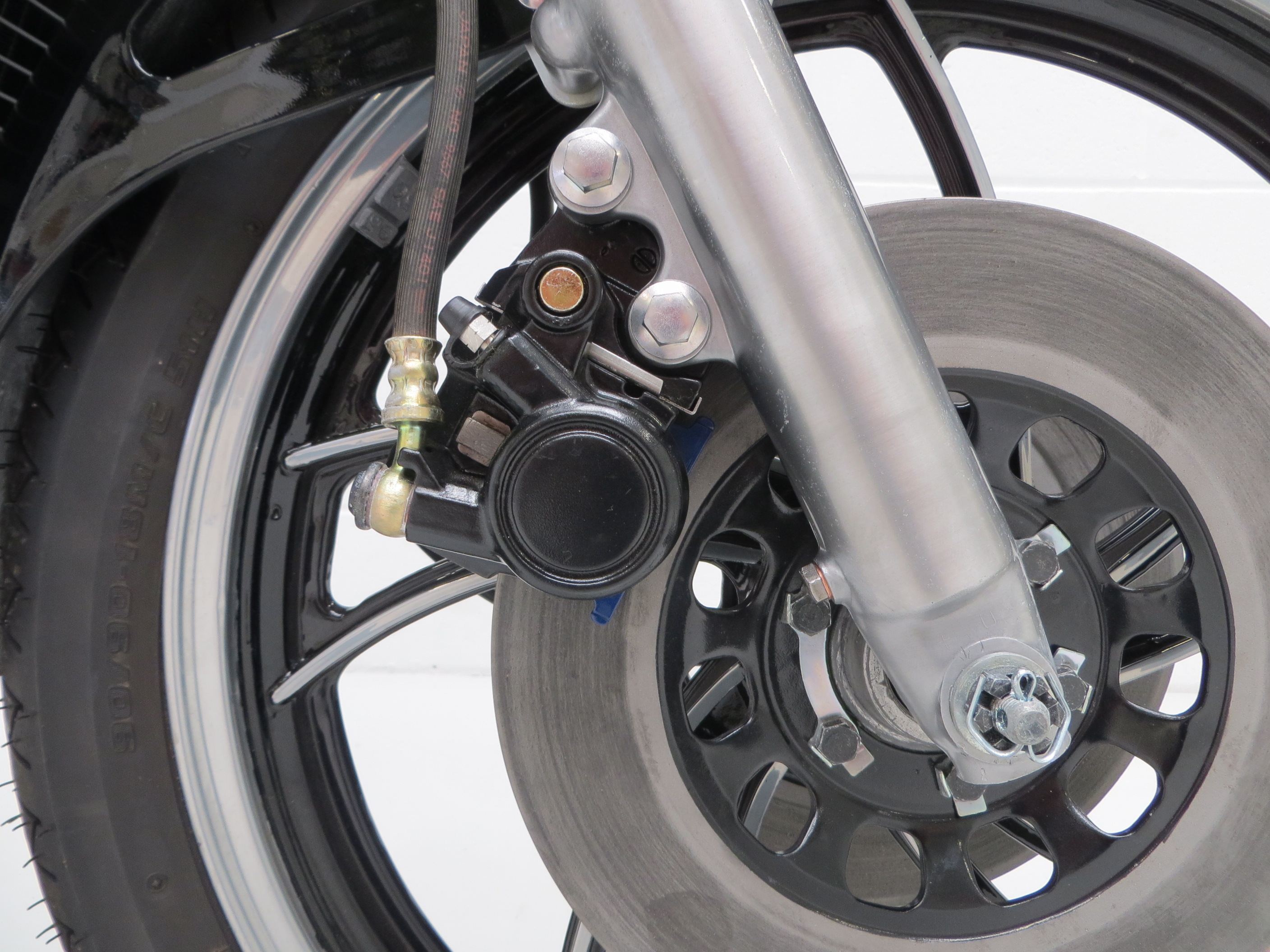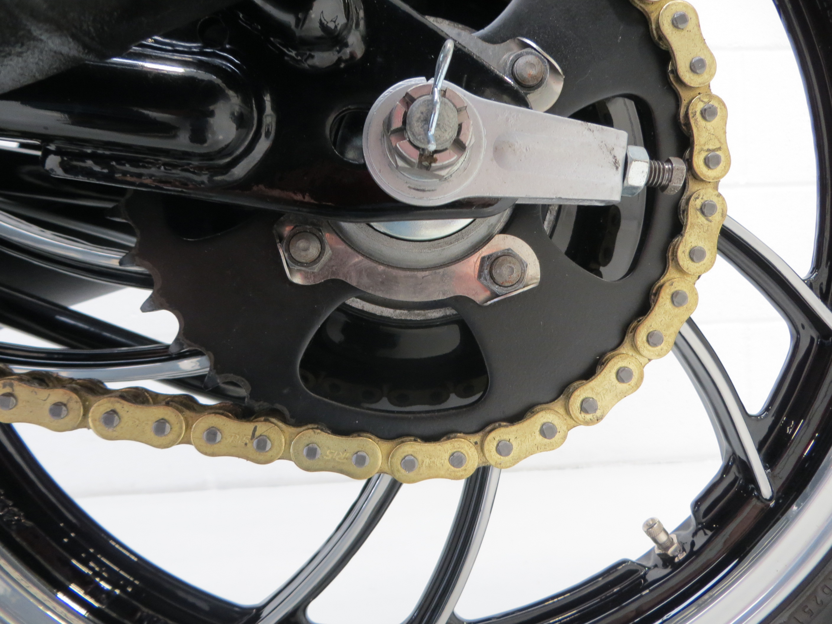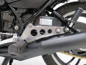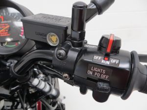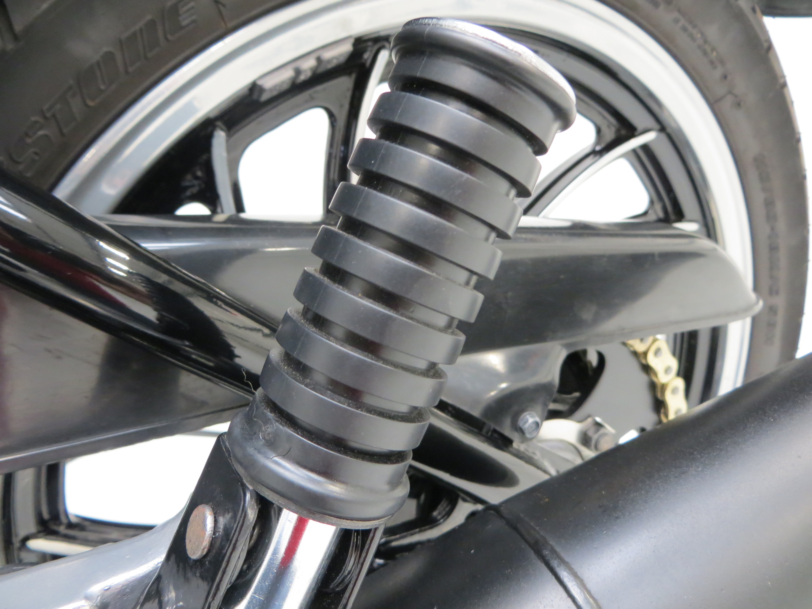 Quartz-halogen headlamp, monocross suspension, chrome rear grab rail, speedometer, tachometer, temperature gauge, ignition switch incorporating steering lock, turn signal switch, headlight switch, dimmer switch, neutral indicator, oil/brake tail light, high beam light, hi/lo tone horns, rear footrests, fuel valve, helmet holder, lockable fuel cap, circular rear reflector.