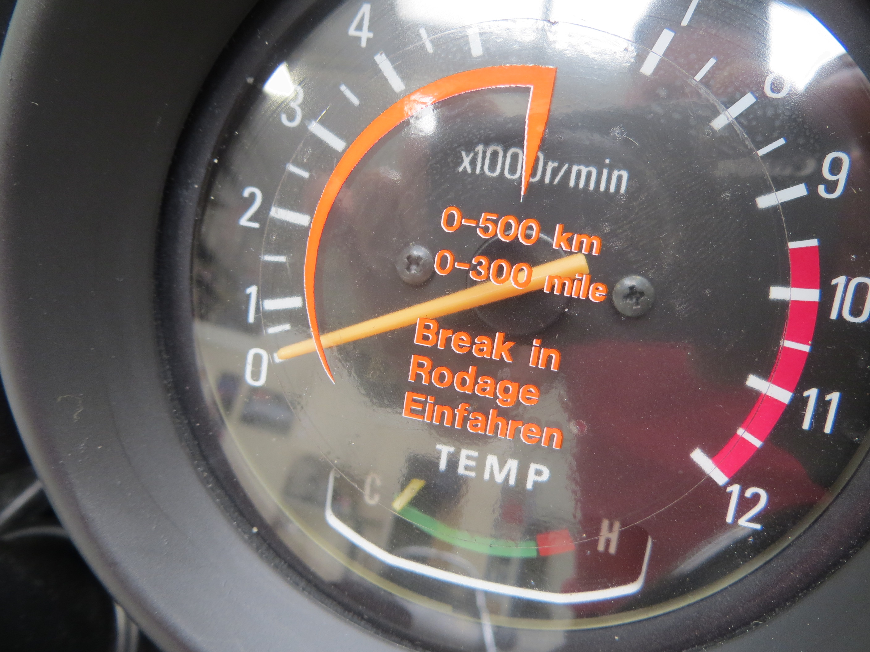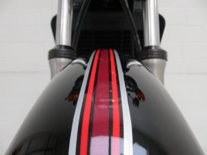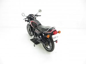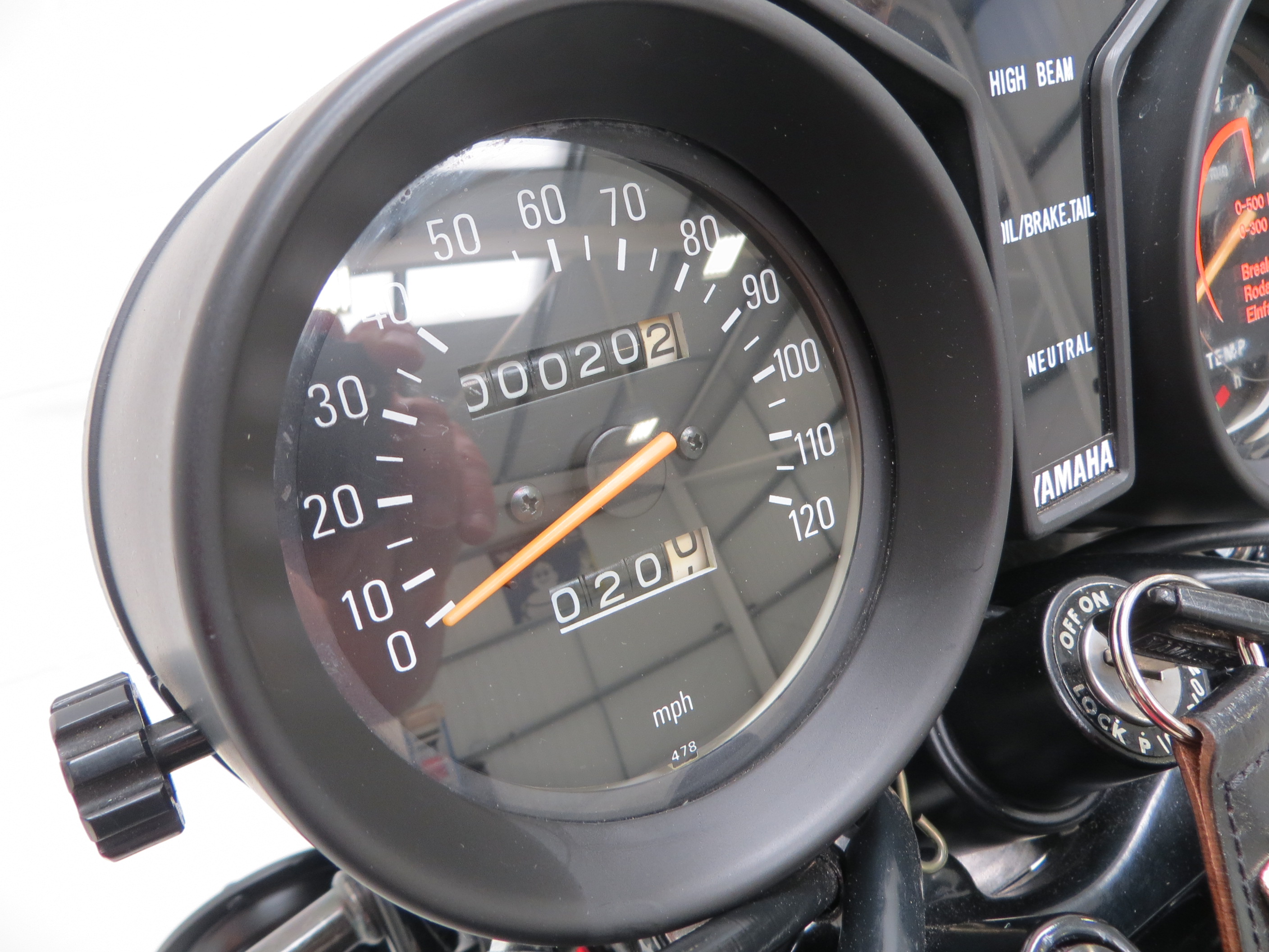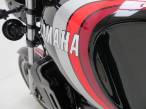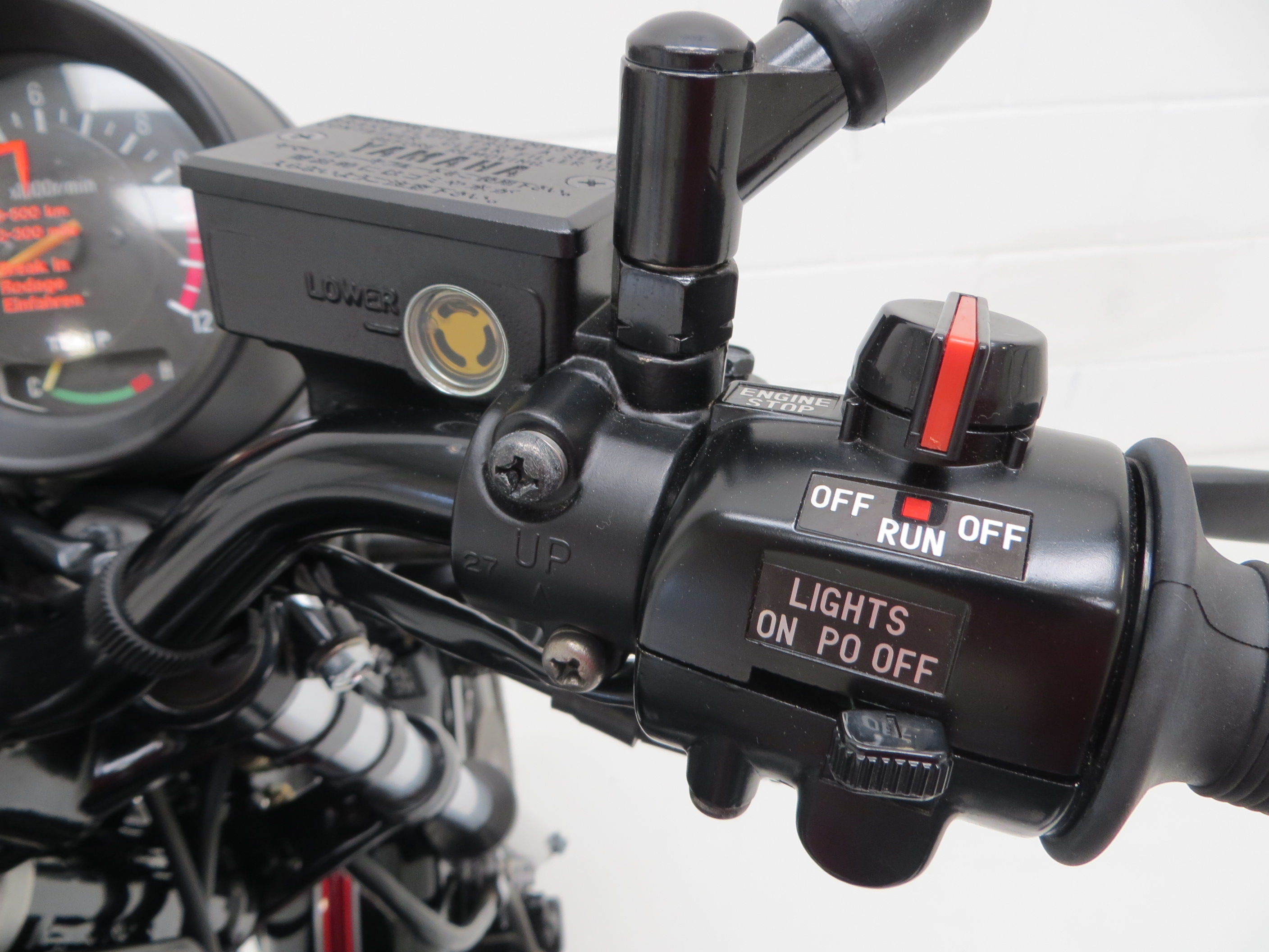 Finished in black the appearance of this most lusted-after motorcycle of the 1980’s can only be described as immaculate. The attention to detail is outstanding with every nut and bolt removed, refurbished or replaced and meticulously put back. The plastics and decals are unmarked and all the switches, lights and controls work perfectly. The frame and swingarm have been professionally powder coated with rider and pillion foot rubbers having been replaced. The original seat material has one minute mark but is of a show standard. Manufacturer stickers remain attached and even the 0-300 mile transparent break-in sticker is on the rev counter. A beautiful piece of Yamaha history.