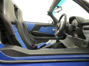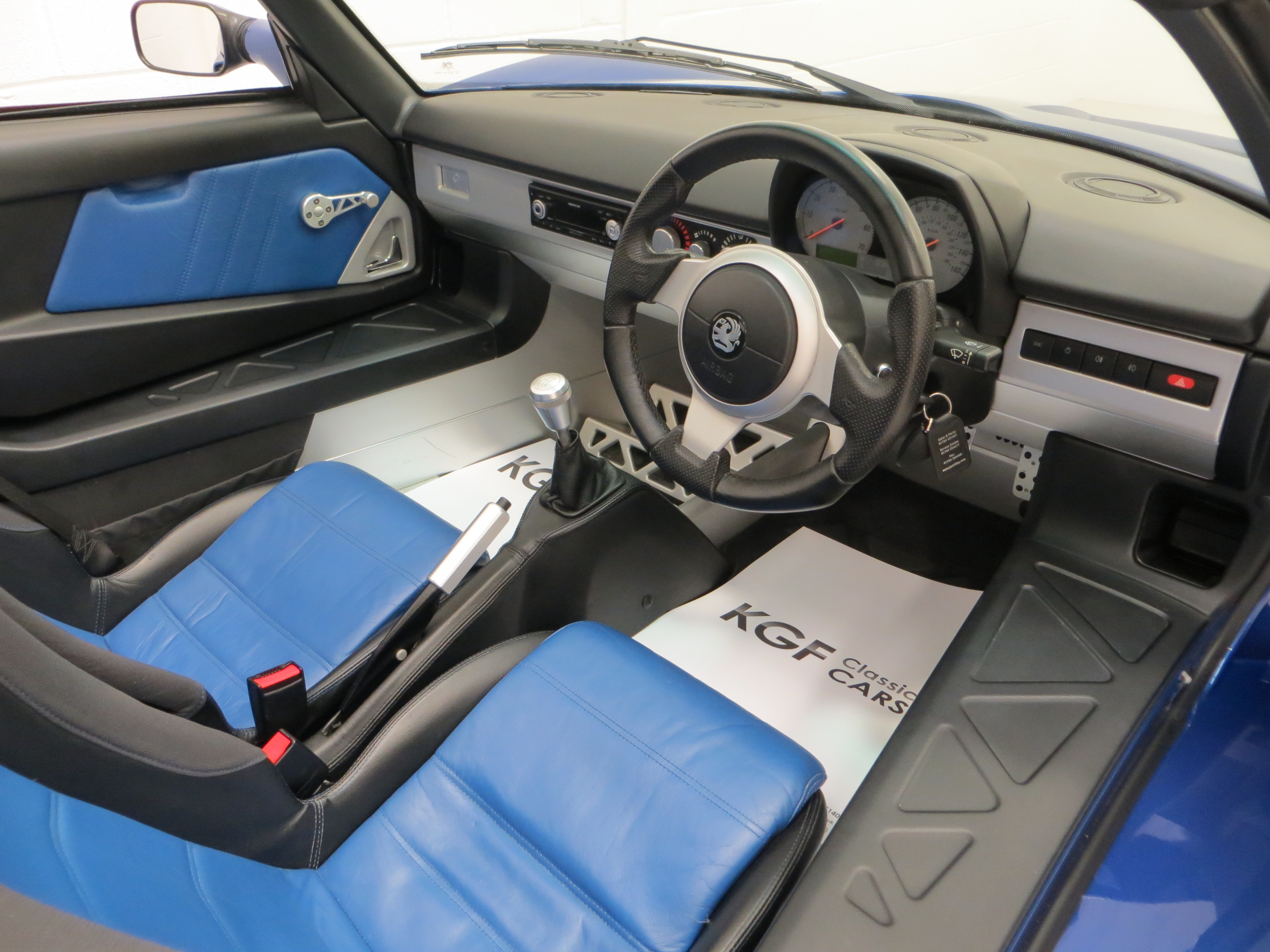 A truly stunning design with a lean, purposeful and aggressive look with hard edges. These features are accentuated due to the stunning electric Europa Blue paintwork, (Code 2KU). The vehicle presents impeccably thanks to the incredibly low 4,260 miles covered and pampered ownership and all panels are virtually unmarked accept for some tiny stone chips to the front bumper. The black soft-top is pristine and there is a small chip to the front screen and the dark-style light housings have some markings. The all independent suspension is immaculate along with the rest of the underside and wheel arch apertures. This example will meet the approval of a discerning enthusiast or collector.