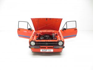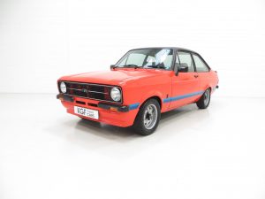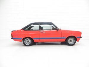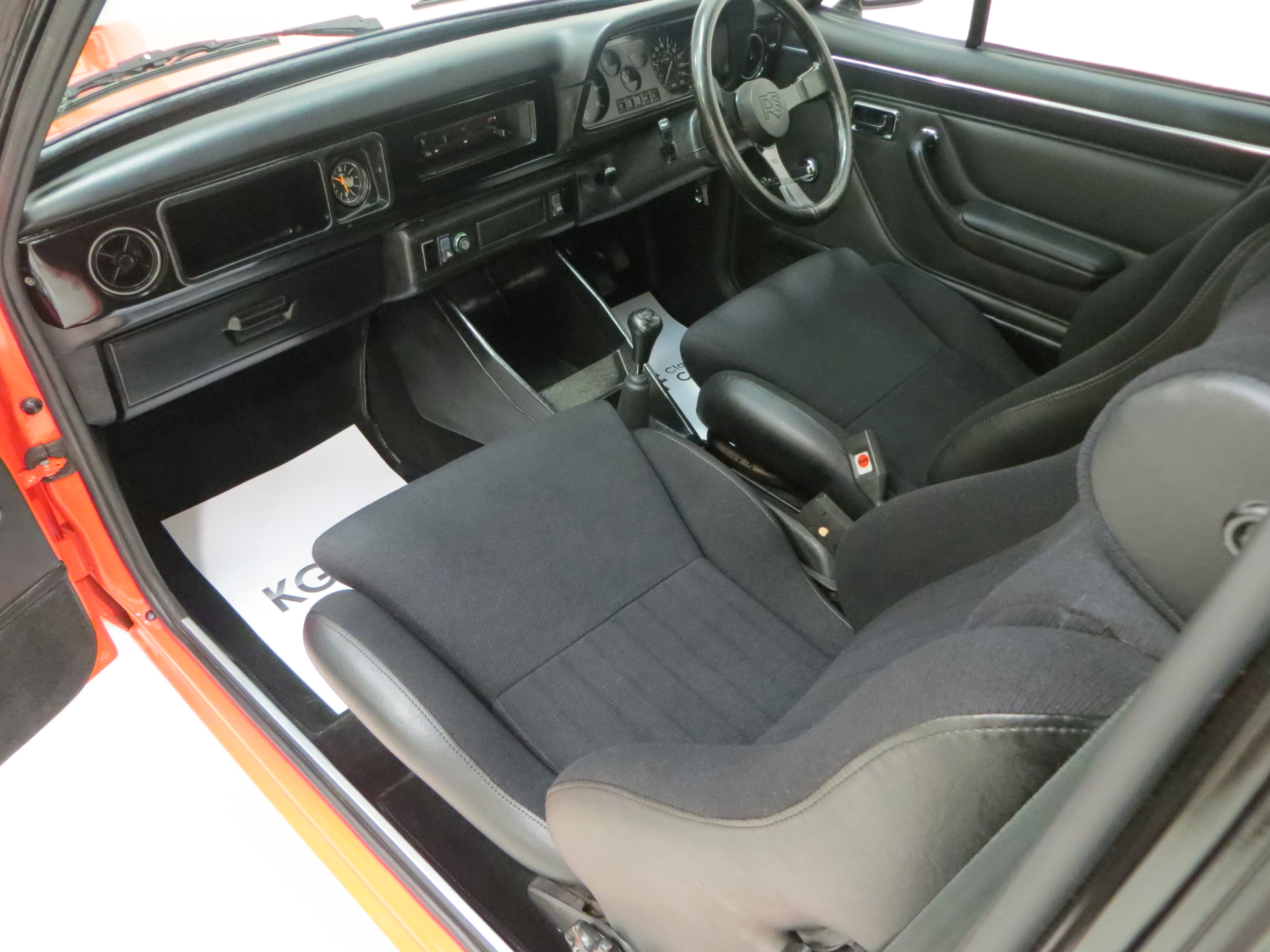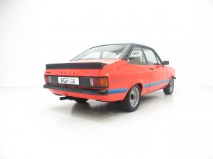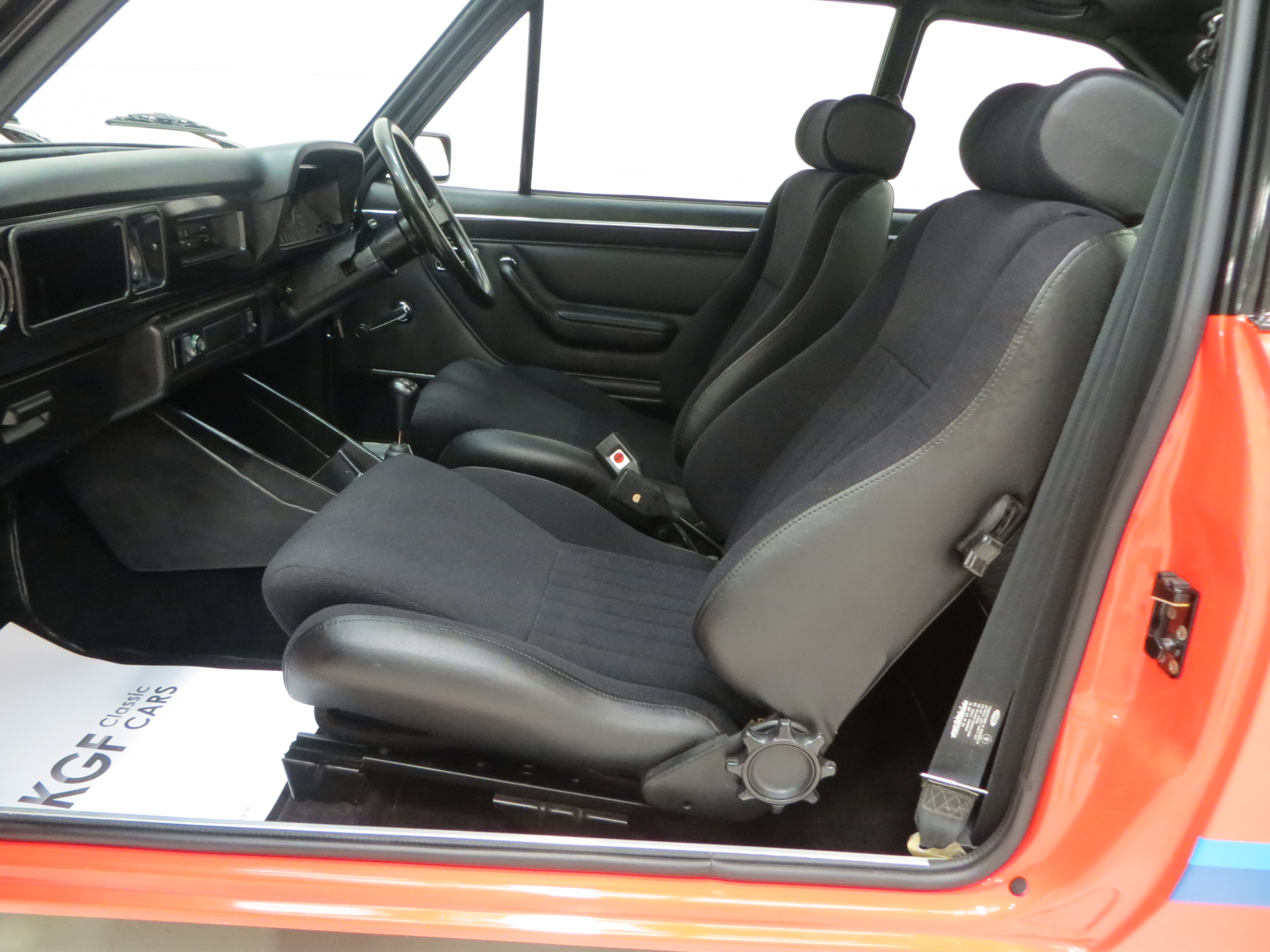 With only 109 road cars built between March 1975 and September 1977 the Escort RS 1800 Mk2 is an exceptionally rare and sought after car. All RS1800`s were produced in Diamond white with the exceptions of one Geneva Motor Show car and one Press Car JJN 100N that were produced in Carnival Red, and to date another road car leaving the factory in Venetian Red XYD 992S. (Source Ford RS Owners Club). This example is a recreation of the Ford Press Car and was originally supplied by Rallye Sport dealers, Thomas Motors Ltd in Cleveleys to Mr Todd as a 2 door 1300 Ghia on the 10th August 1976. On his passing in 1981 his wife, Mrs Nora Todd, took ownership and it remained largely unused until blue oval enthusiast, Martin Jones bought the car in November 2013 with 31,200 miles. Mr Jones, a Mechanical Engineer by profession, had restored a number of Lotus Cortina’s but always wanted to own a Mk2 Escort RS1800. Realising that sourcing such a project was becoming increasingly unlikely he set about sourcing the best Escort Mk2 2 door he could find and built his own recreation. His efforts are truly remarkable with an appearance at the NEC Classic Car Show where the owner of the genuine Venetian Red RS1800 example remarked, ‘it’s a credit to the owner, it’s a fantastic car!’