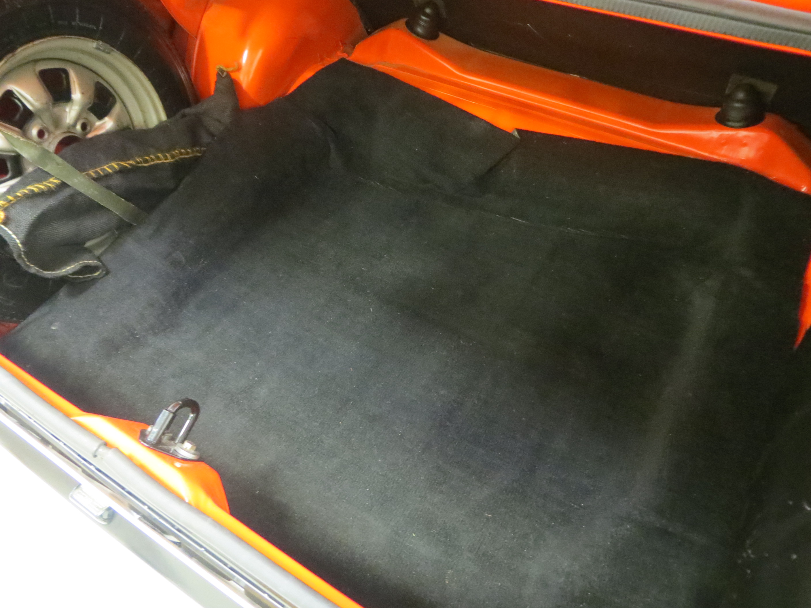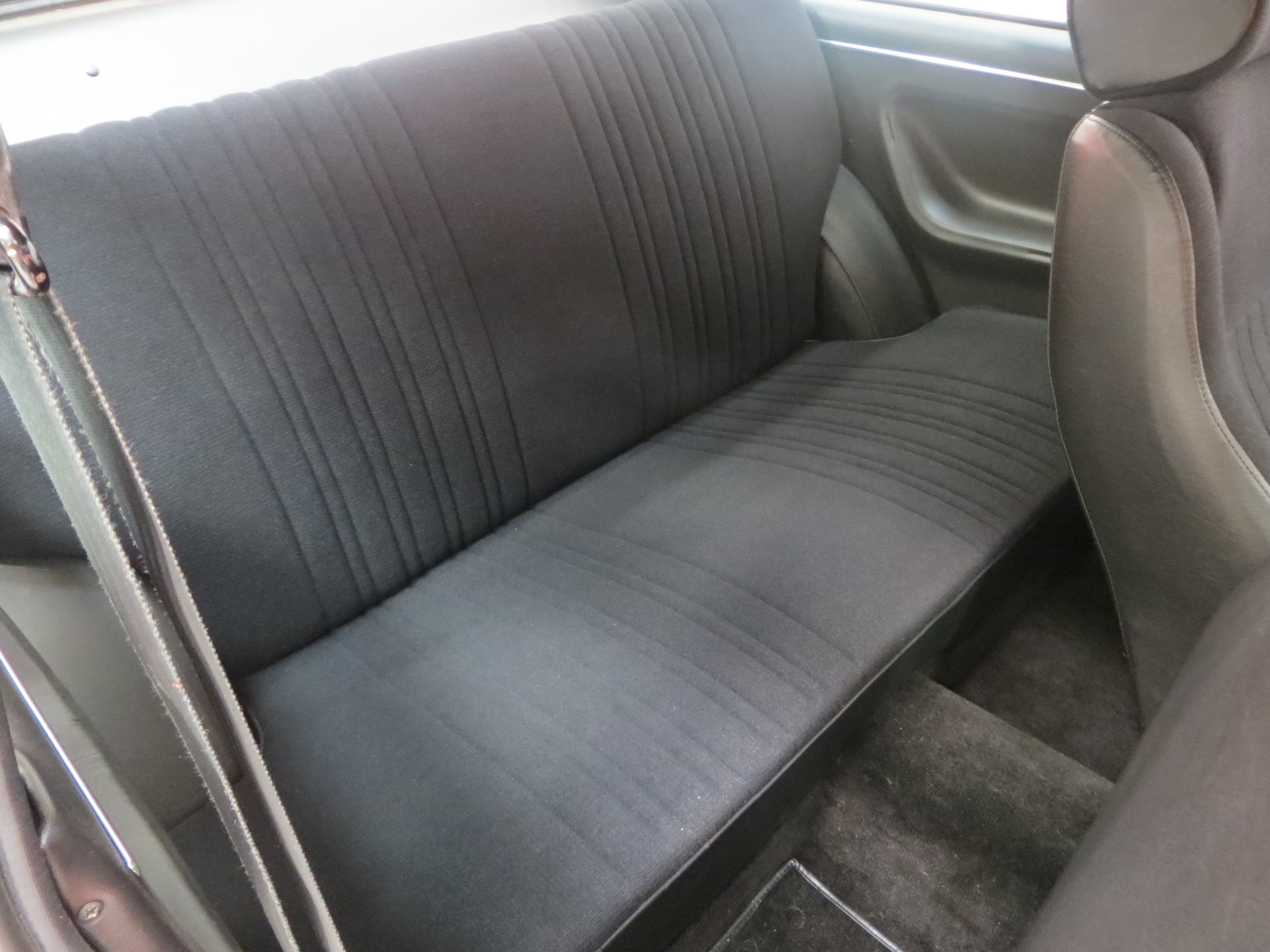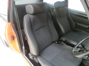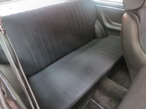 The interior of this RS1800 offers simple sporting pleasure. The twin high back reclining Scheel front seats in Black fabric, (code A7) with head restraints are amazing, perfectly clean and offer incredible support. The carpets, fully trimmed door cards and black fascia are all very clean. All the gauges and warning lights function correctly with the ‘RS’ logo within the five white needle instrument cluster reminding the driver how special this Ford is. The correct 120mph speedo is fitted. The headlining is correctly finished in black and the boot area is spotlessly clean still protected by the almost impossible to source fitted mat and the rubber strap holding the spare wheel.
