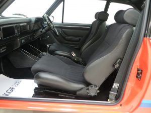 The exterior of this RS 1800 Recreation is stunning in every respect. Finished in the same colour as the Ford Press Car, Carnival Red, it has a wonderful polished sheen and uniform appearance. The distinctive squared-up nose styling and front air dam are iconic features of this Ford Rallye Sport Escort and remain free from damage. The glass, rubbers and lights remain in excellent order along with the optional factory fitted vinyl roof. Correct decals adorn the flanks as per the Ford Press Car and Geneva Motor Show car. Utterly gorgeous and a real show stopper.
