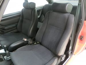 This example is fitted with the desirable Zetec E Ford RS1800 engine which powered the Fiesta RS1800 between 1992-1995. The engine has had a complete rebuild with new pistons, oil pump, water pump, core plugs and a full tune and service. 128bhp is quoted for the standard engine with 0-60mph of 8.3secs and a top speed of 112mph on par with the original. The engine bay has been detailed and is spotlessly clean. A rebuilt 5-speed Type-9 gearbox with a new clutch and quick-shift gives an exhilarating drive.