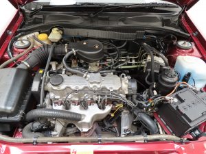 A spotlessly clean, functional and period Vauxhall interior is sure to delight fans of the Griffin badged cars! The original Polka Trim in Grey is in exceptional preserved condition commensurate with such low mileage. The matching colour keyed door cards and headlining are pristine, and the fleece carpets are preserved by tailored Cavalier over mats. The one and only owner was so protective of the car that he routinely laid newspaper in the passenger footwells so that outdoor shoes couldn’t ruin the mats and there is even some of the newspaper still in the car from 2002! Not entirely unwelcoming of passengers, the owner considered their comfort enough to place lounge cushions in the back, which are still there to this day! Functions and controls operate perfectly including the Grundig SC303 radio cassette and the dashboard and associated switchgear are as new. Prominent natural veins to the steering wheel and gear knob are an obvious trait of such a low mileage example and even the gearstick gaiter has not degraded, almost unheard of for a Vauxhall of this era! The immaculate boot floor has the factory insulating panel and the original polystyrene moulding holds the jack and wheel brace. It is almost inconceivable to imagine a better example, let alone find one.