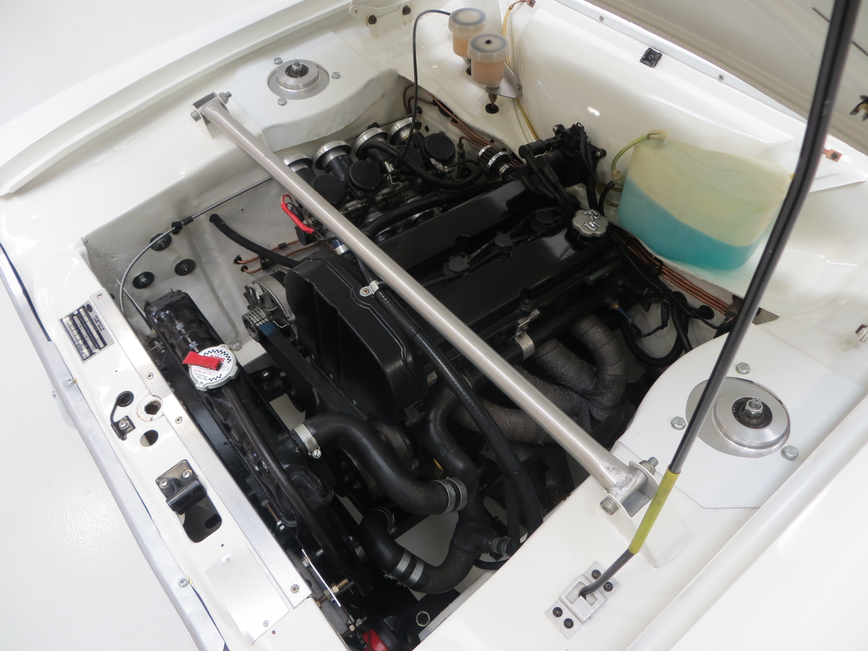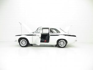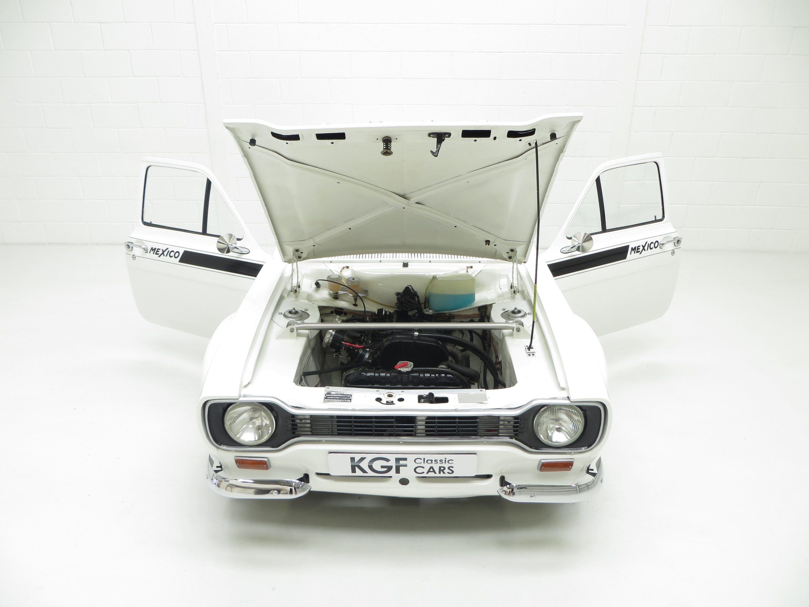 Finished in brilliant Diamond White, this incredible Mexico recreation is visually an iconic symbol of fast fords and draws crowds instantly. Lightweight flared bubble arches and Mexico decals look stunning set against the virtually unblemished glossy bright white paint. A body coloured underside with clean painted components and an engine bay suitable for bonnet-up exhibiting will please those who enjoy the show circuit. Minor markings to front screen are barely visible and a small stain to the mirror finish rear chrome bumper do not spoil the impeccable overall finish of this retro Ford.