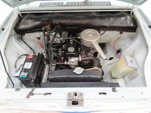 The original steel wheels have been painted in body colour and still wear the stainless-steel full wheel covers which were again unique to the De Luxe model. The wheel covers are fully intact and in excellent condition and the matching premium brand Firestone 155/80 R13 tyres have plenty of tread. The rather antiquated 9in drum brakes all round with hydraulic service ‘umbrella’ handbrake is factory standard and the system is well maintained and in good working order.