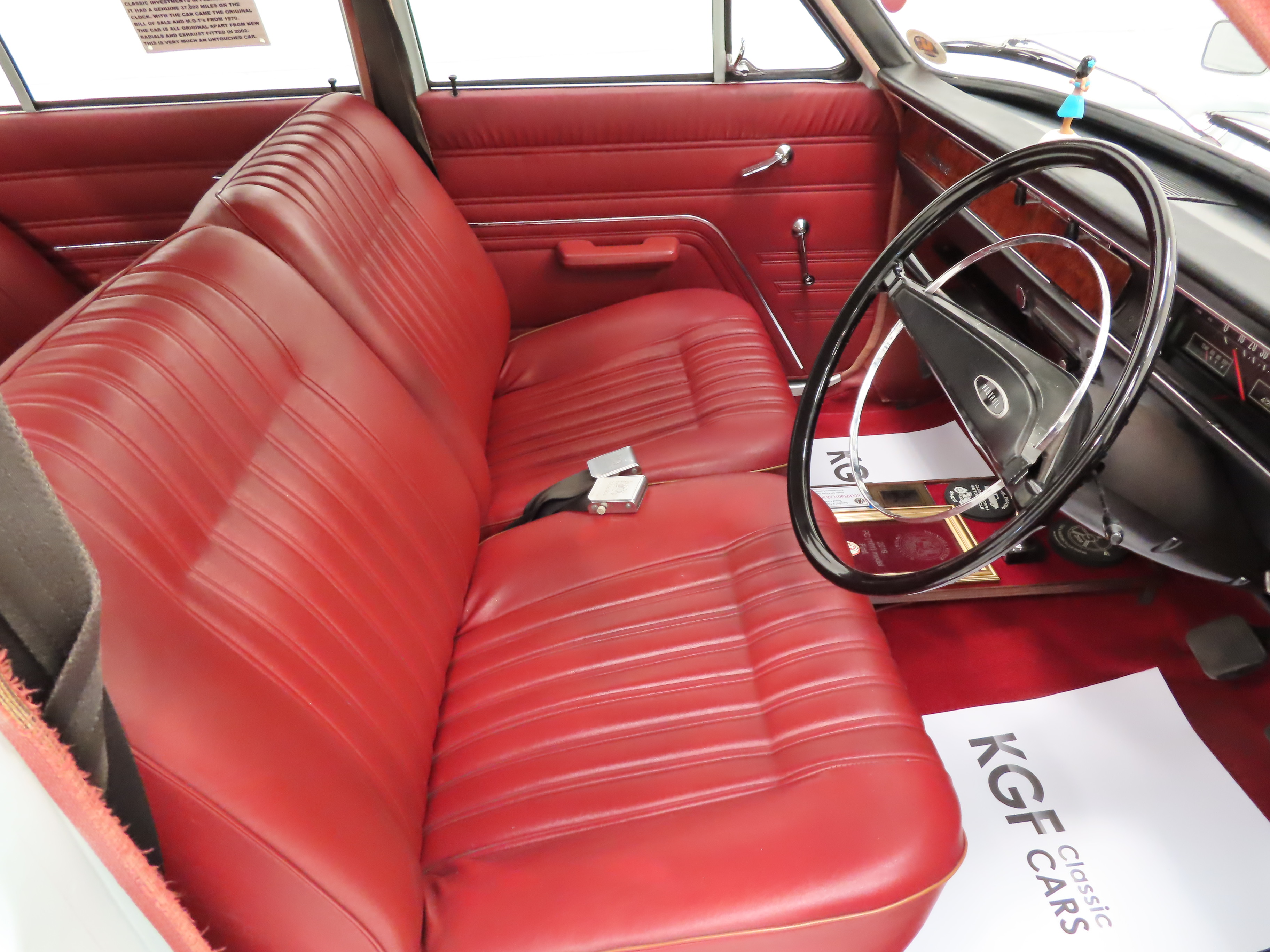 The factory fitted 1595cc OHV four-cylinder engine with down-draught carburettor produces 76bhp at 4800rpm and 128Nm torque at 2600rpm. The crisp engine sings into life effortlessly and the driving experience is delightfully charming especially with the 3-speed all synchromesh column mounted gear selector, which once familiarised is very easy to use. With factory plates and stickers still intact, the engine bay is clean and has been hand painted in areas for protection. Hugely simple to maintain and with excellent parts availability, thanks partly to a very active club scene, this Victor is a perfect family classic.