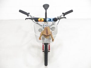 E.T. the Extra-Terrestrial is a 1982 American science fiction fantasy film produced and directed by Steven Spielberg which was released on the 11th June 1982 by Universal Pictures. It was an immediate blockbuster and tells the story of Elliott Thomas, a lonely boy who befriends an extra-terrestrial, called “E.T.”, who is stranded on Earth. Elliott and his siblings help E.T. return home while attempting to keep him hidden from their mother and the government. During this movie Elliott is seen riding a Red/White Kuwahara BMX with E.T hidden in a basket on the front before taking off and flying! The Kuwahara KE-01 ET 30th Anniversary Limited Edition was a very limited run to celebrate 30 years since the launch of the movie.