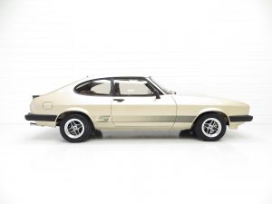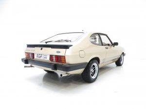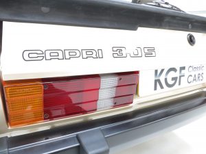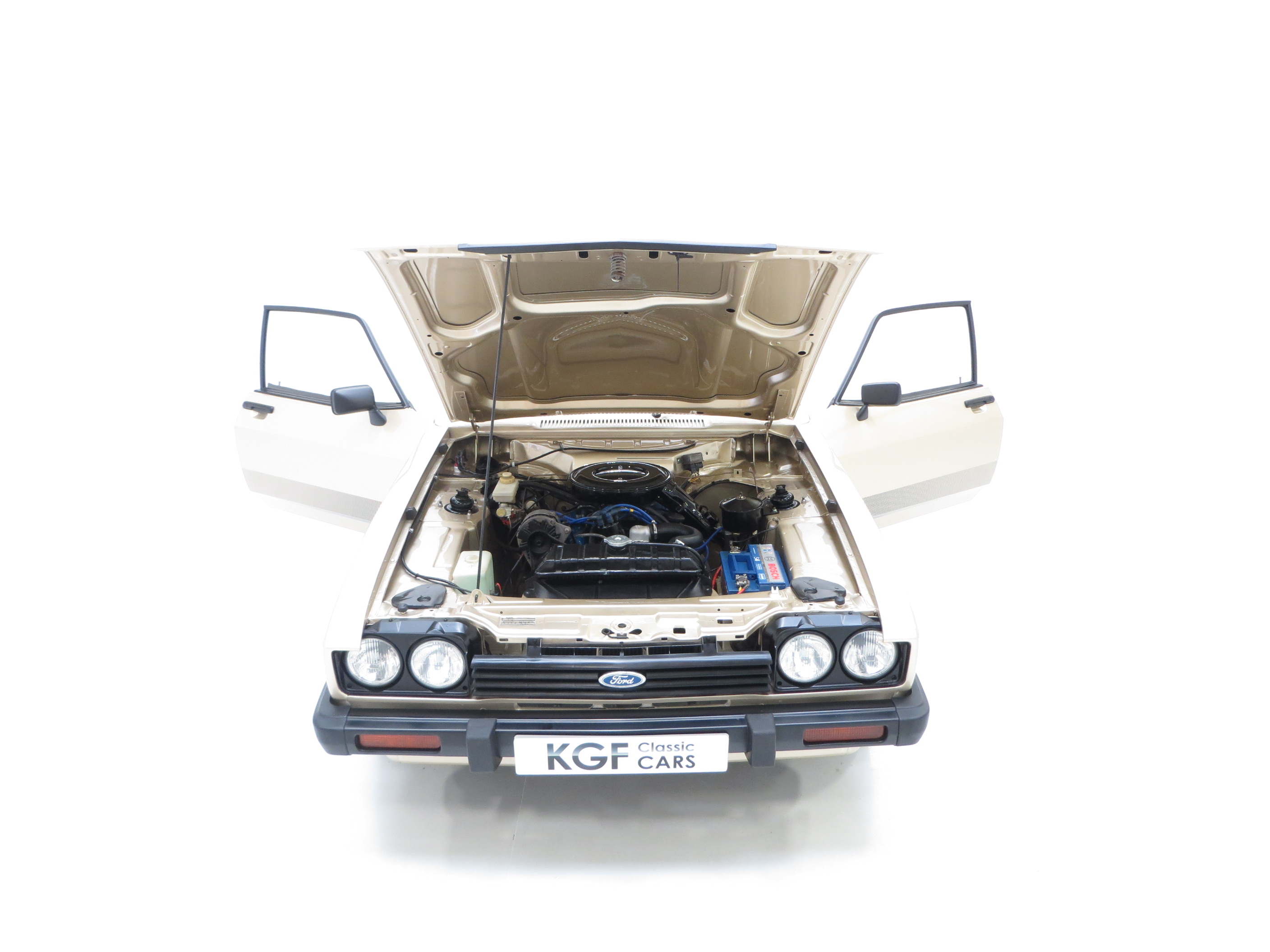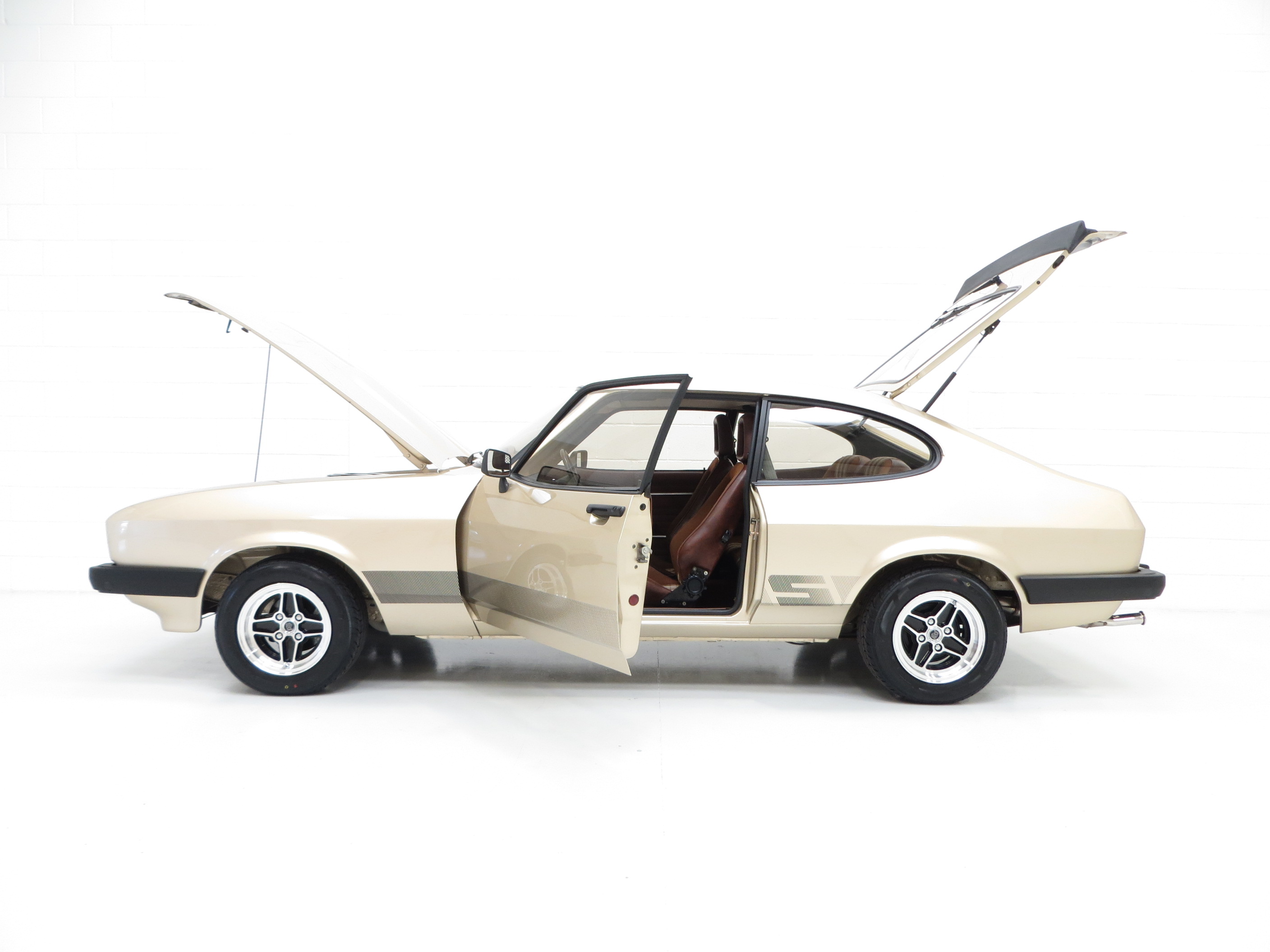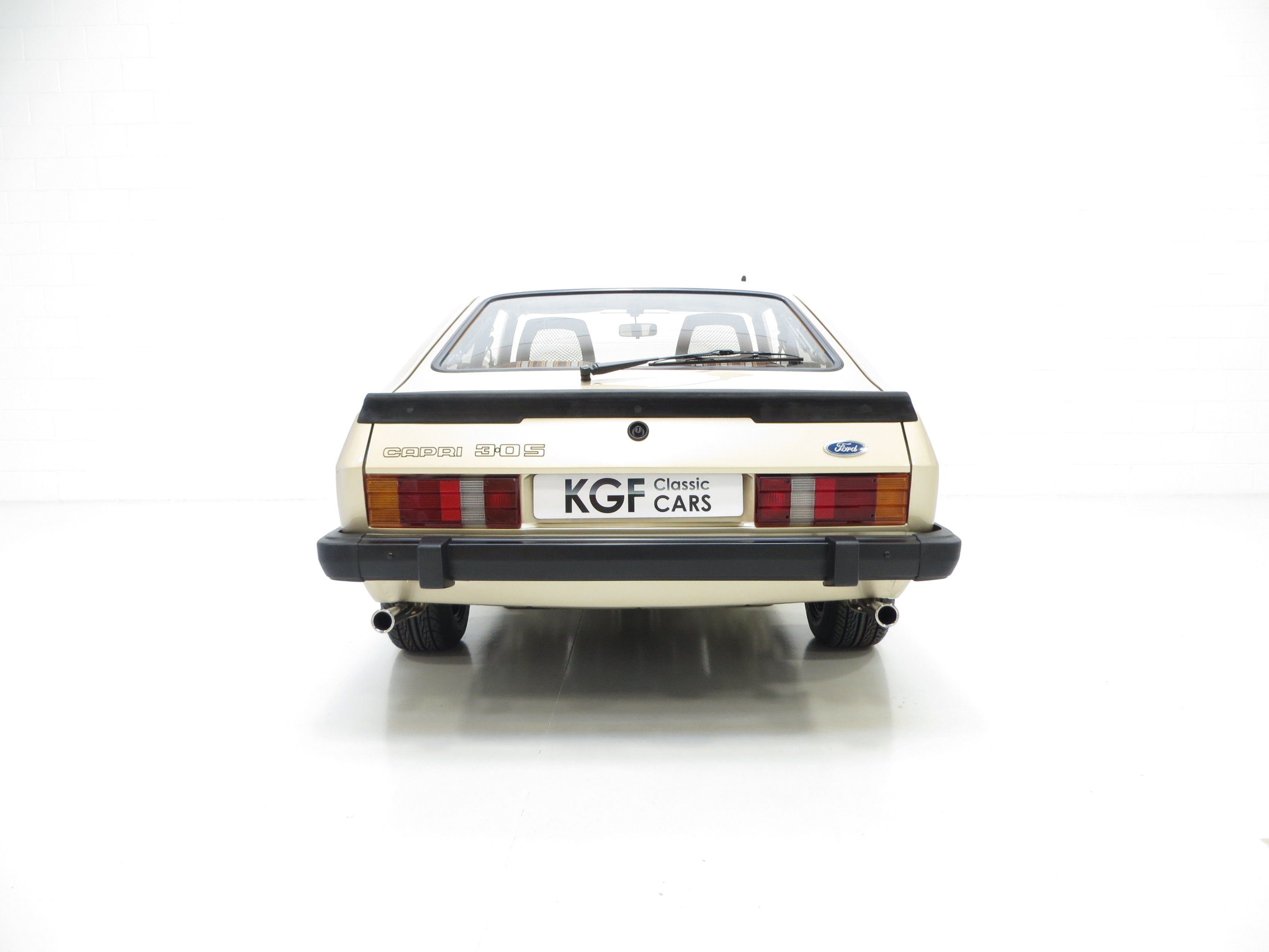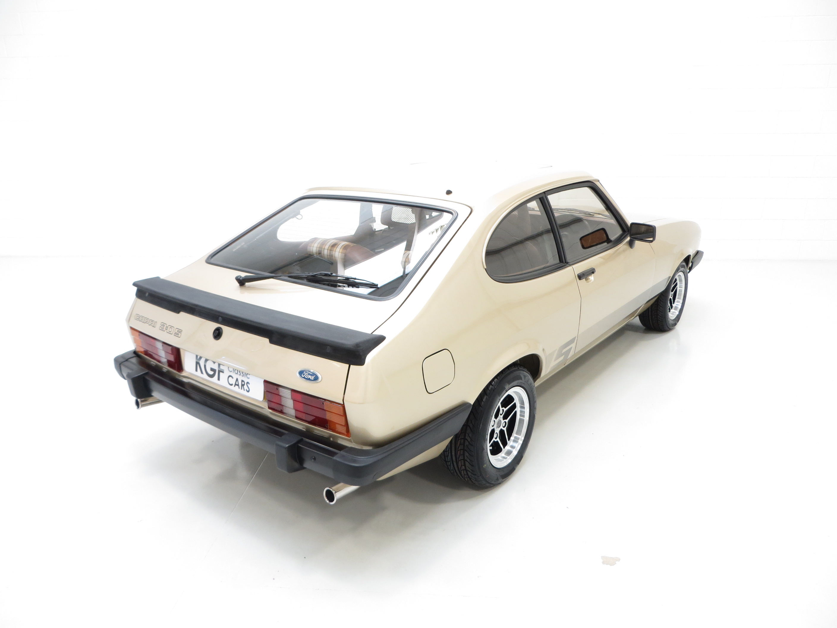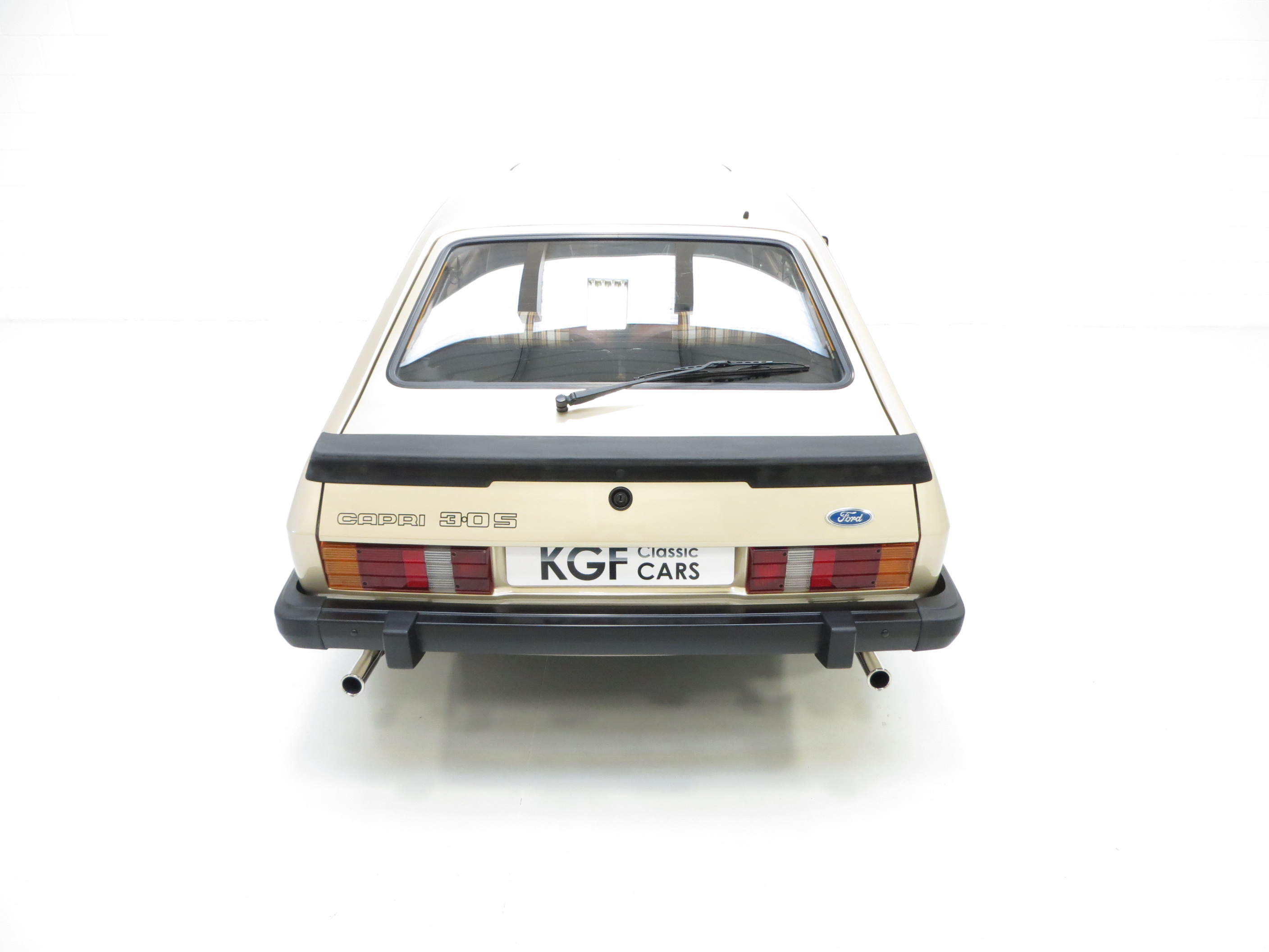 This legendary and genuine Capri 3.0S finished Ford Oyster Gold boasts an impeccable appearance with a perfect mirror paint finish. The subject of an extensive full restoration by renowned and highly respected East Sussex based Restore-A-Ford in 2011, the resulting achievement is simply amazing with the original 3.0S being soda blasted as a starting point. A fully detailed underside will delight the avid enthusiast on the show circuit with colour coded anti-chip coating and powder coated components laid bare in full splendour. Rare factory options such as the steel tilting/sliding roof and tinted glass remain fitted along with all exterior trim items and decals being pristine and factory correct. This very rare, sporting, top-of-range for performance Capri simply breathtaking.