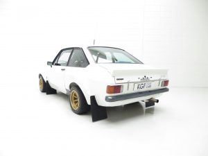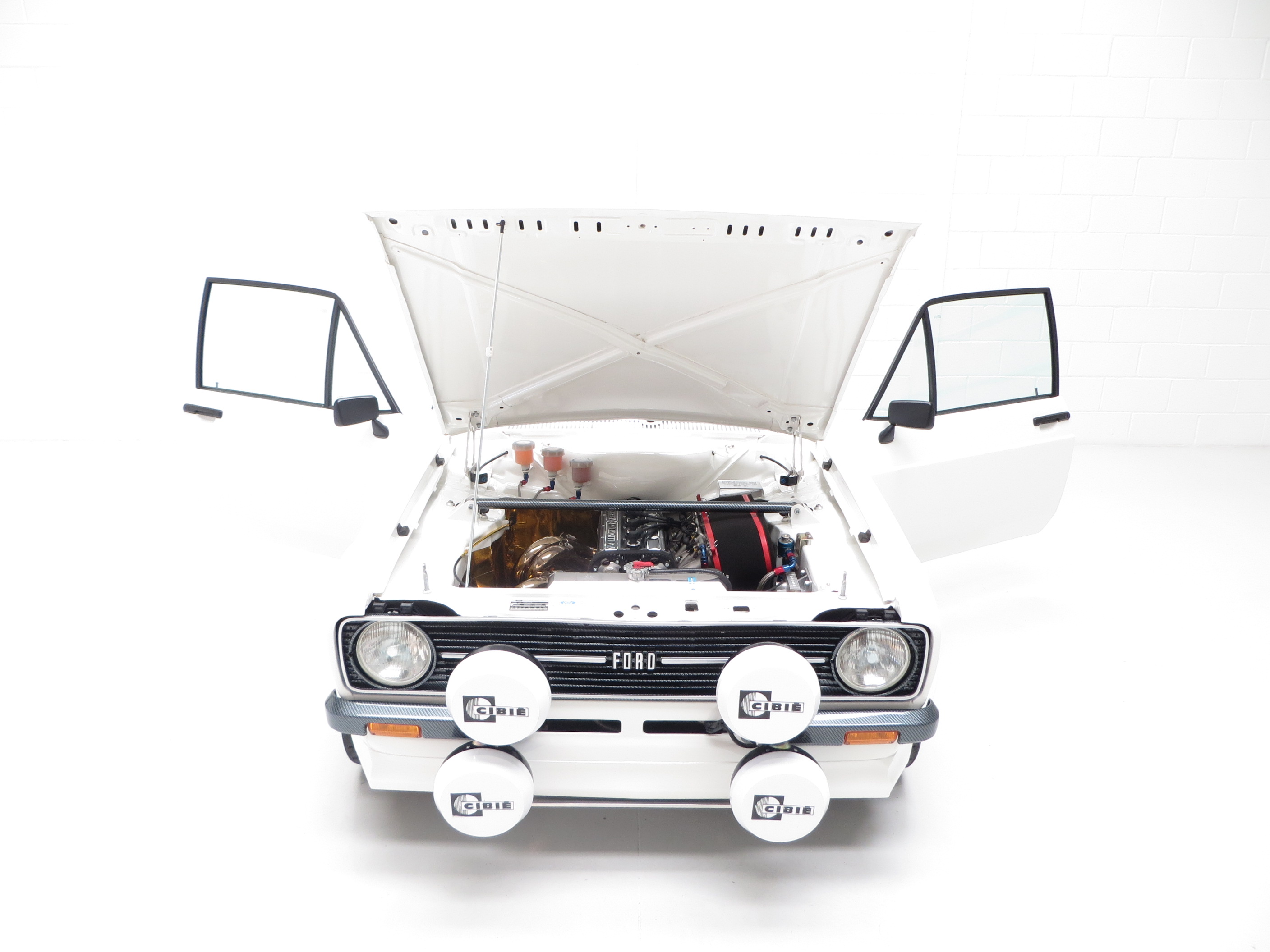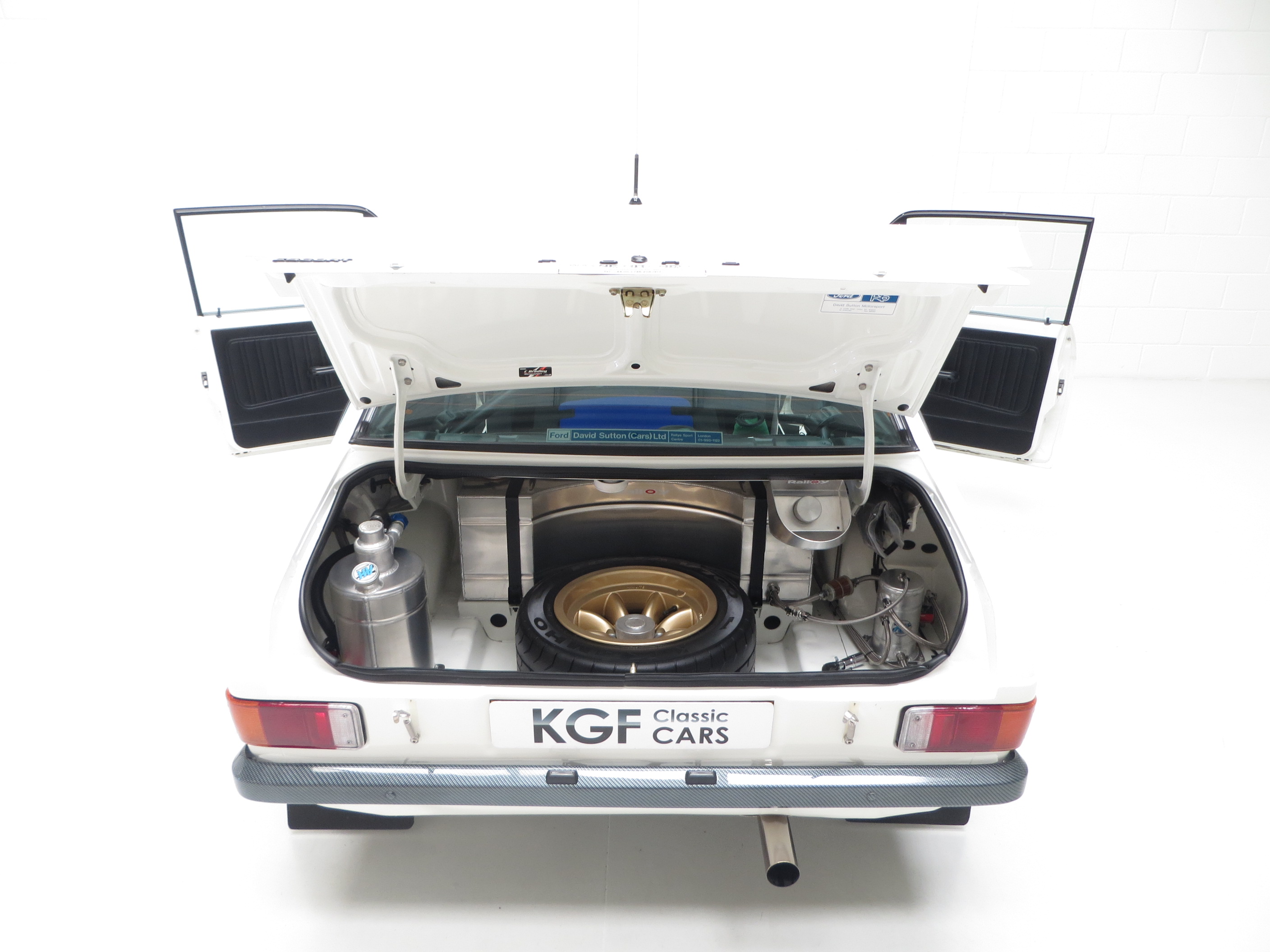 This competition ready Mk2 Rally Sport Escort has been prepared to a very high standard with a no expense spared mentality to the build. A photographic catalogue of the painstaking stage by stage construction will leave no doubt in the quality of works commissioned. A fully seam welded and seam sealed rally shell combined with the latest proven FIA approved components has all the strength to deal with gruelling motorsport or the enthusiastic boy racer being road legal. Finished in Diamond White it has a deep, gloss shine which is amazing and underbody detailing has created a virtually spotless delight. Those preferring to exhibit rather than race will never fail to appreciate the under bonnet perfection and all over attention to detail. Testimony to this is a first position at the 2015 Silverstone Ford Fair in the Concours Modified Class.