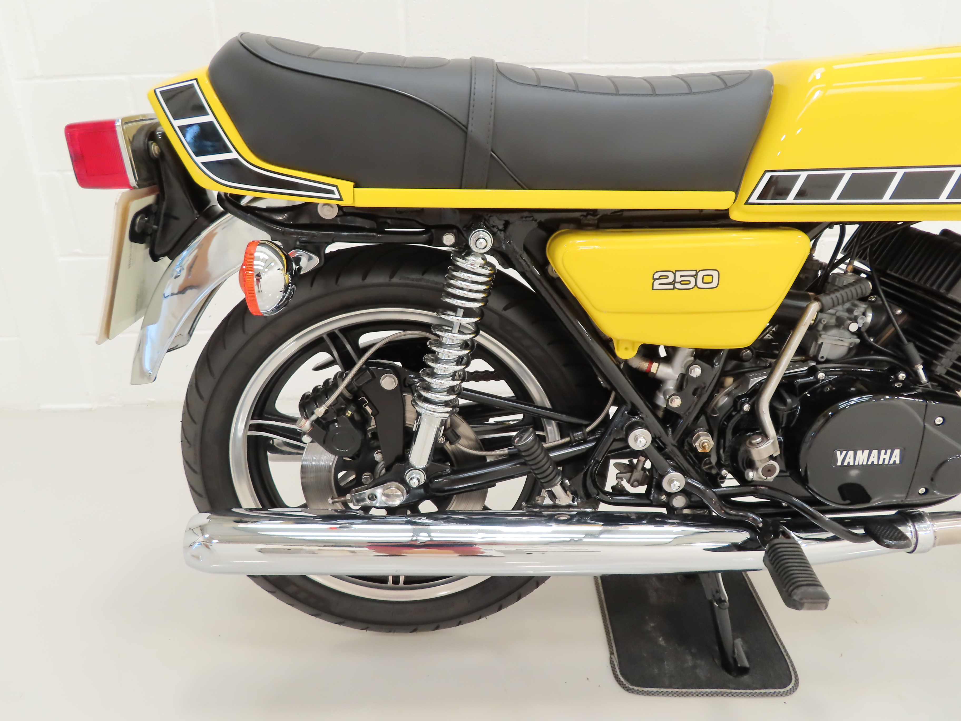 Registered new on the 15th February 1980 this RD250 Model E type left the factory destined for the UK in the desirable Kenny Roberts Yellow. The World Road Racing Champion synonymous with winning Grand Prix races for Yamaha. A rare matching numbers example discovered by Mr Mark Moore, Yamaha collector and restorer of the highest standing, his collection of bikes and passion for the marque are the envy of many and this example boasts all the hallmarks of a knowledgeable enthusiast. A memory stick containing photos tracking the restoration is included. This RD250 is an absolute must for the avid collector where inspection and trial will not disappoint. A rare opportunity for the avid classic motorcycle fan appreciative of the esteemed RD Series.