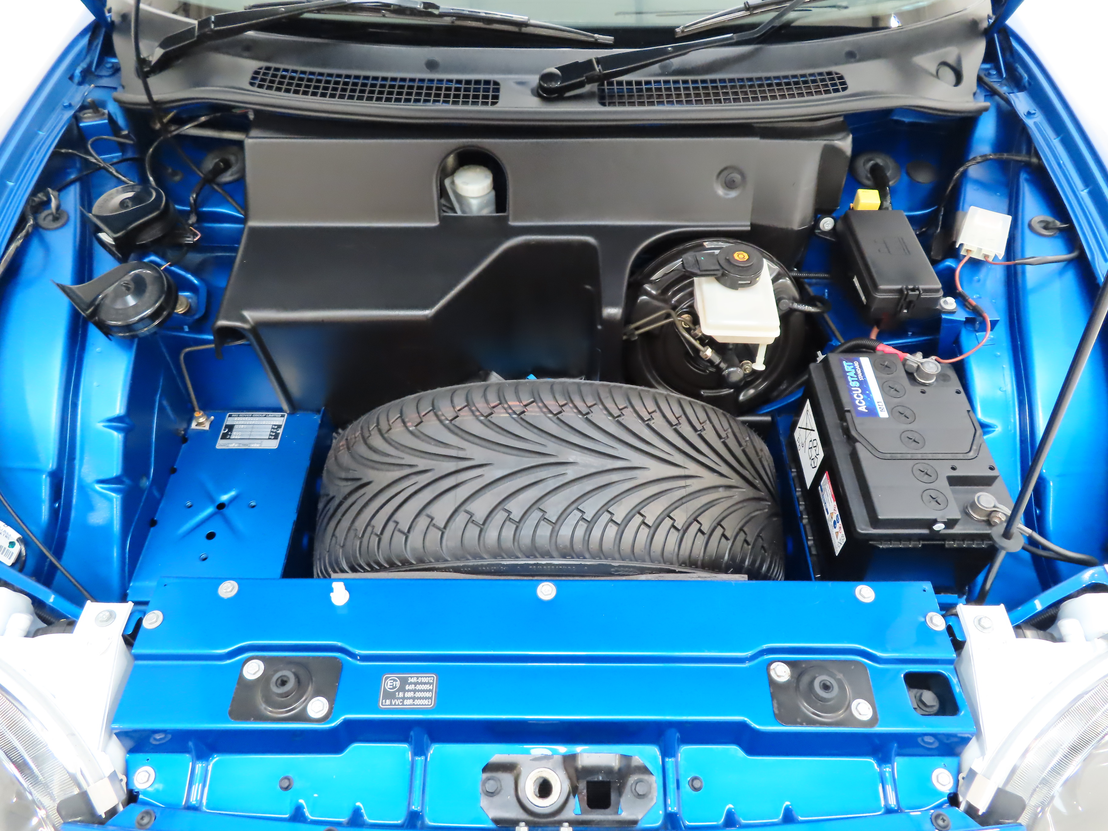 The sports seats with unique cloth centre panels, (Code WRA), are standard fitment on this limited edition MGF and in a condition that is commensurate with the incredibly low 11,888 miles covered. The vibrant exterior is mirrored inside the cabin with perfect centre console and door casing inserts in body colour finish. The interior is simply outstanding and displays all the indicators of such a low mileage car including the immaculate Trophy Blue/Black leather steering wheel. The cut pile carpets have tailored MG velour mats covering them. Both front and rear luggage areas are spotless with the front housing the optional spare wheel uniquely painted orange for this model which remains shod in the original unused Goodyear tyre. Even the head lamp units still wear the fragile Valeo part stickers! MG museum quality in all respects.